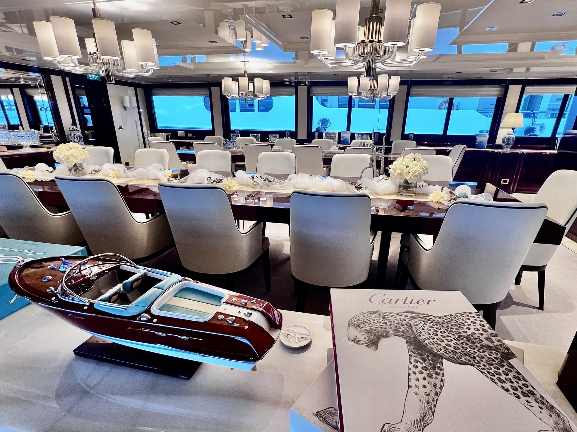 Länge 83 Meter, 14 Kabinen, bis zu 30 Gäste, Spa-Bereich, Kino, Whirlpool und eine einzigartige Atmosphäre von absolutem Komfort und Klasse.