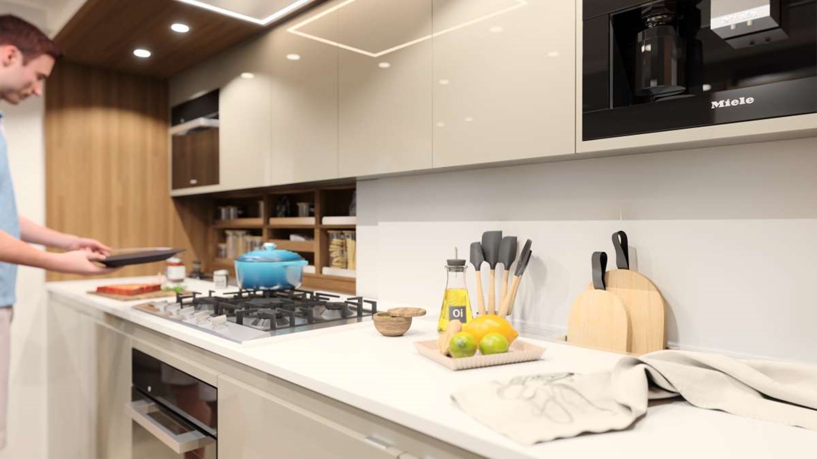 The flybridge takes on the mantle of an extra deck, the real story is the elegant wrap-around sofa which provides a really convivial spot for a big group of friends, or the whole family. The flybridges fully equipped with a full wet bar, as well as a plancha grill.