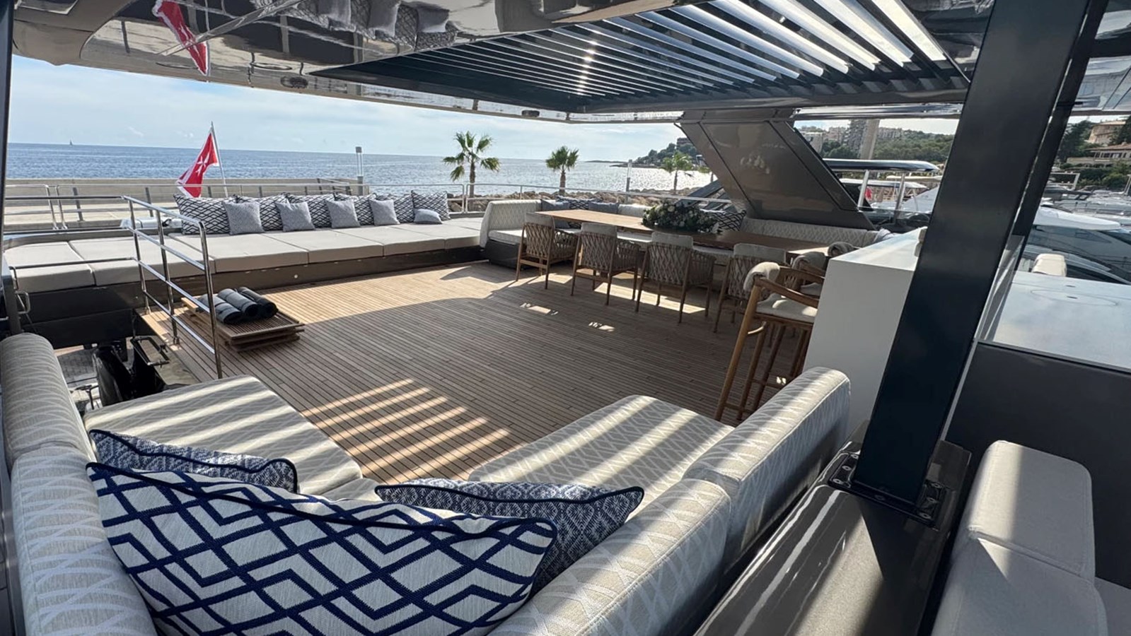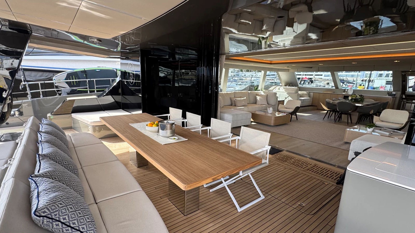 Inside, AMITATU showcases a sleek and contemporary design. The main salon spans the entire main deck, with large panoramic windows flooding the space with natural light and providing a seamless connection to the sea. The lower deck accommodates up to 8 guests in four beautifully appointed staterooms, including a Master suite, a VIP stateroom, a double cabin, and a twin cabin, ensuring both comfort and privacy for all onboard. Adventure seekers will appreciate the yacht’s selection of water toys and tenders, perfect for enjoying the sparkling waters of the Mediterranean.