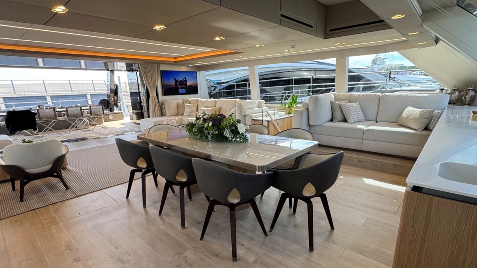 Step aboard AMITATU – a stunning 24m (78’7’’) luxury catamaran launched in 2024 as part of the acclaimed Sunreef 80 Power series. With its modern design and expertly crafted spaces, AMITATU offers a truly exceptional charter experience. The expansive sundeck is perfect for relaxing and entertaining, featuring a lounging area, dining table, and a fully-equipped bar for al fresco meals or evening cocktails under the stars. The foredeck stands out with a large jacuzzi surrounded by sunpads, offering guests the ultimate spot to unwind while taking in breathtaking sea views.
