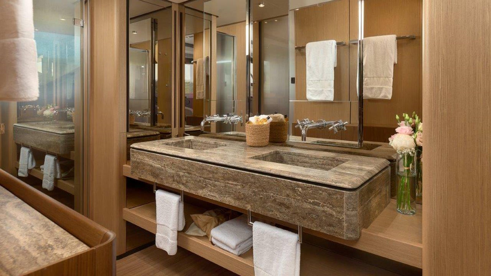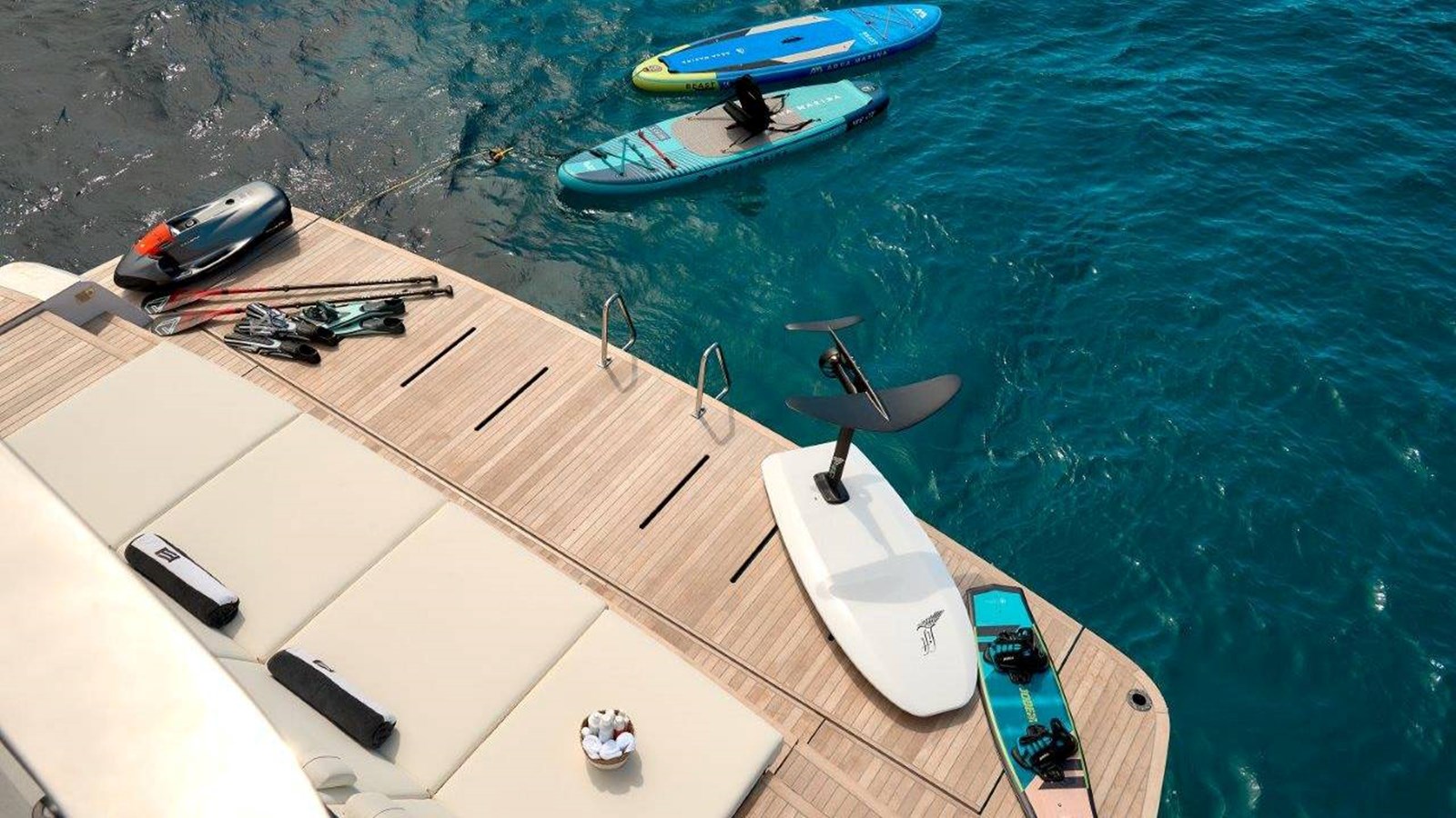 B.A.13’s outdoor spaces are thoughtfully designed for relaxation and entertainment. The beach area is ideal for water activities, while the expansive flybridge offers a private retreat with direct access to the bow. Guests can enjoy her impressive selection of water toys, including a jet ski, Sea Bobs, an eFoil, paddleboards, wakeboards, and more. With underway and zero-speed stabilizers ensuring smooth sailing, along with modern interior design and advanced features, this yacht promises a charter experience like no other.