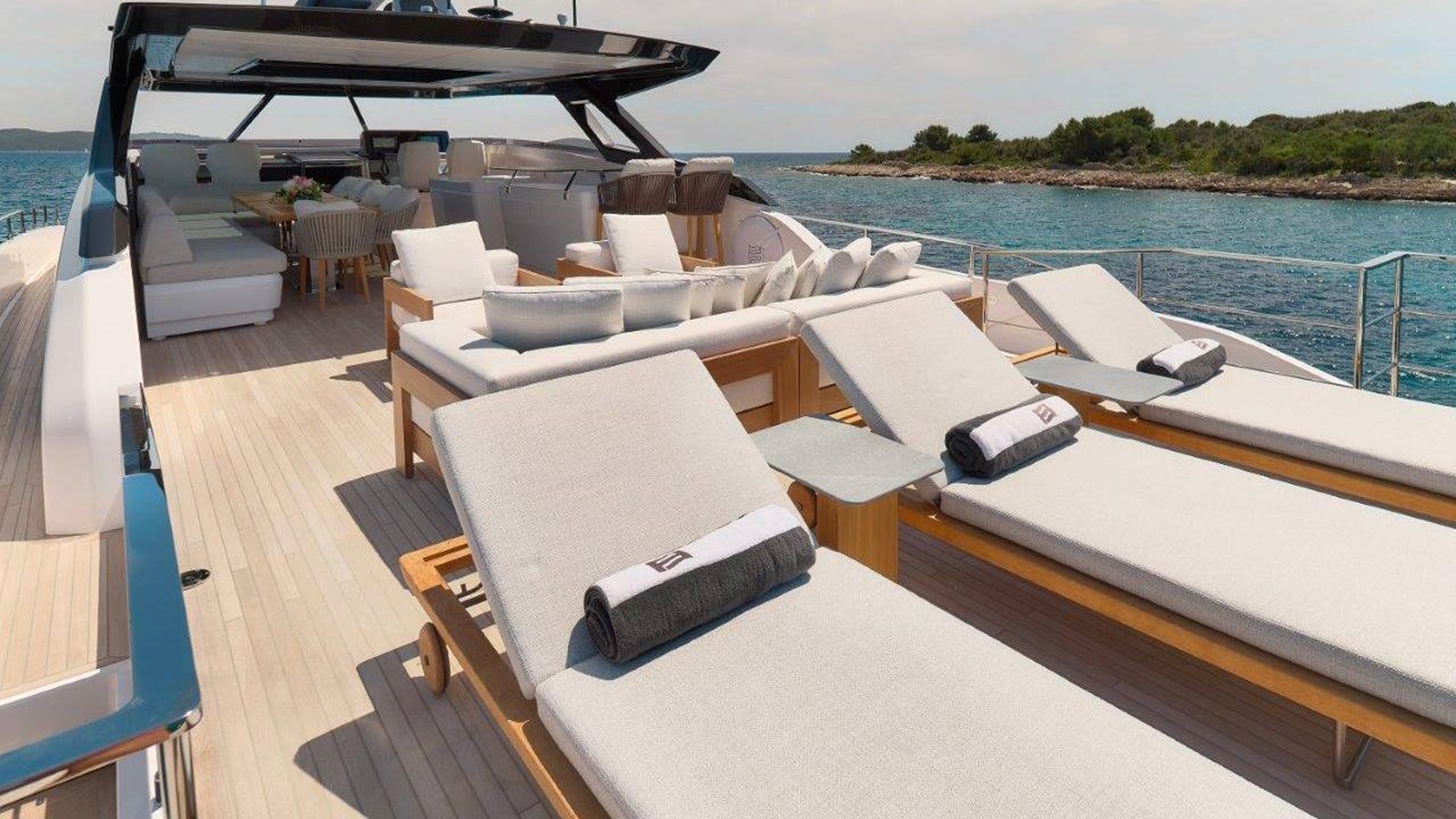 The brand-new Ferretti Yacht 1000 “B.A.13”, delivered in May 2024, is a luxurious charter yacht designed to provide the perfect balance of style, comfort, and fun. Accommodating up to 10 guests, the yacht features five spacious staterooms, including a full-beam master suite on the main deck. Below deck, there are four double cabins with en-suite bathrooms, one of which can convert to a twin, offering flexibility for families or groups.