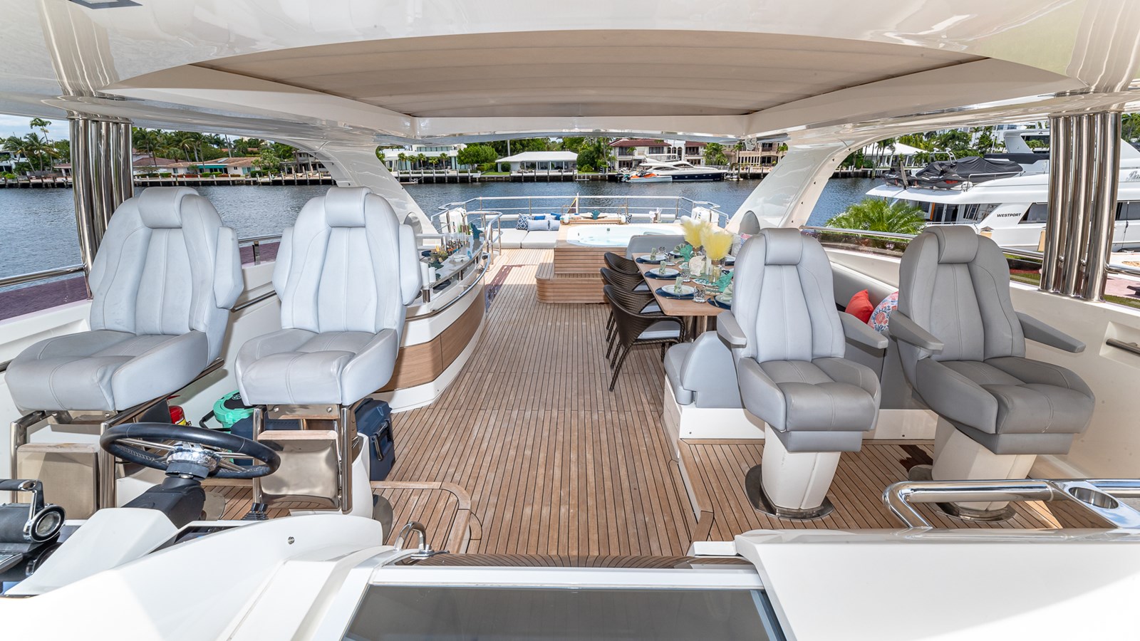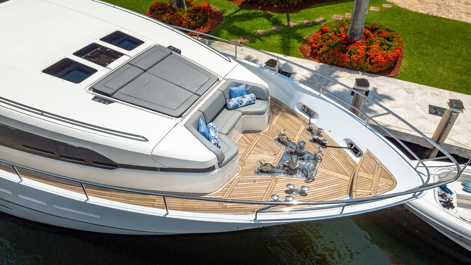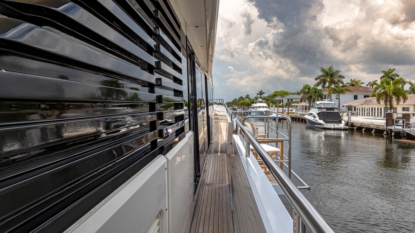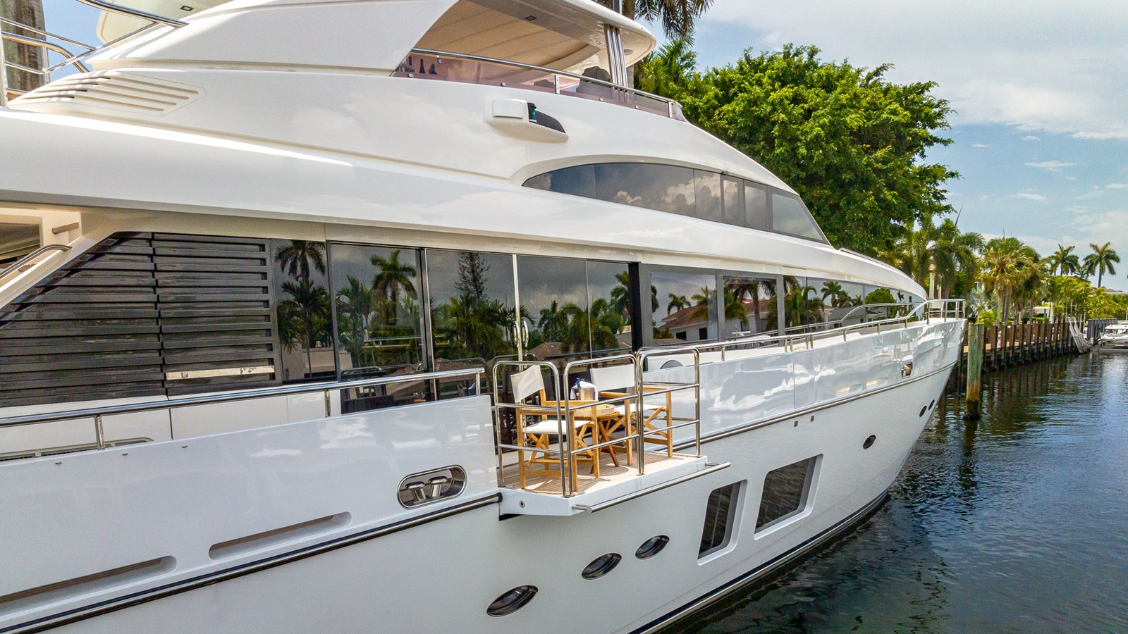 At-anchor Stabilizers, Hydraulic Gangway / Passerelle, Teak Cockpit, Balcony, Liferaft, Teak Sidedecks, Cockpit Cushions, Outboard Engine Brackets, Cockpit Shower, Passerelle, Tender Garage, Cockpit Table, Radar Reflector, Underwater Lights, Davit(s), Solar Panel, Underway Stabilizers, Dynamic Positioning, Swimming Ladder, Wind Generator, Gangway