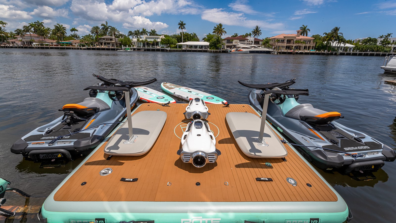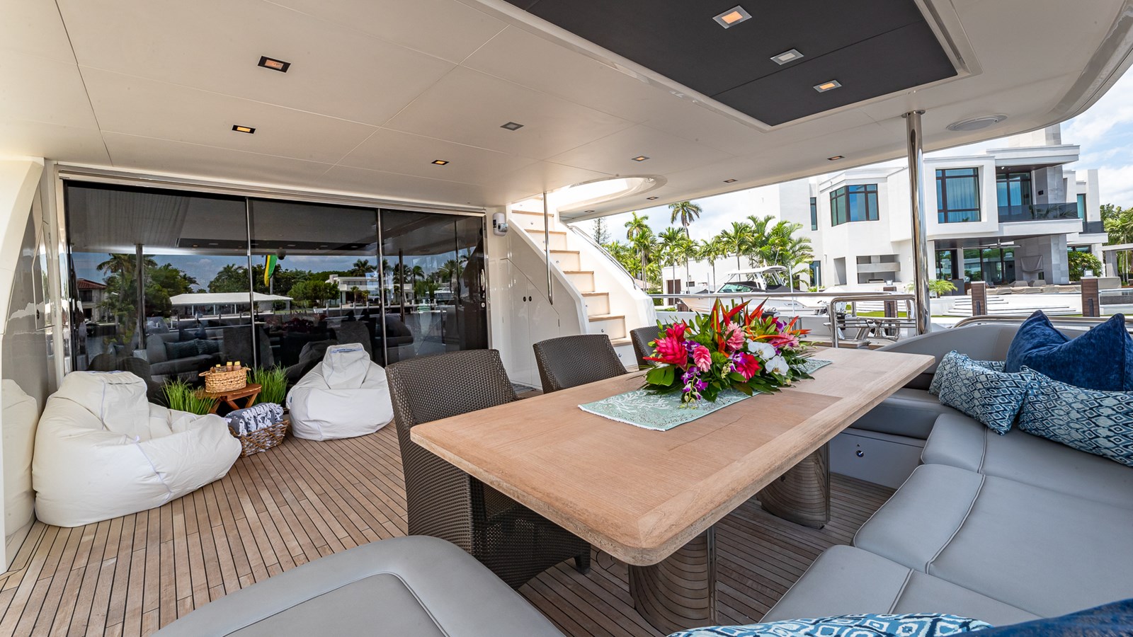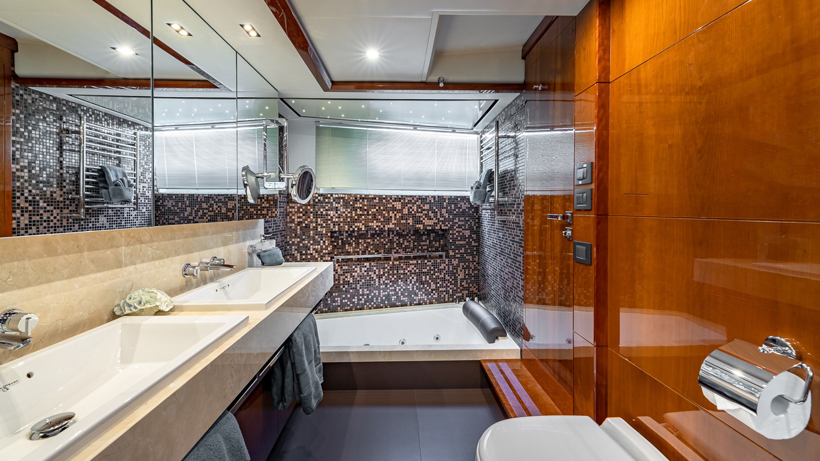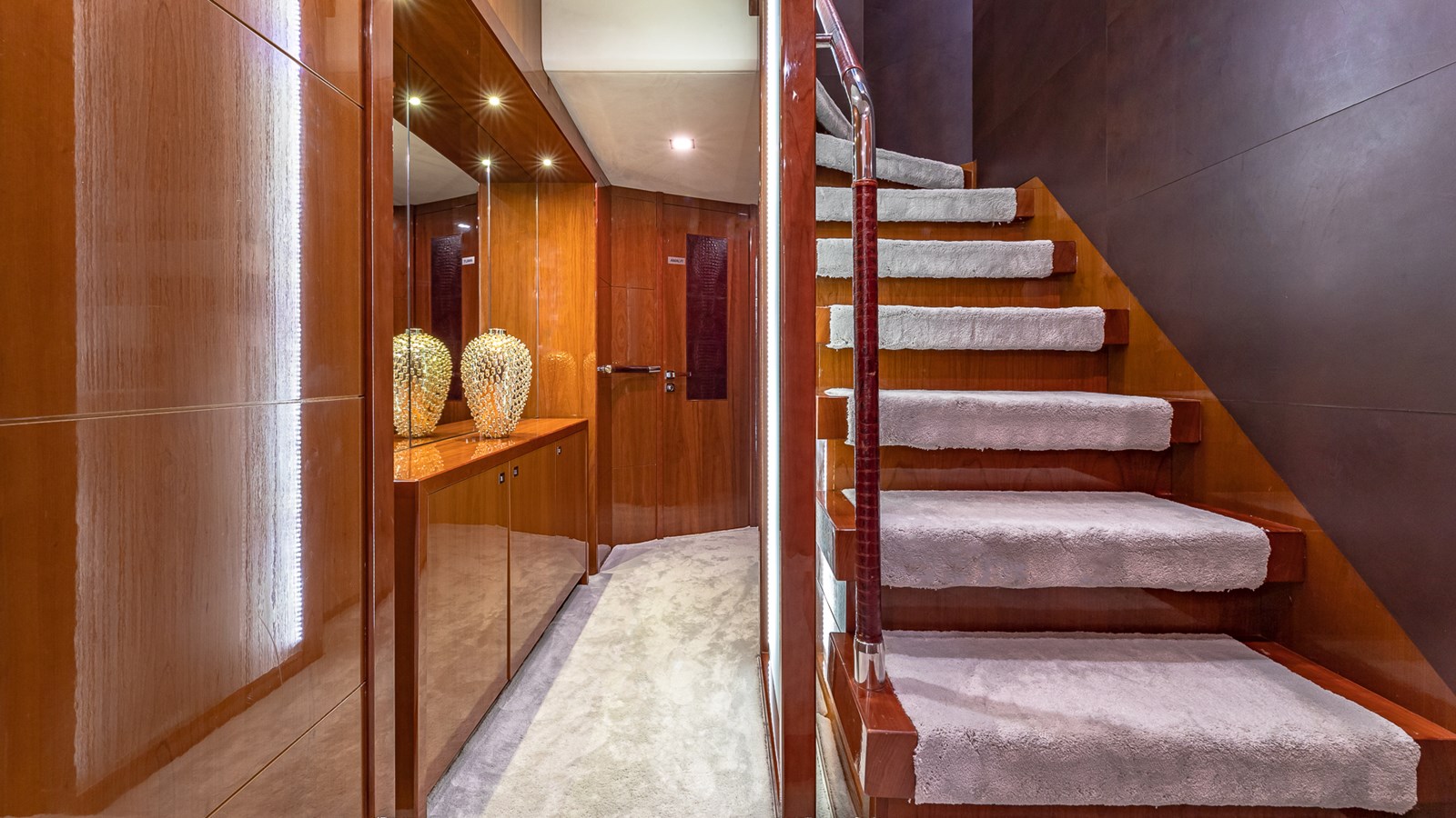 At-anchor Stabilizers, Hydraulic Gangway / Passerelle, Teak Cockpit, Balcony, Liferaft, Teak Sidedecks, Cockpit Cushions, Outboard Engine Brackets, Cockpit Shower, Passerelle, Tender Garage, Cockpit Table, Radar Reflector, Underwater Lights, Davit(s), Solar Panel, Underway Stabilizers, Dynamic Positioning, Swimming Ladder, Wind Generator, Gangway