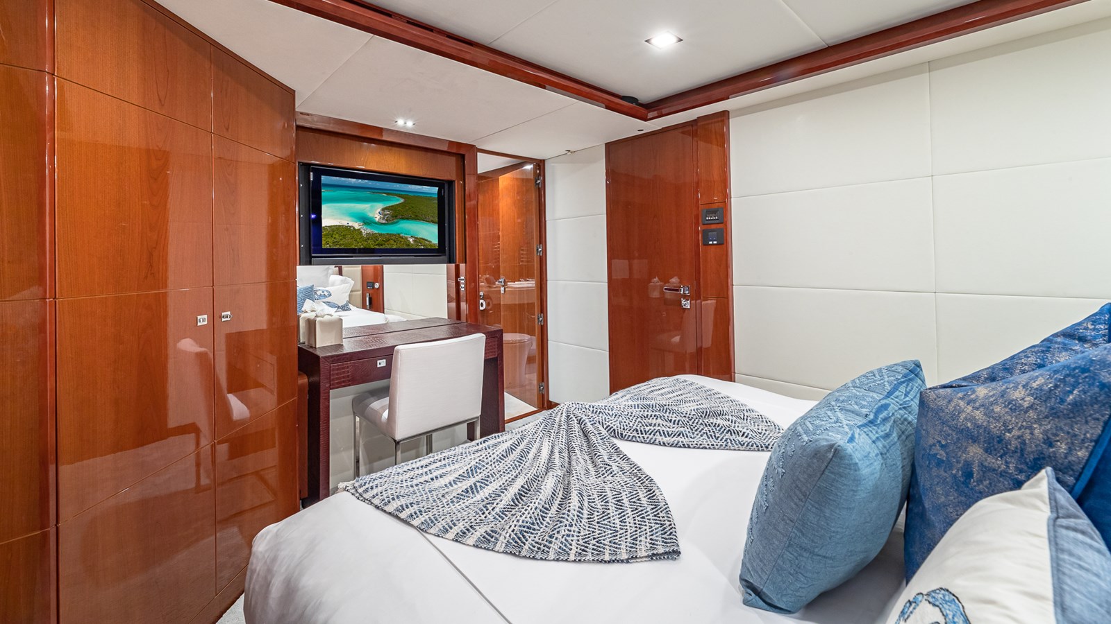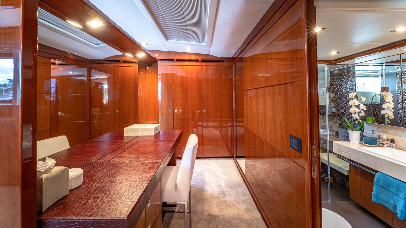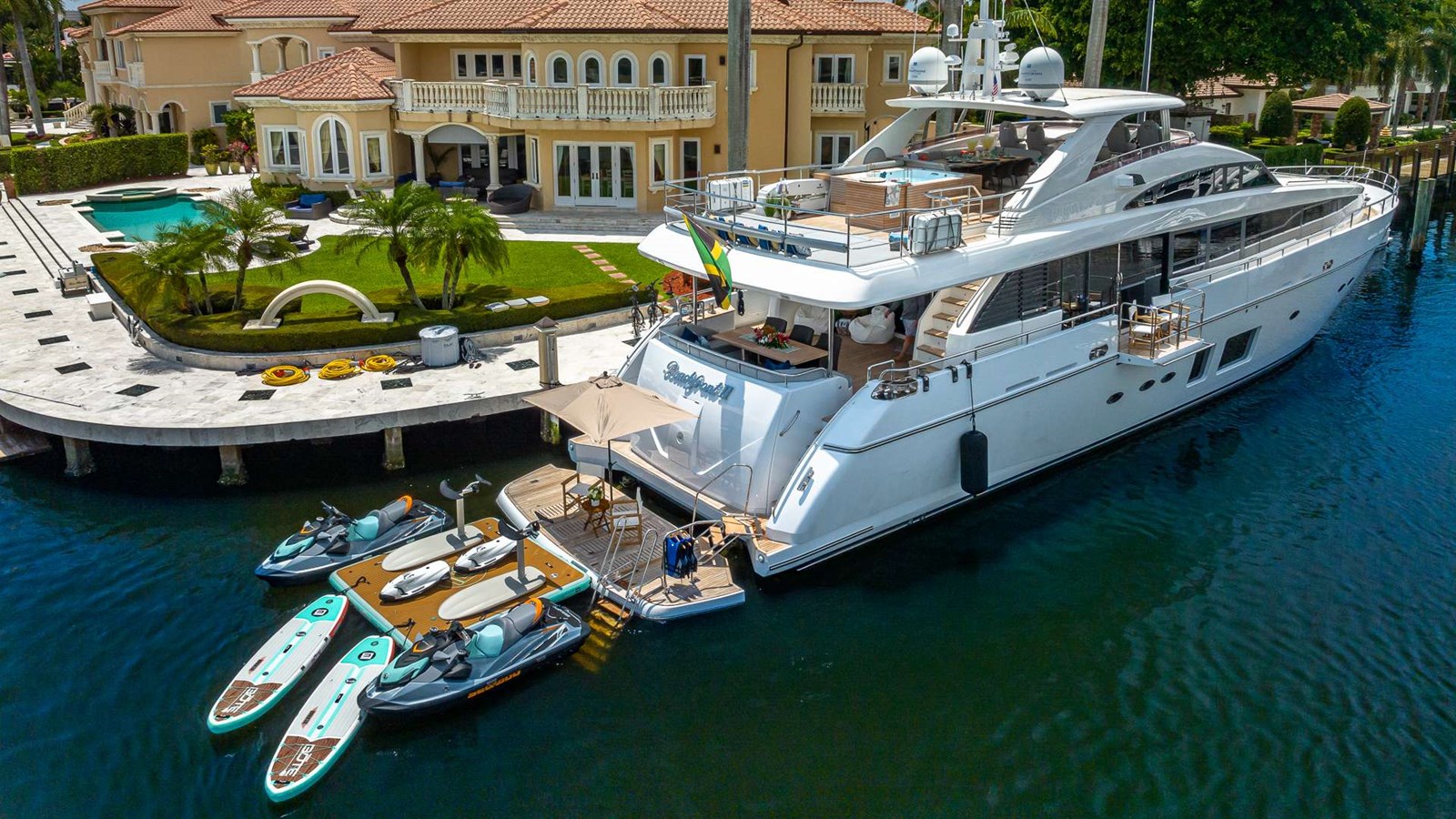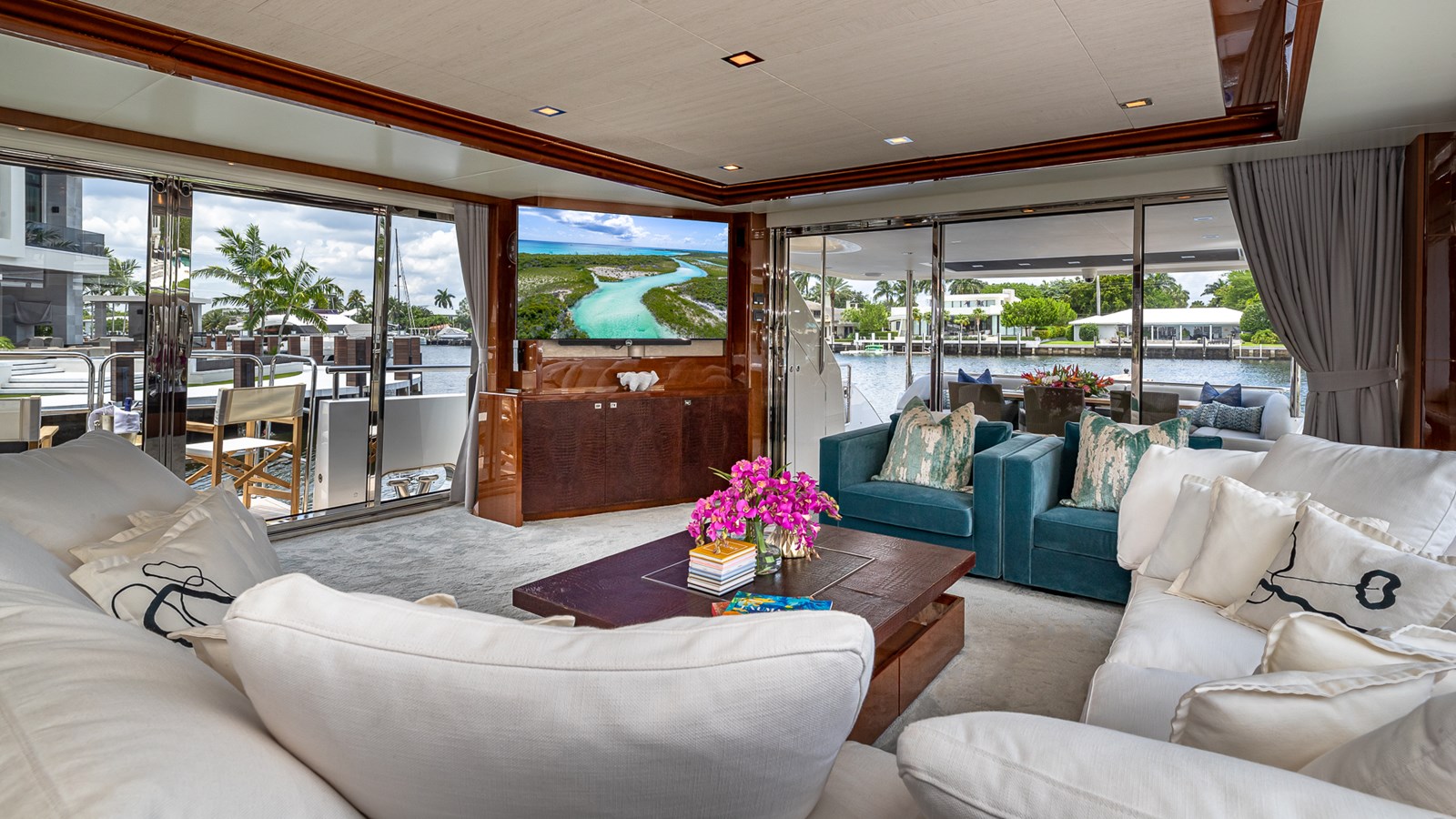 At-anchor Stabilizers, Hydraulic Gangway / Passerelle, Teak Cockpit, Balcony, Liferaft, Teak Sidedecks, Cockpit Cushions, Outboard Engine Brackets, Cockpit Shower, Passerelle, Tender Garage, Cockpit Table, Radar Reflector, Underwater Lights, Davit(s), Solar Panel, Underway Stabilizers, Dynamic Positioning, Swimming Ladder, Wind Generator, Gangway