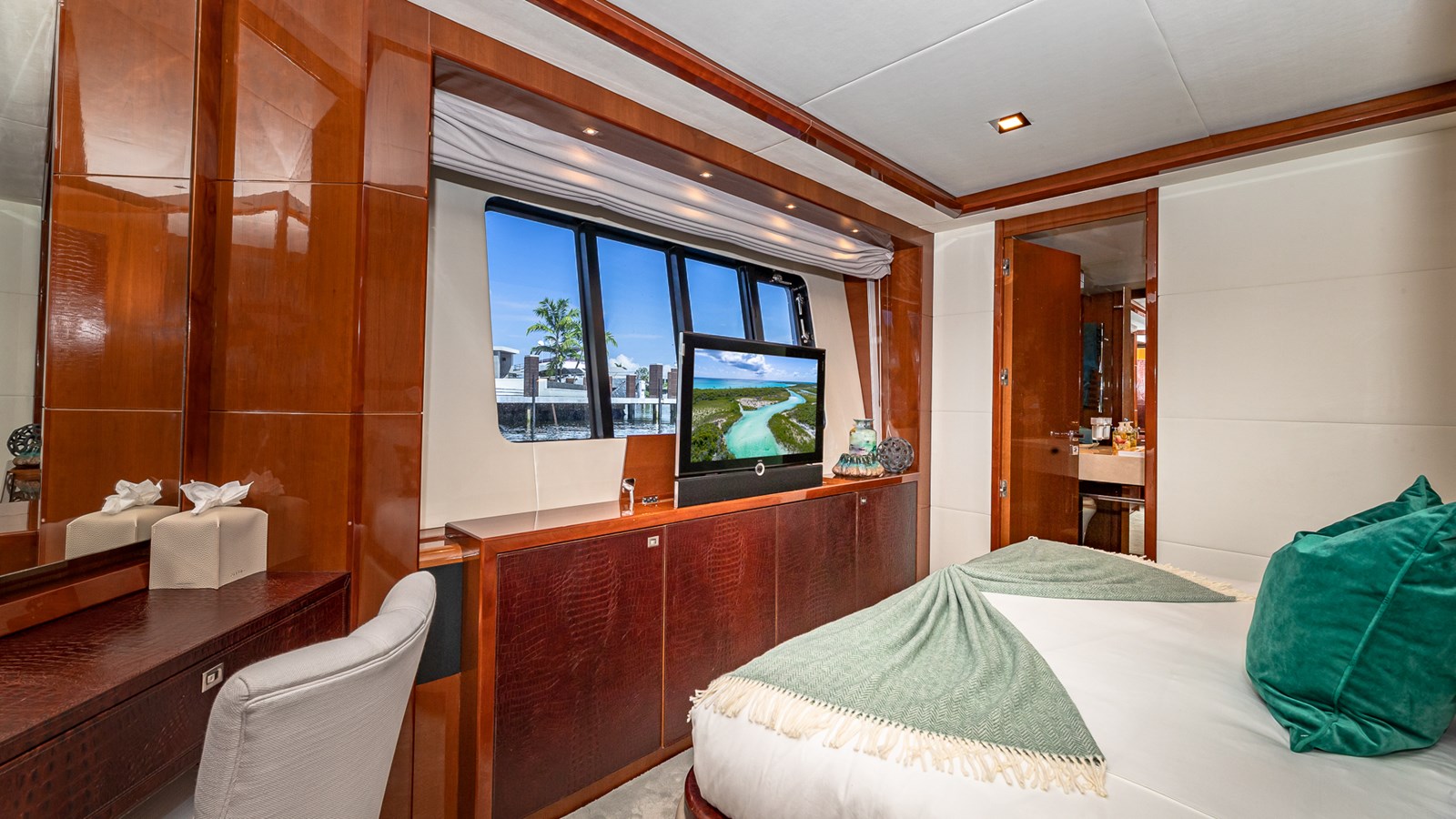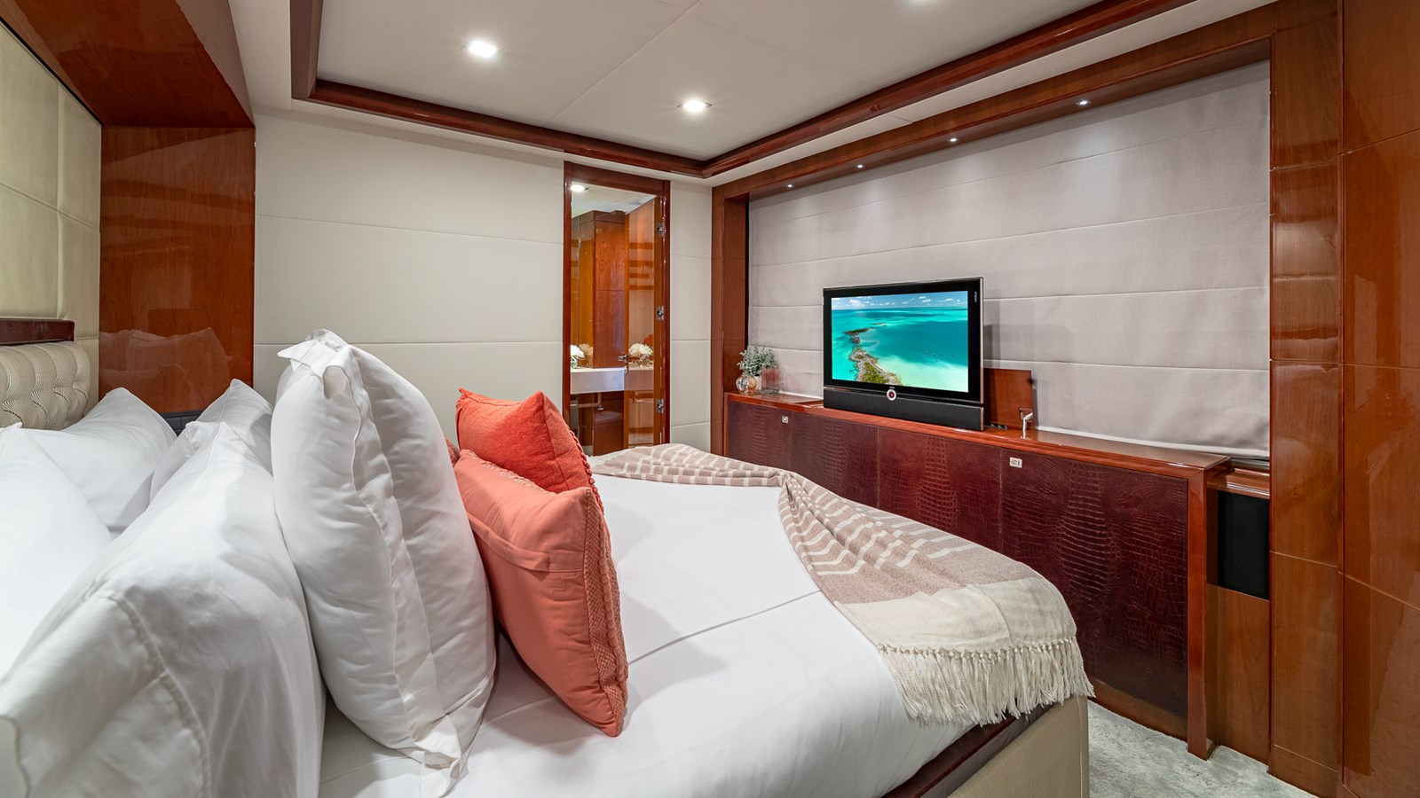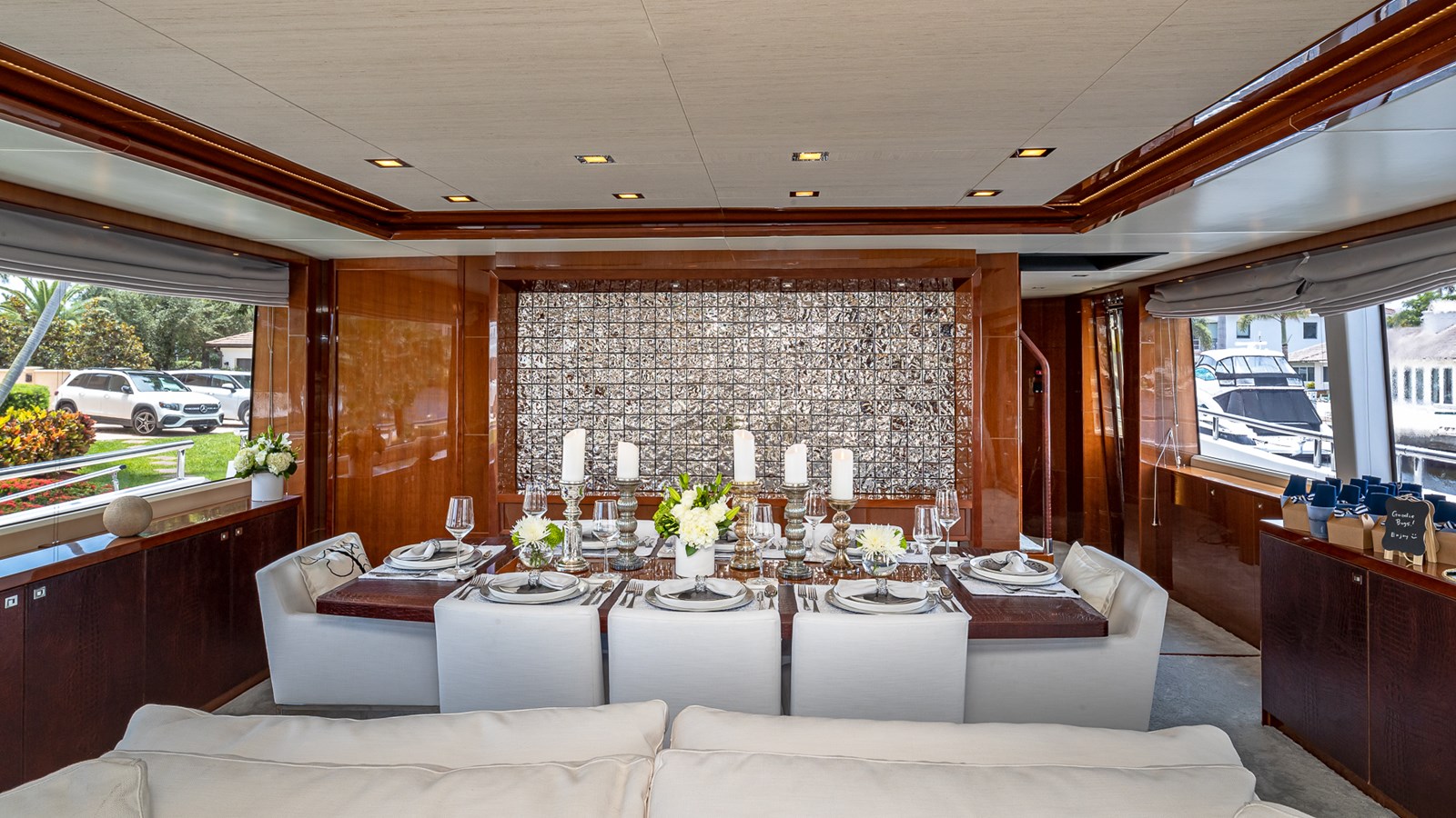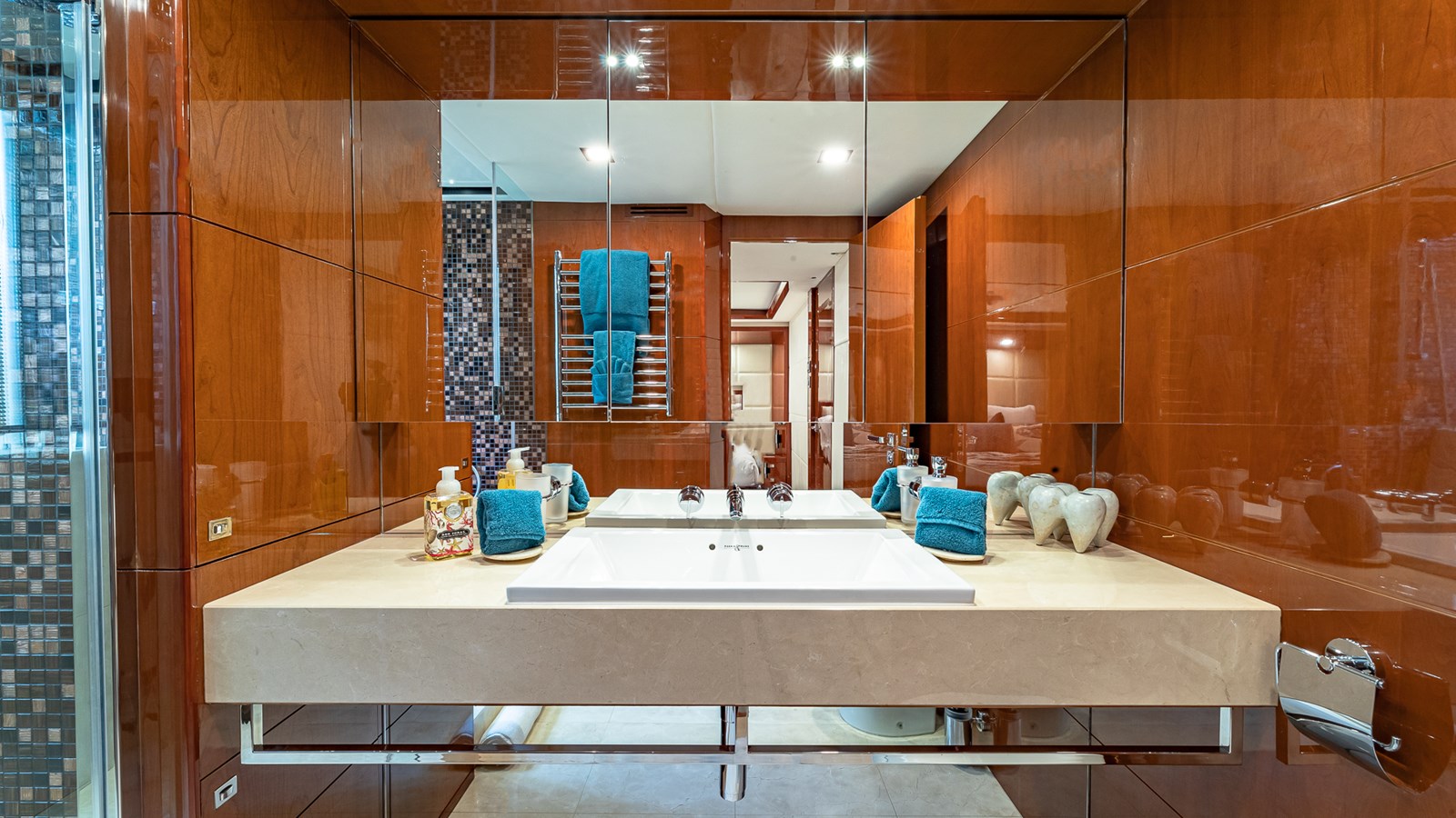 At-anchor Stabilizers, Hydraulic Gangway / Passerelle, Teak Cockpit, Balcony, Liferaft, Teak Sidedecks, Cockpit Cushions, Outboard Engine Brackets, Cockpit Shower, Passerelle, Tender Garage, Cockpit Table, Radar Reflector, Underwater Lights, Davit(s), Solar Panel, Underway Stabilizers, Dynamic Positioning, Swimming Ladder, Wind Generator, Gangway