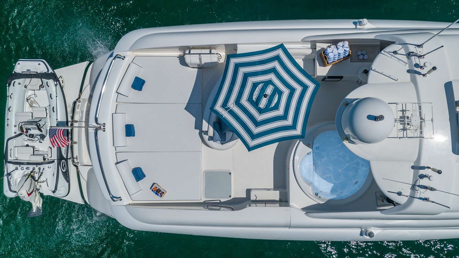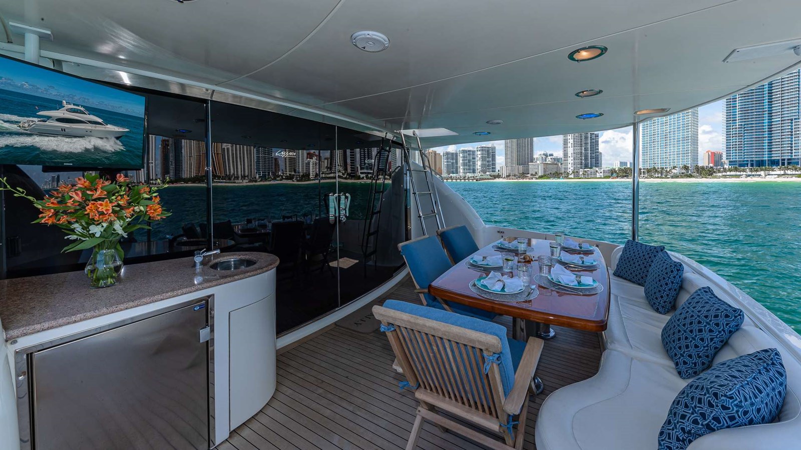 Direct tv in all bedrooms, salon, kitchen and outdoor aft deck