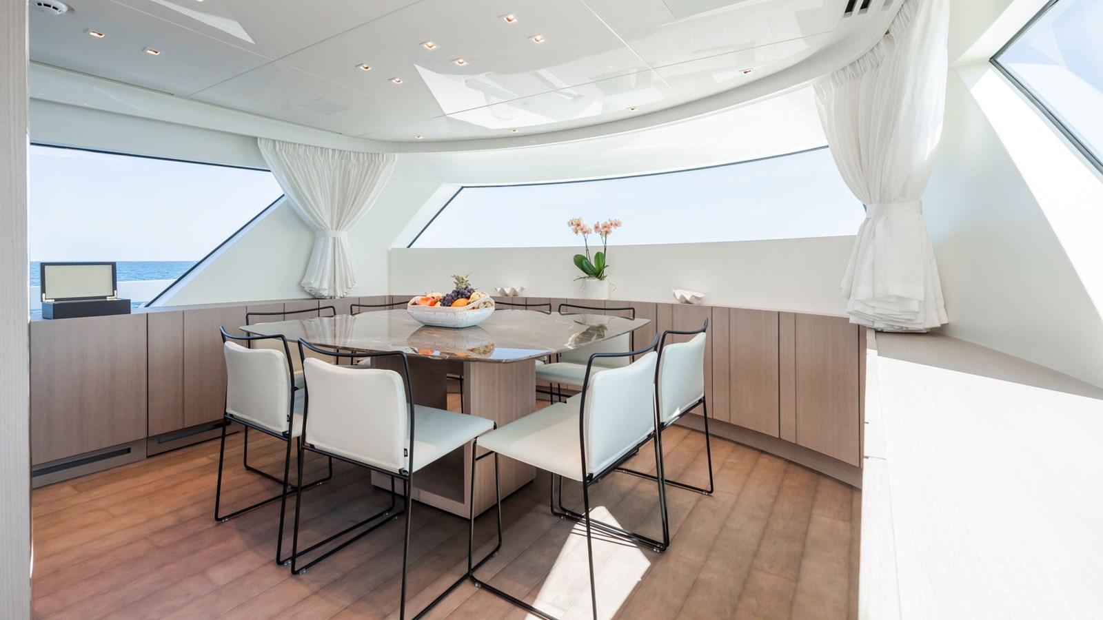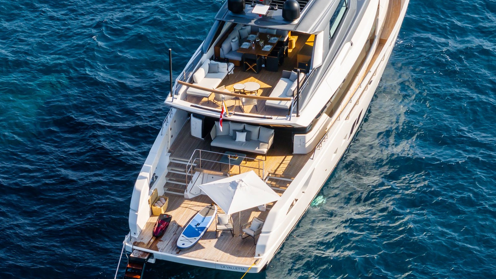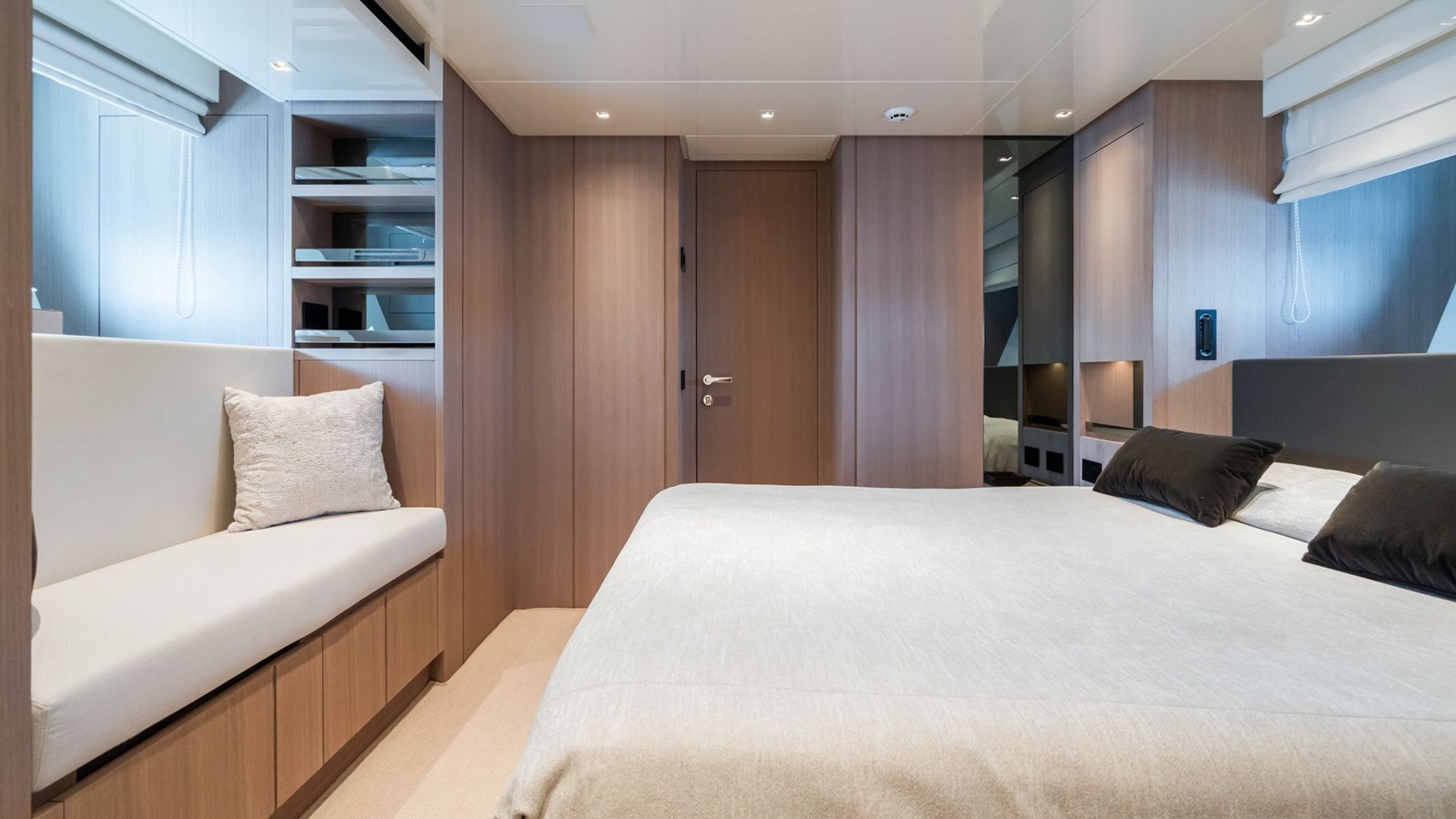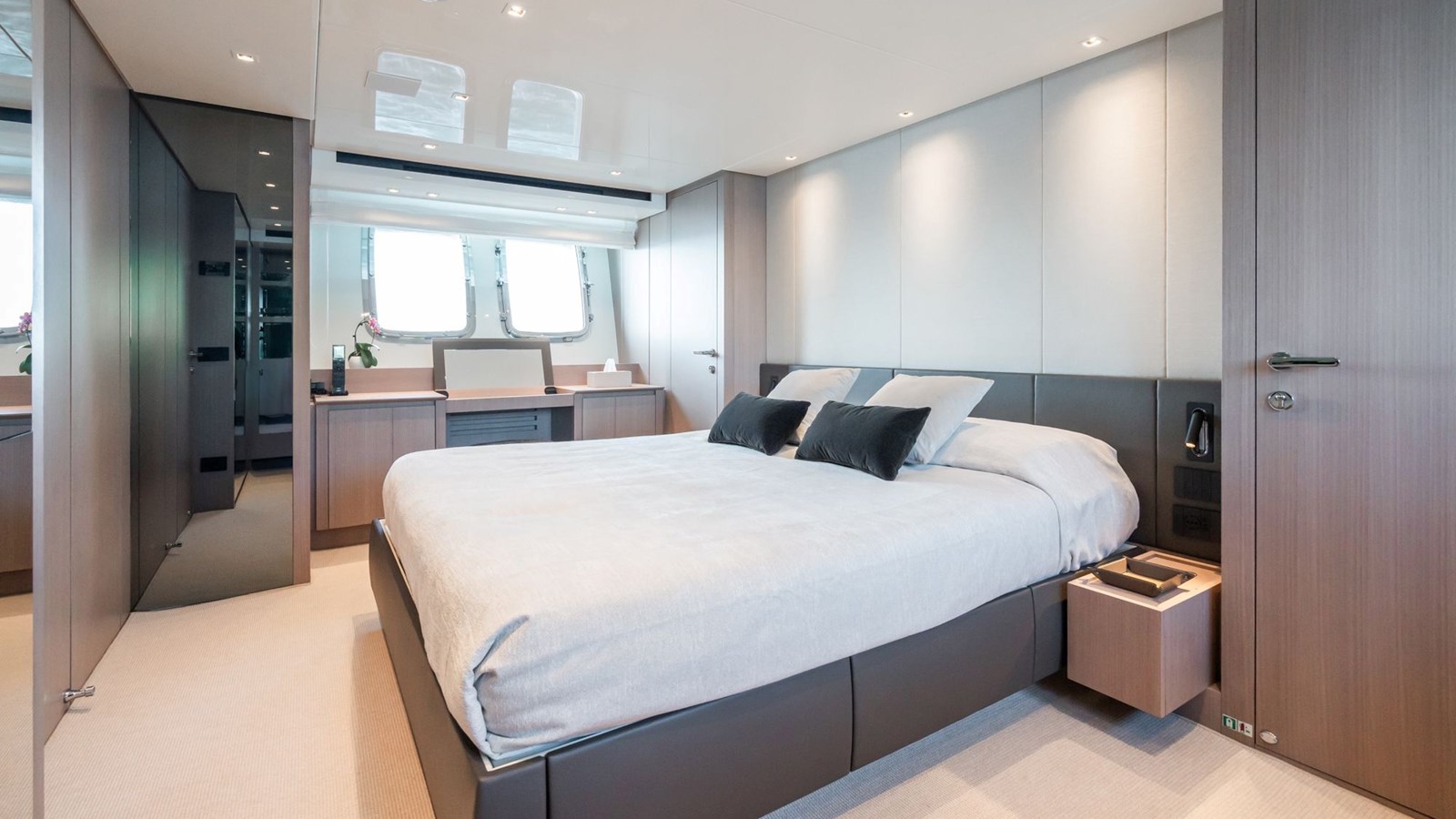 FITLINE is a Sanlorenzo SX76, perfectly designed for luxurious coastal exploration. Her crossover layout places the helm on the flybridge, leaving the main deck entirely dedicated to an open-plan living space. The galley is located next to the dining area, while the spacious saloon, bathed in natural light from its large windows, provides a relaxing environment with stunning sea views.The yacht’s outdoor spaces are equally impressive. The expansive swim platform, equipped with a hidden sea crane, offers plenty of room to unwind and easy water access through a hydraulic system and stepped passerelle. The foredeck features a cozy lounge ideal for sunbathing or enjoying cocktails, while the flybridge boasts panoramic views, a bar, a grill, and space for al fresco dining. Below deck, FITLINE accommodates up to eight guests in four stylish en suite cabins, each with a private shower. With her modern design and thoughtful amenities, FITLINE promises a luxurious and memorable journey at sea.