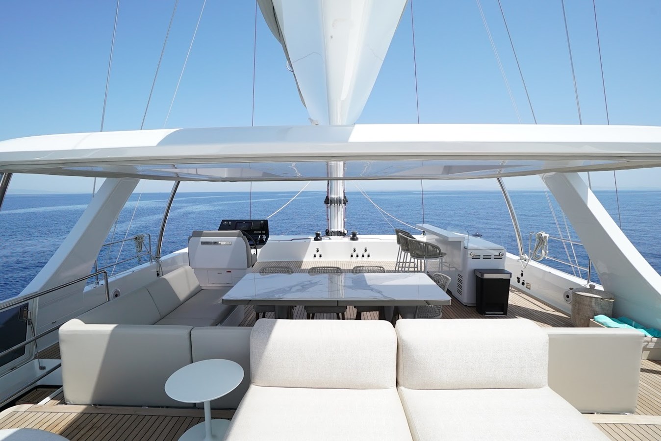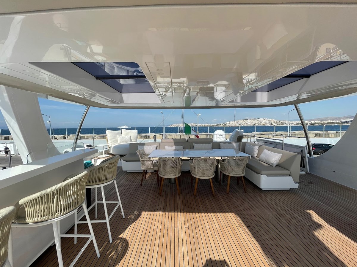 Tuna steak: A beautiful tuna fillet accompanied by a zucchini salad with orange sauce and Italian Grana Padano cheese