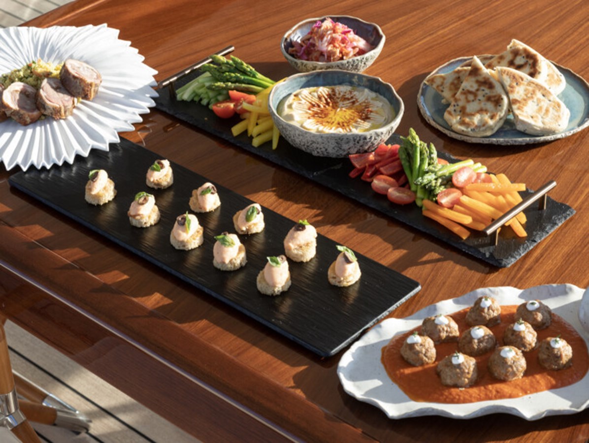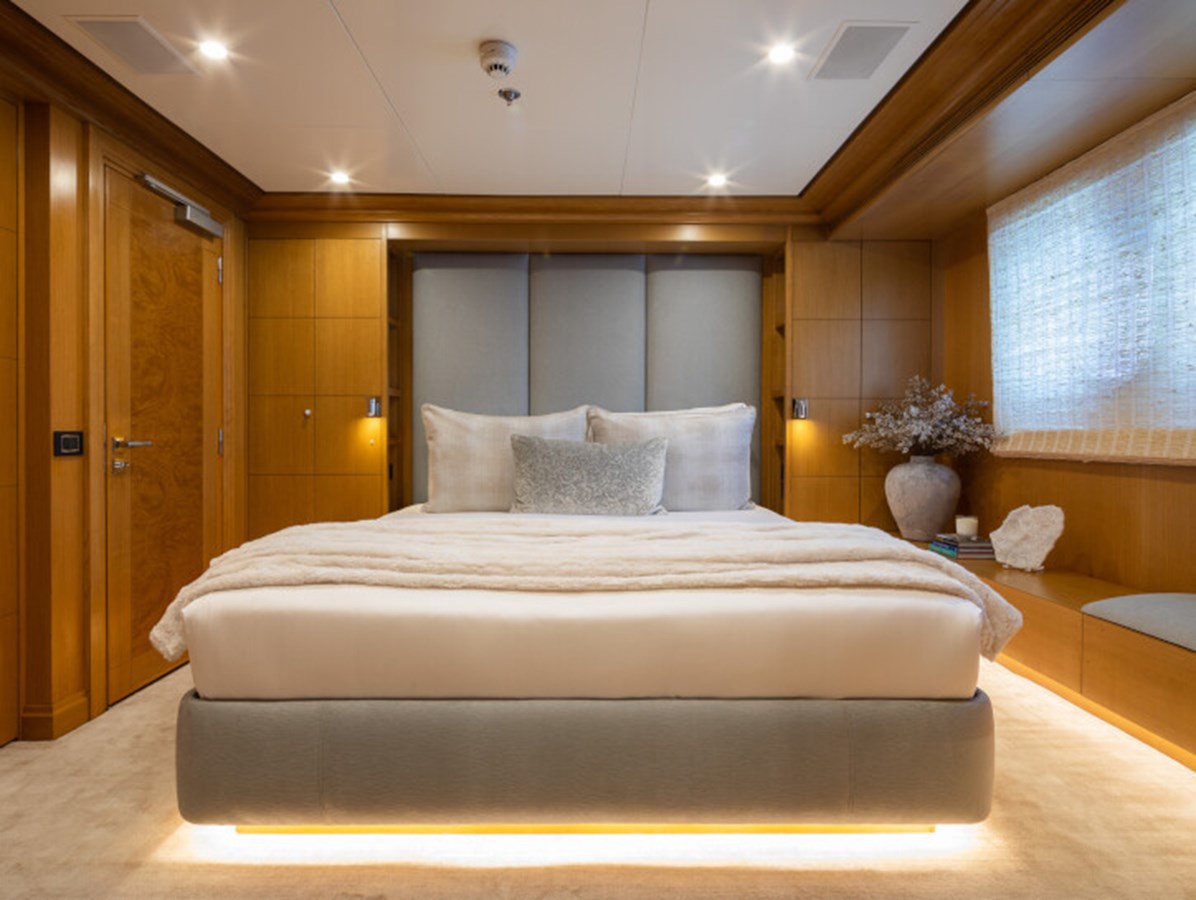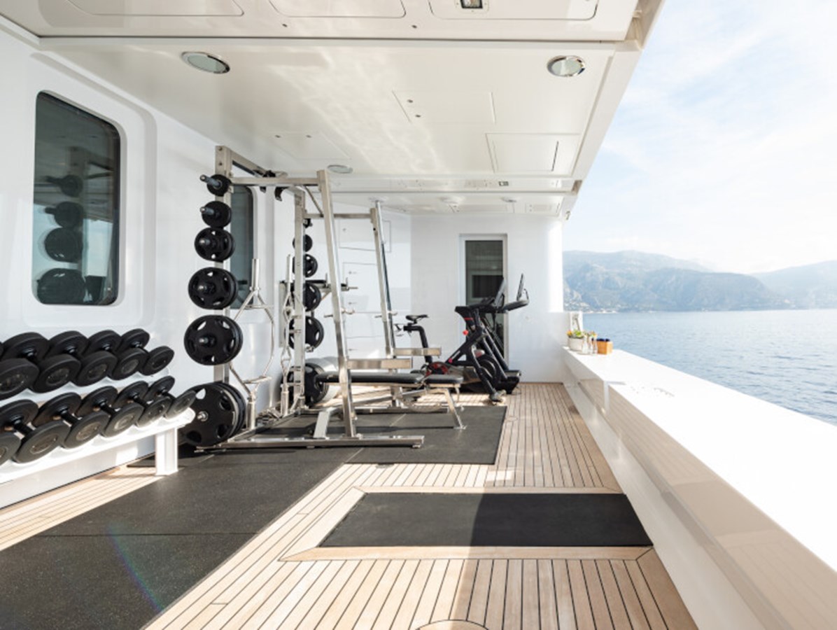 Talking of playtime, there’s also an extensive water toys collection and a Fjord 44 chase boat, with a permanent crew of two. When it comes to relaxing on board, the spa therapist can revitalise guests with a range of treatments, including a full body massage or an exfoliation sugar scrub.