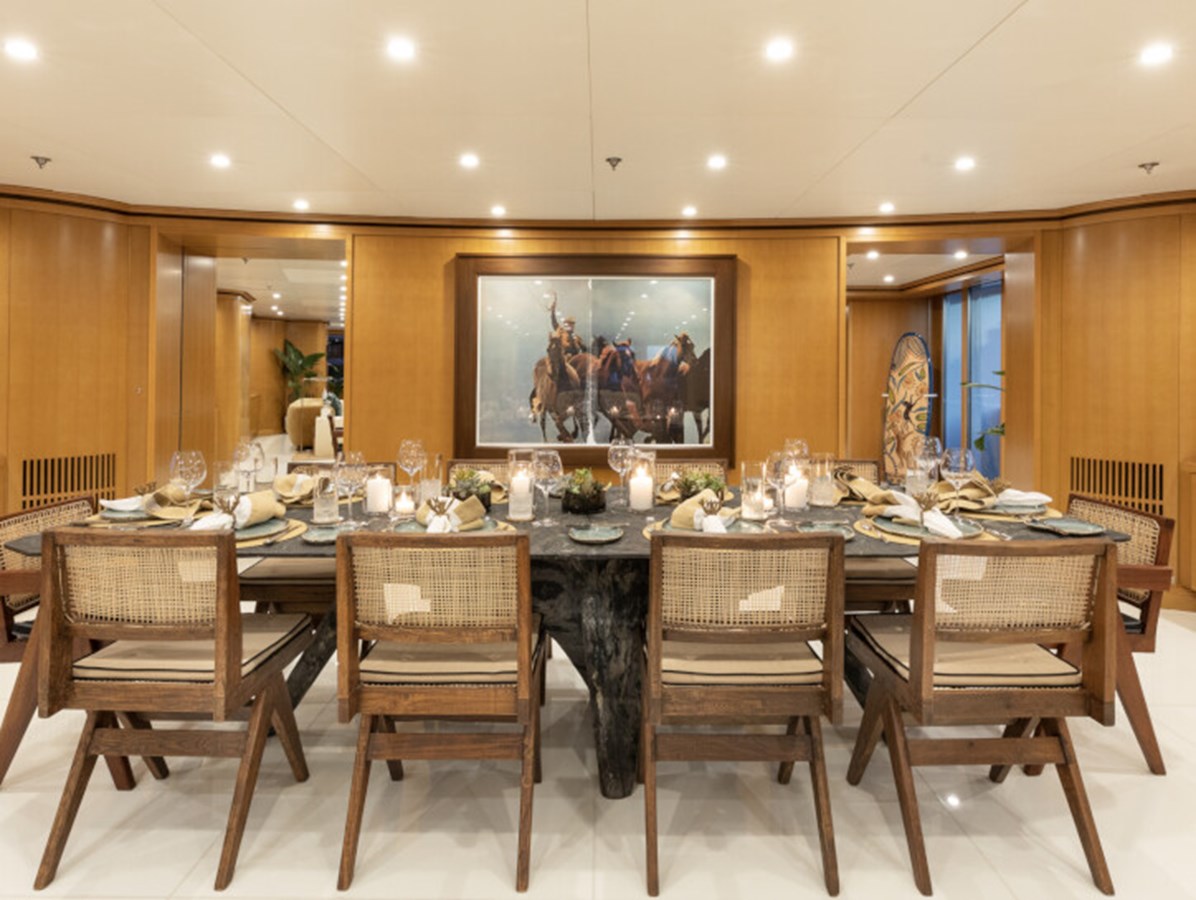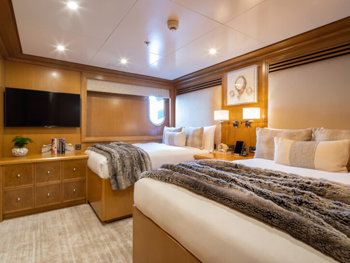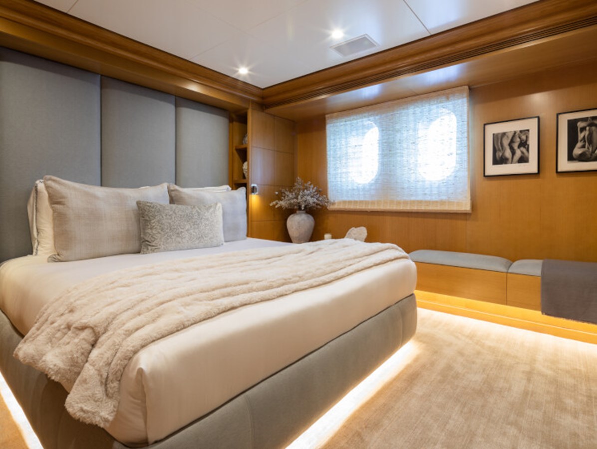 Her spacious design provides accommodation for 12 guests across a full-beam master, four doubles and a twin, with space for up to 16 crew, to ensure a relaxed charter experience.