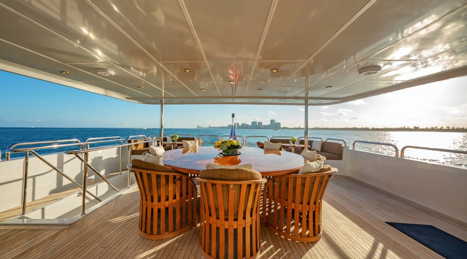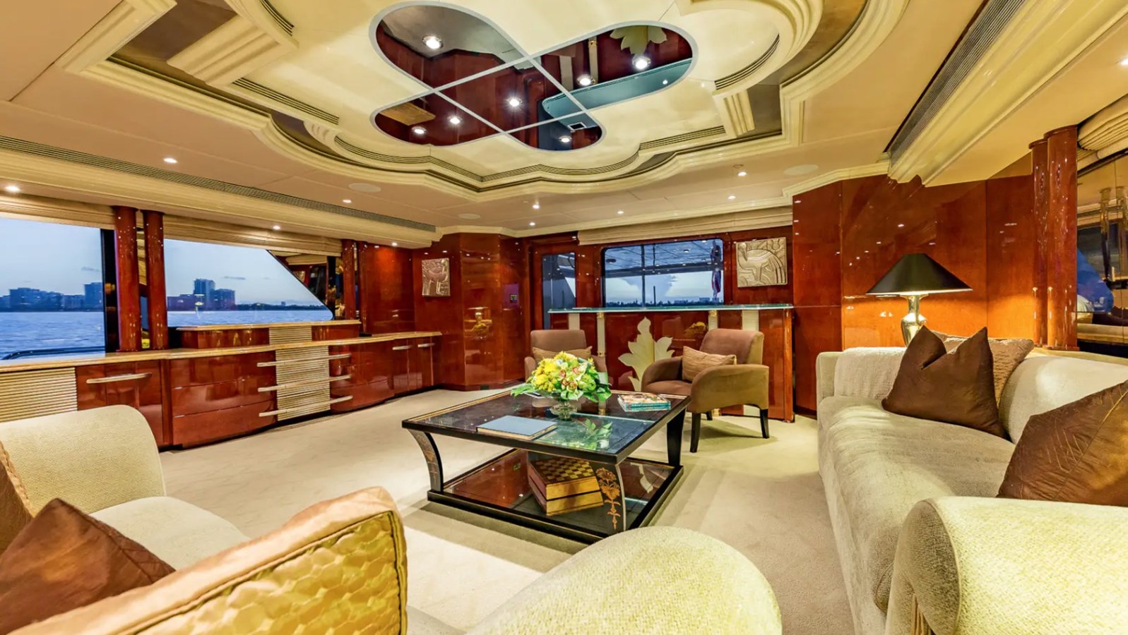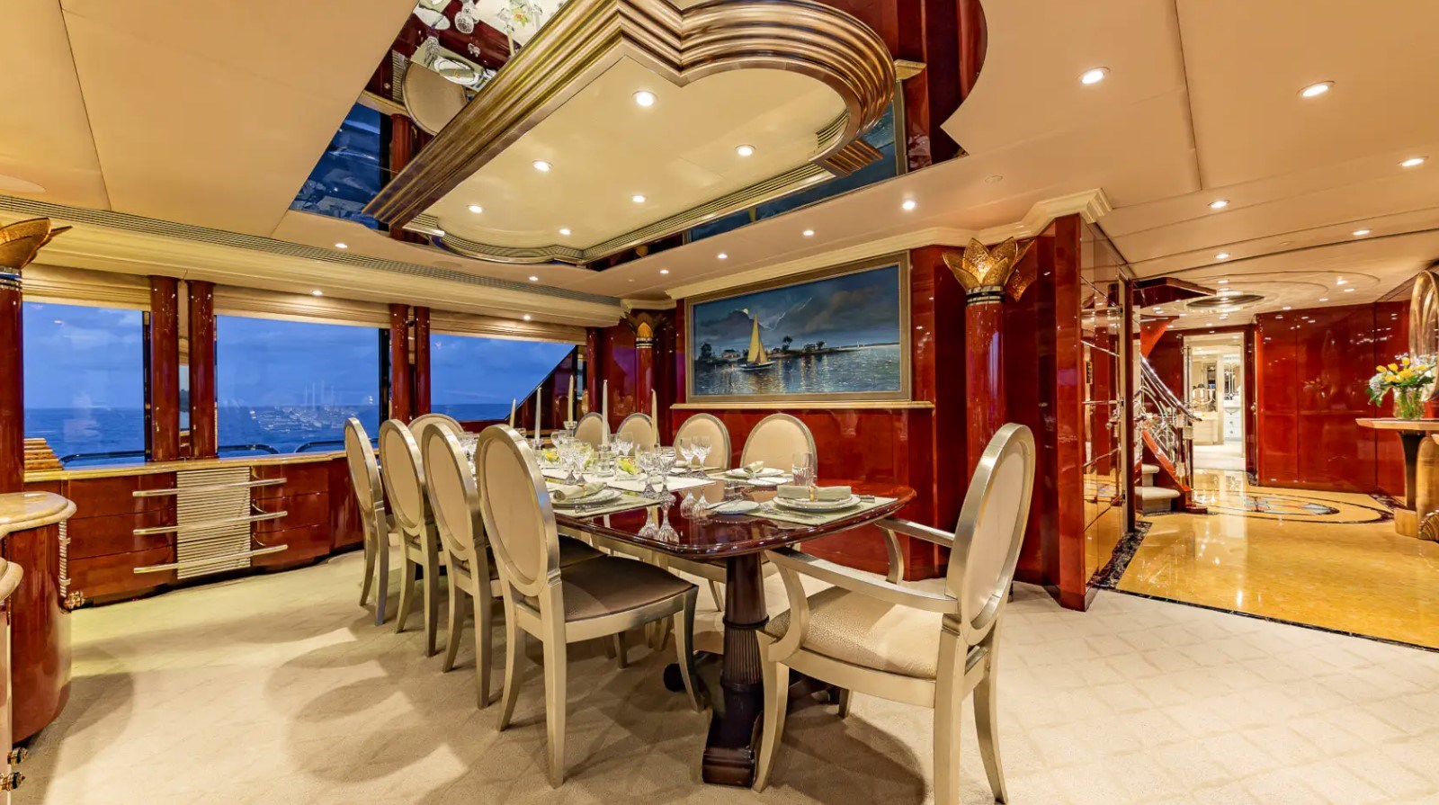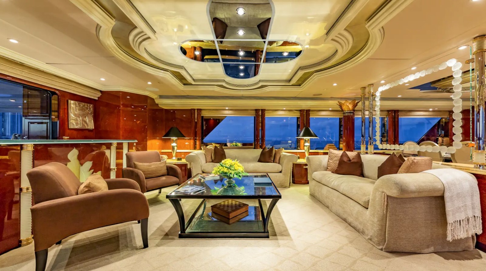 Superyacht I LOVE THIS BOAT welcomes guests with a relaxing, calming ambiance featuring plush furnishings, natural woods and an inviting color palette throughout. Her main salon and skylounge offer ideal spaces to socialize or relax while relishing the yacht’s sumptuous, comfortable amenities. Separated from the main salon via a beautiful etched-glass panel is the yacht’s formal dining where 10 guests can enjoy magnificent meals prepared by the five-star chef; I LOVE THIS BOAT also offers several options for dining alfresco.