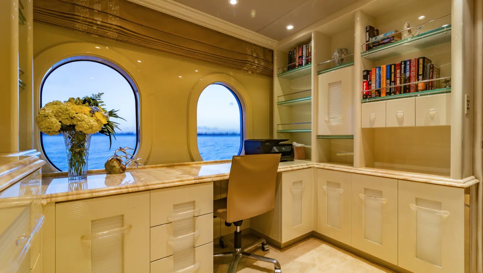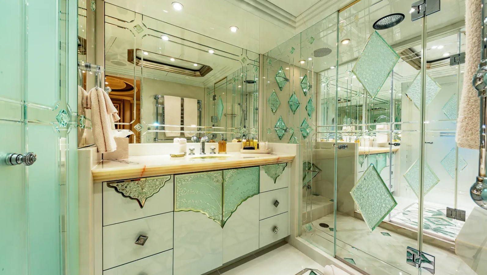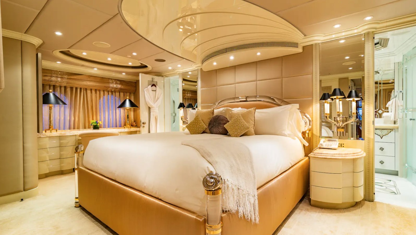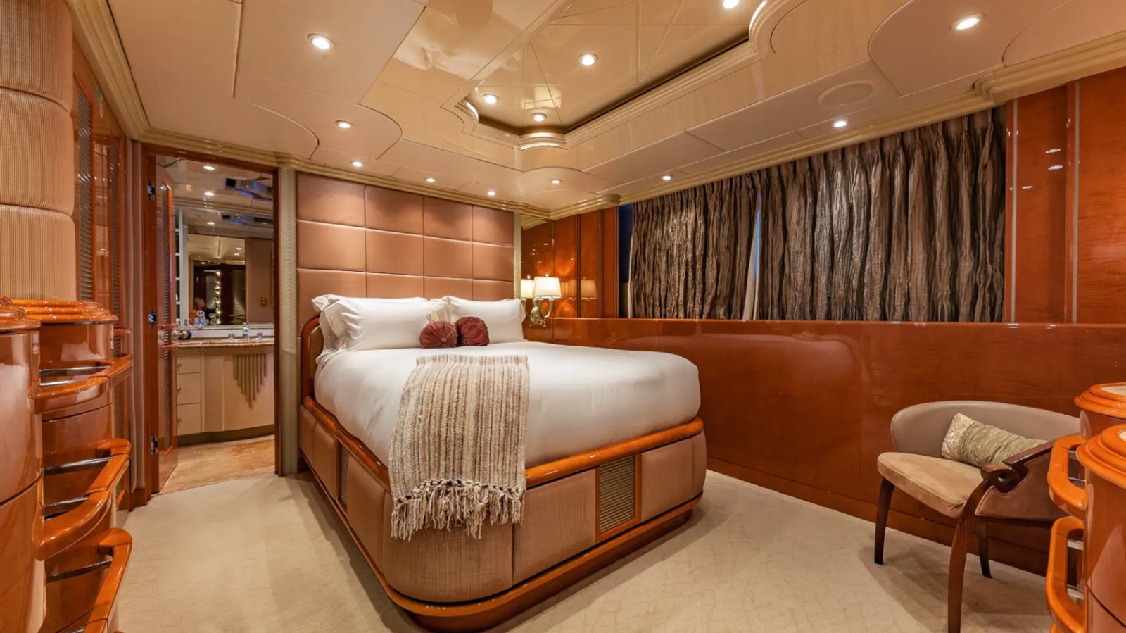 Superyacht I LOVE THIS BOAT welcomes guests with a relaxing, calming ambiance featuring plush furnishings, natural woods and an inviting color palette throughout. Her main salon and skylounge offer ideal spaces to socialize or relax while relishing the yacht’s sumptuous, comfortable amenities. Separated from the main salon via a beautiful etched-glass panel is the yacht’s formal dining where 10 guests can enjoy magnificent meals prepared by the five-star chef; I LOVE THIS BOAT also offers several options for dining alfresco.