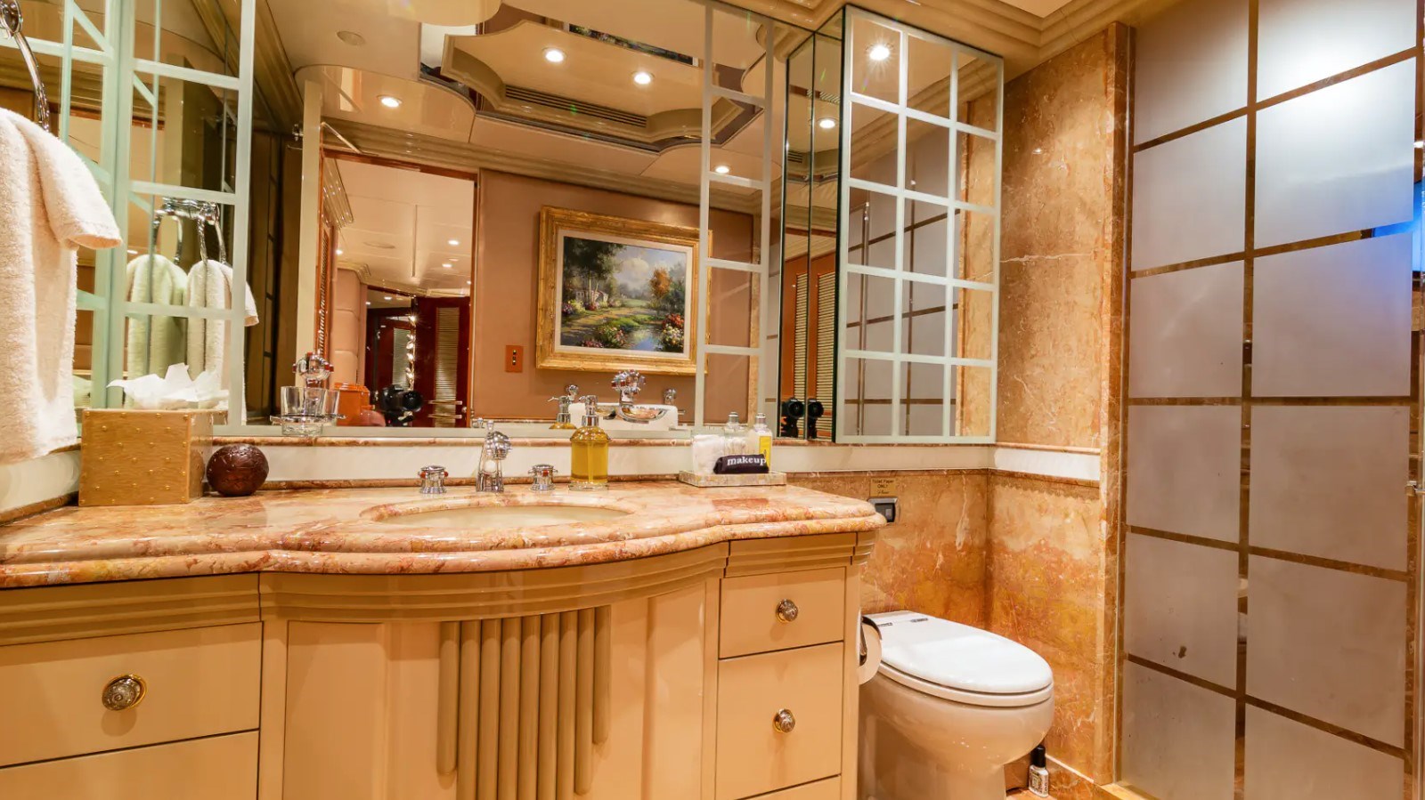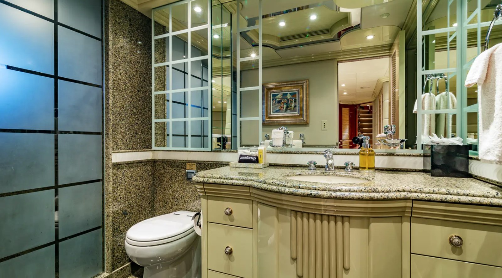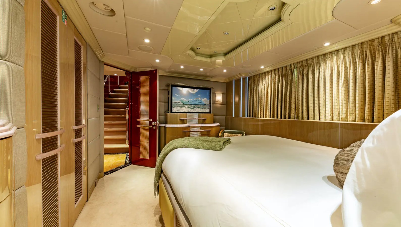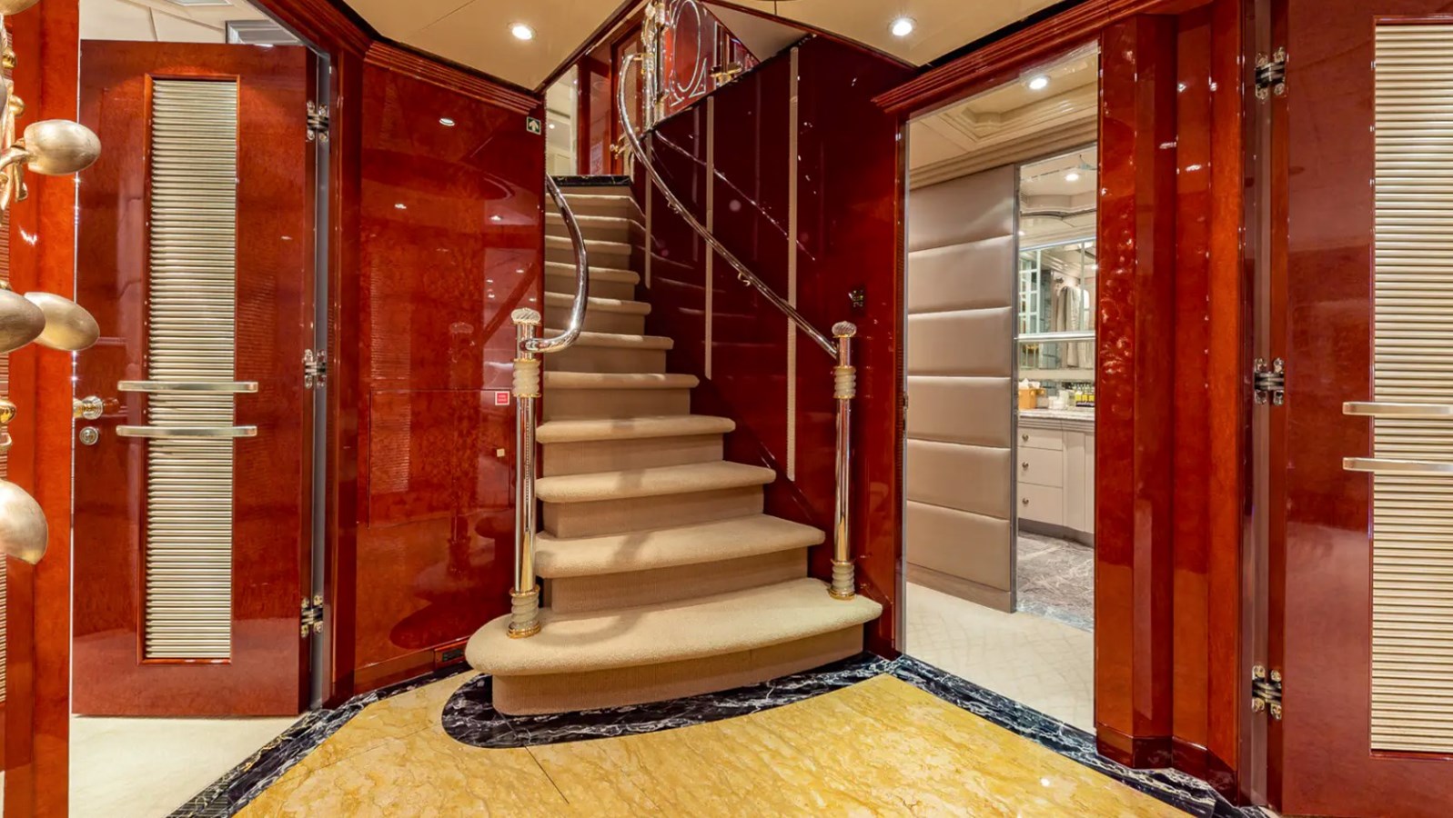 Superyacht I LOVE THIS BOAT welcomes guests with a relaxing, calming ambiance featuring plush furnishings, natural woods and an inviting color palette throughout. Her main salon and skylounge offer ideal spaces to socialize or relax while relishing the yacht’s sumptuous, comfortable amenities. Separated from the main salon via a beautiful etched-glass panel is the yacht’s formal dining where 10 guests can enjoy magnificent meals prepared by the five-star chef; I LOVE THIS BOAT also offers several options for dining alfresco.
