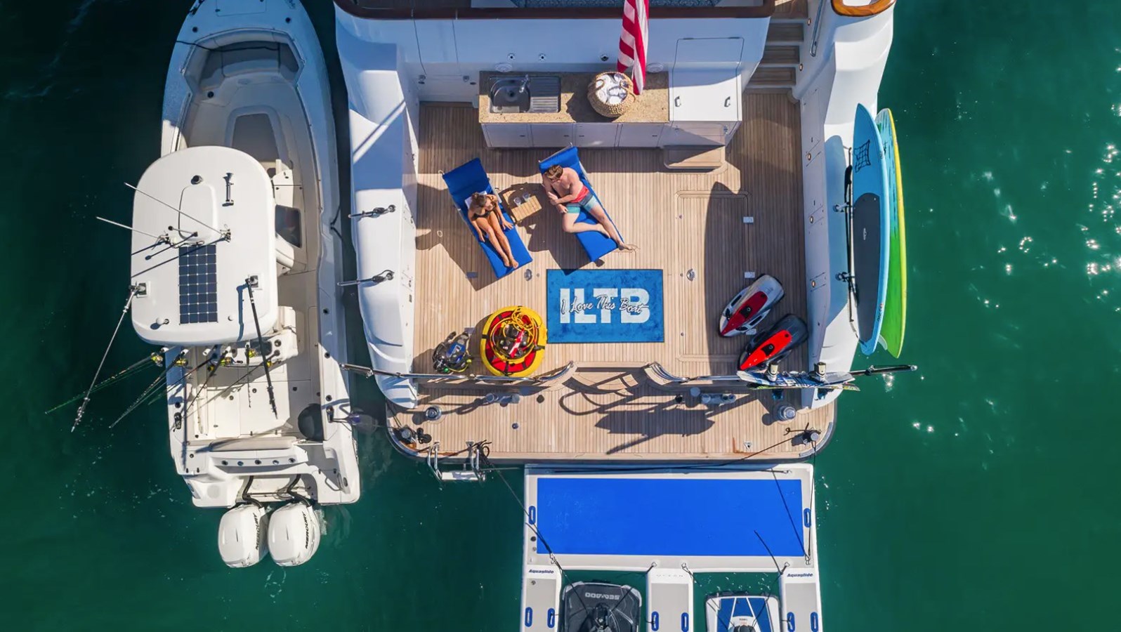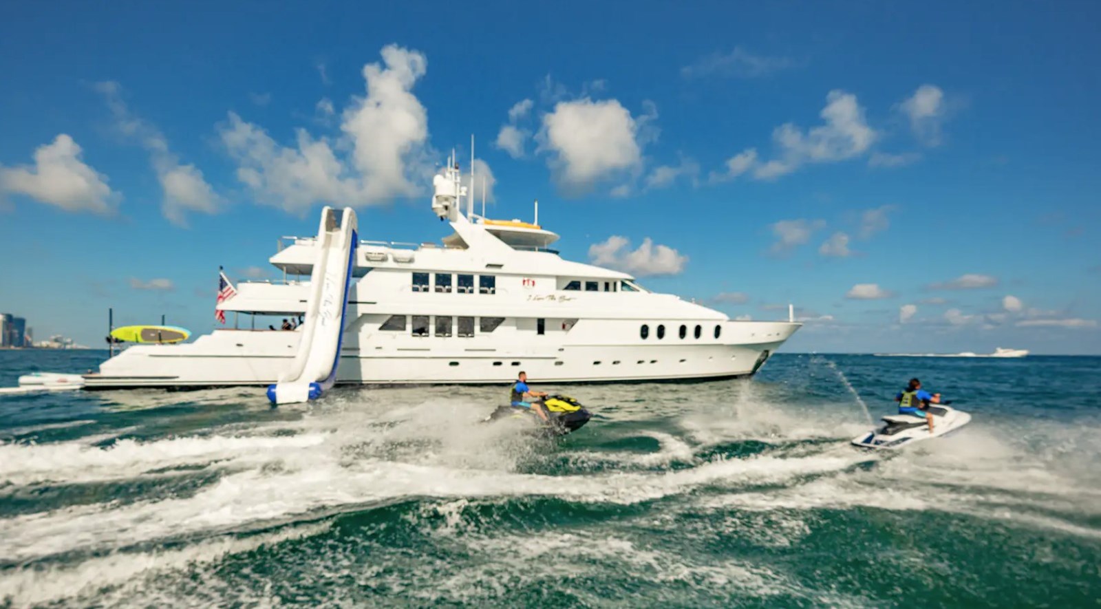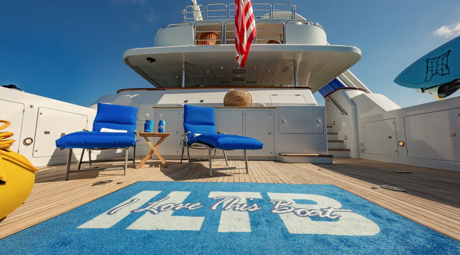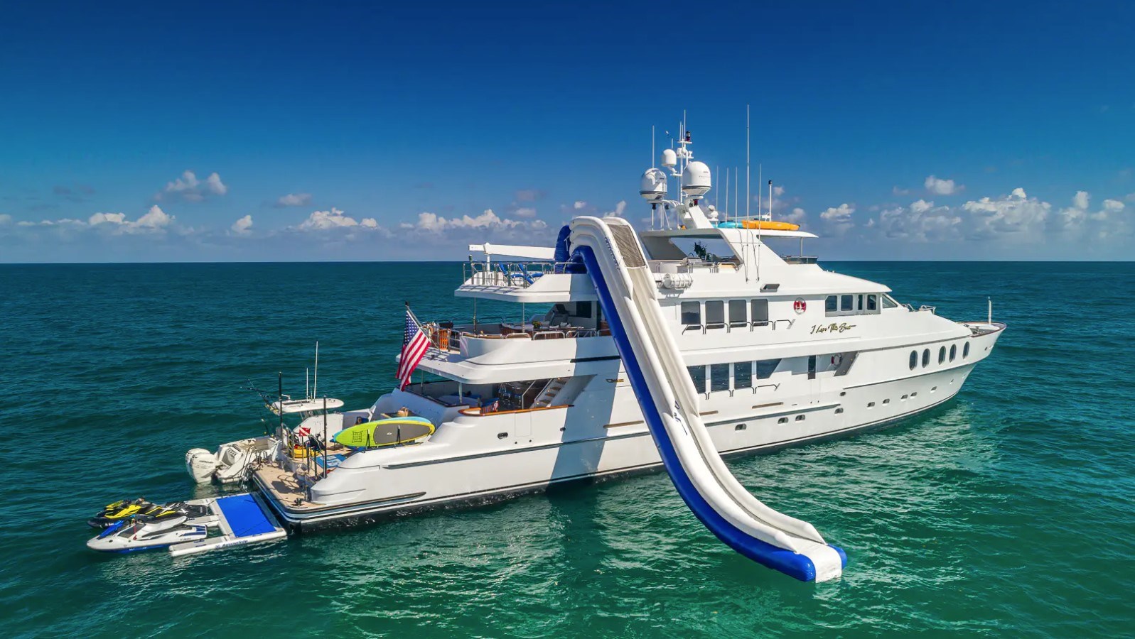 Boasting a plethora of water toys, like a giant slide, this yacht is perfect for family fun on the water. I LOVE THIS BOAT also offers music throughout the yacht, allowing charter guests to move to the beats of their favorite songs no matter where they are on board.