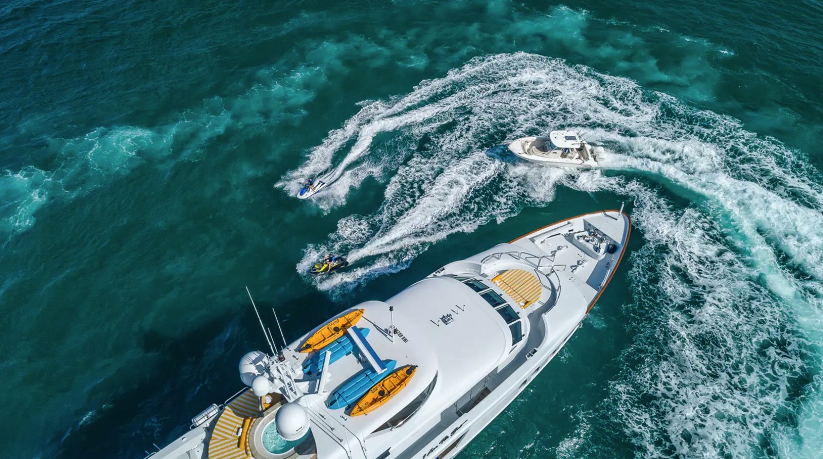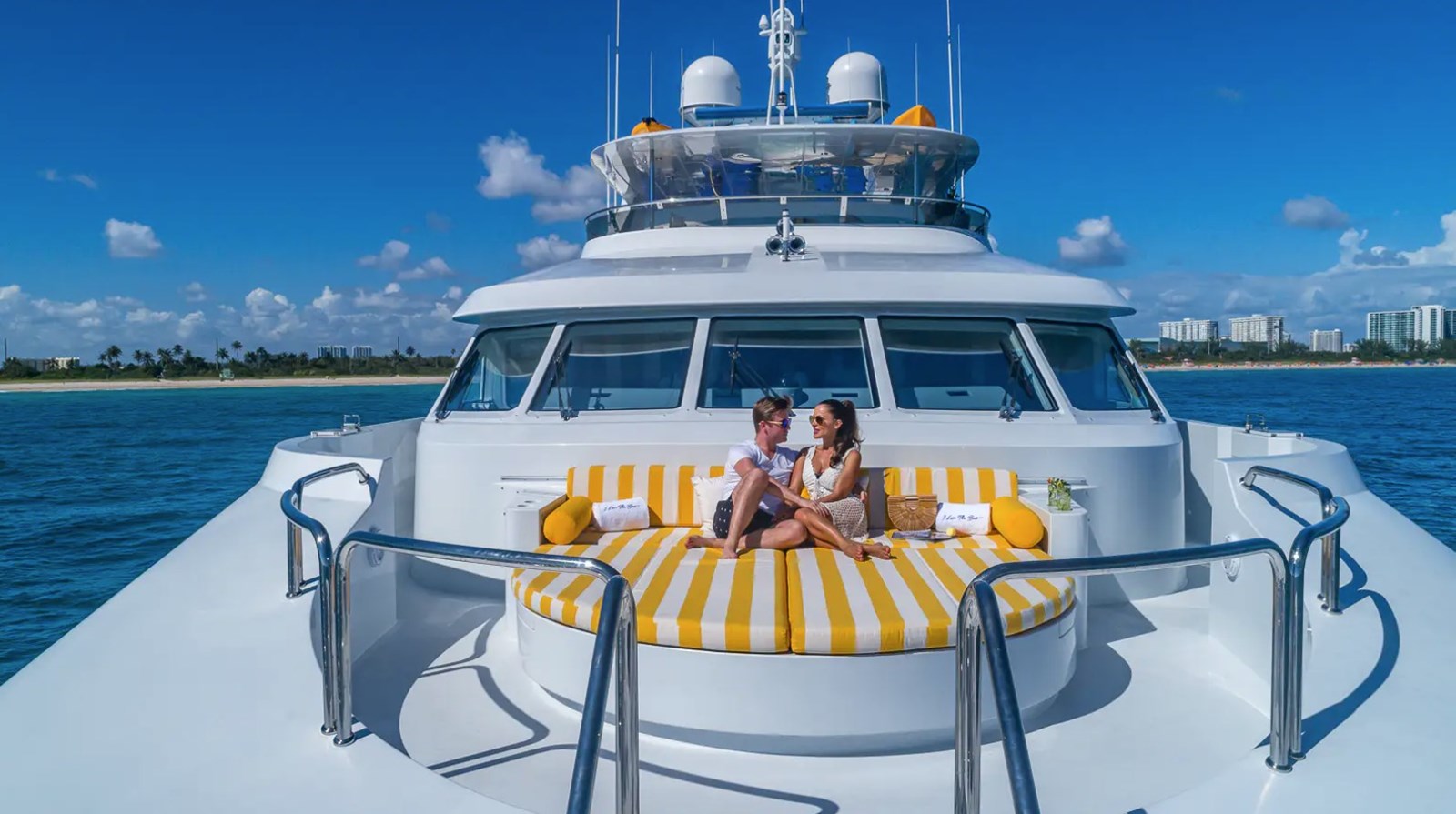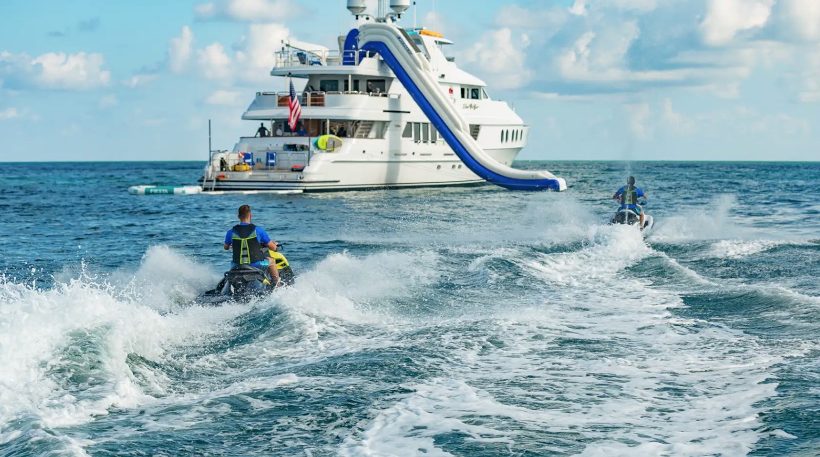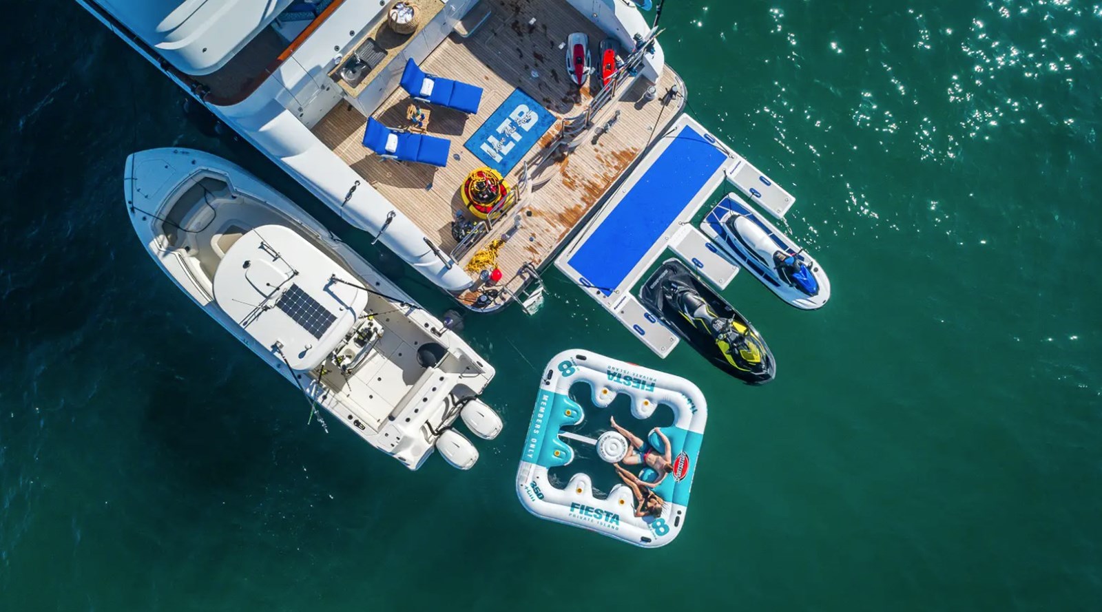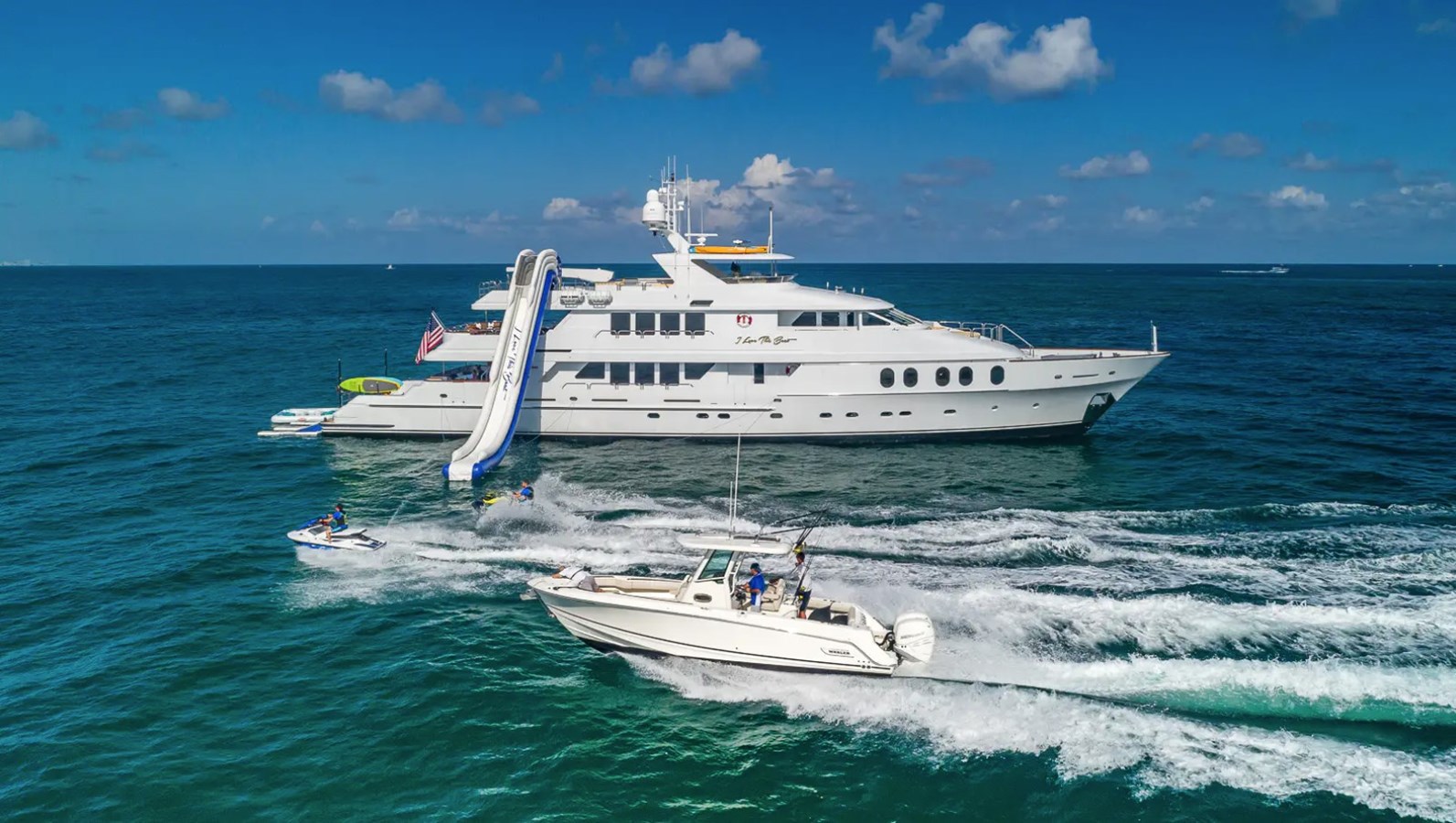 Boasting a plethora of water toys, like a giant slide, this yacht is perfect for family fun on the water. I LOVE THIS BOAT also offers music throughout the yacht, allowing charter guests to move to the beats of their favorite songs no matter where they are on board.