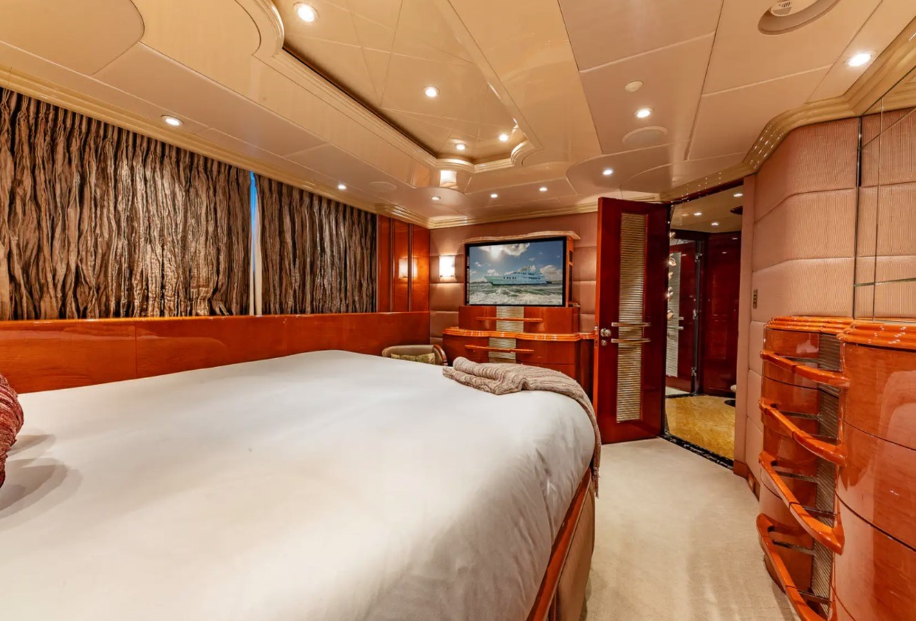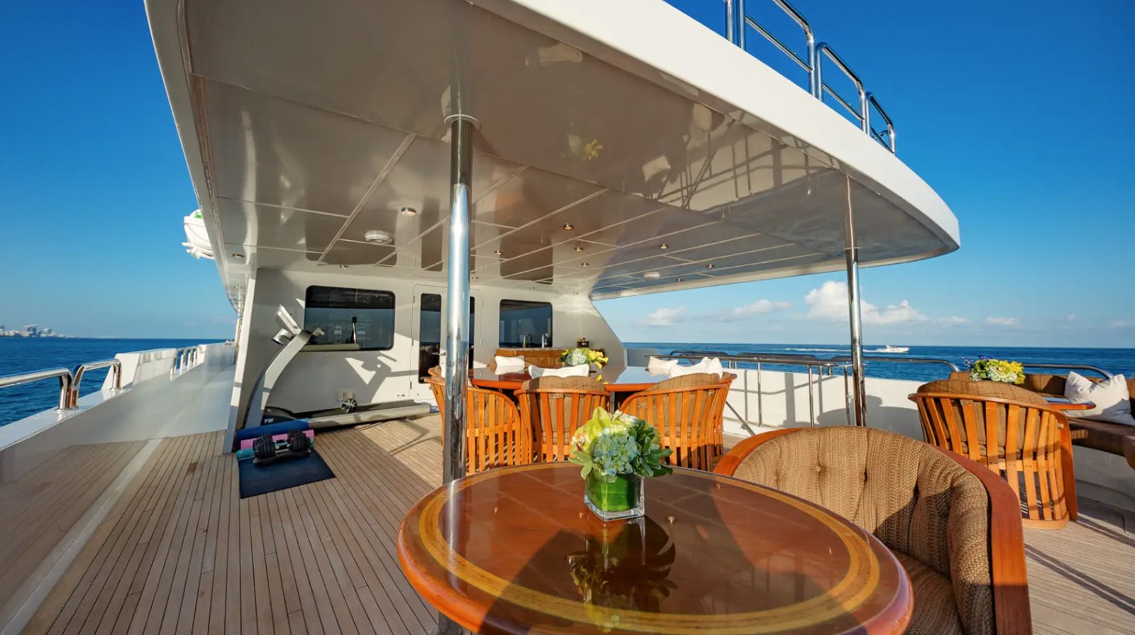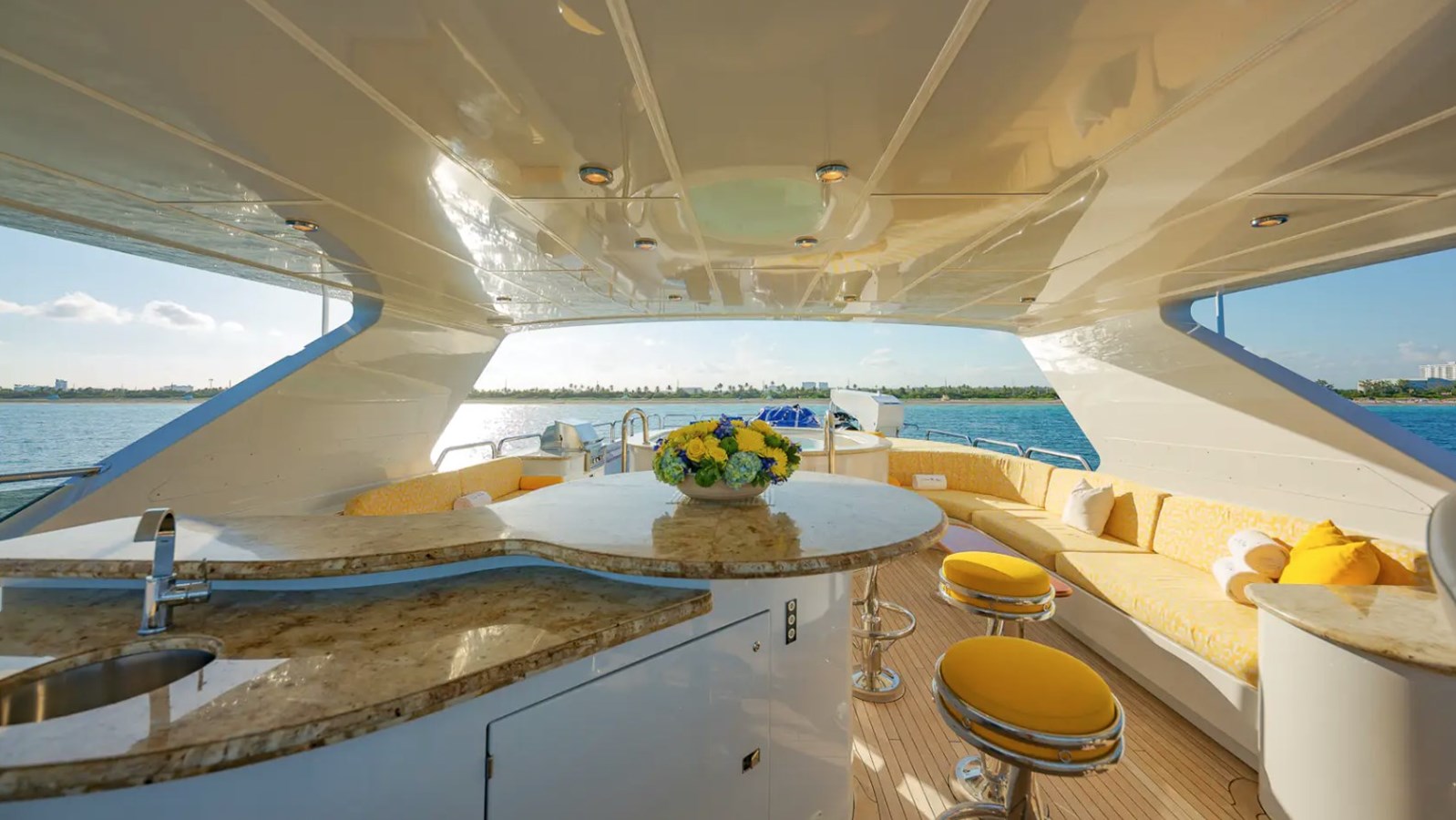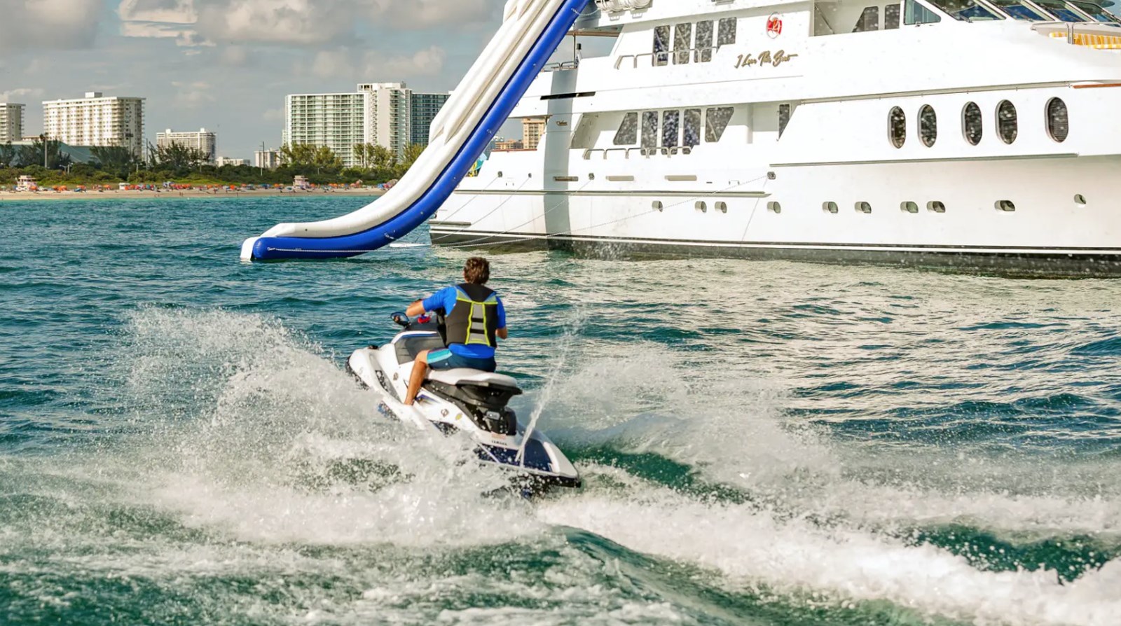 Boasting a plethora of water toys, like a giant slide, this yacht is perfect for family fun on the water. I LOVE THIS BOAT also offers music throughout the yacht, allowing charter guests to move to the beats of their favorite songs no matter where they are on board.