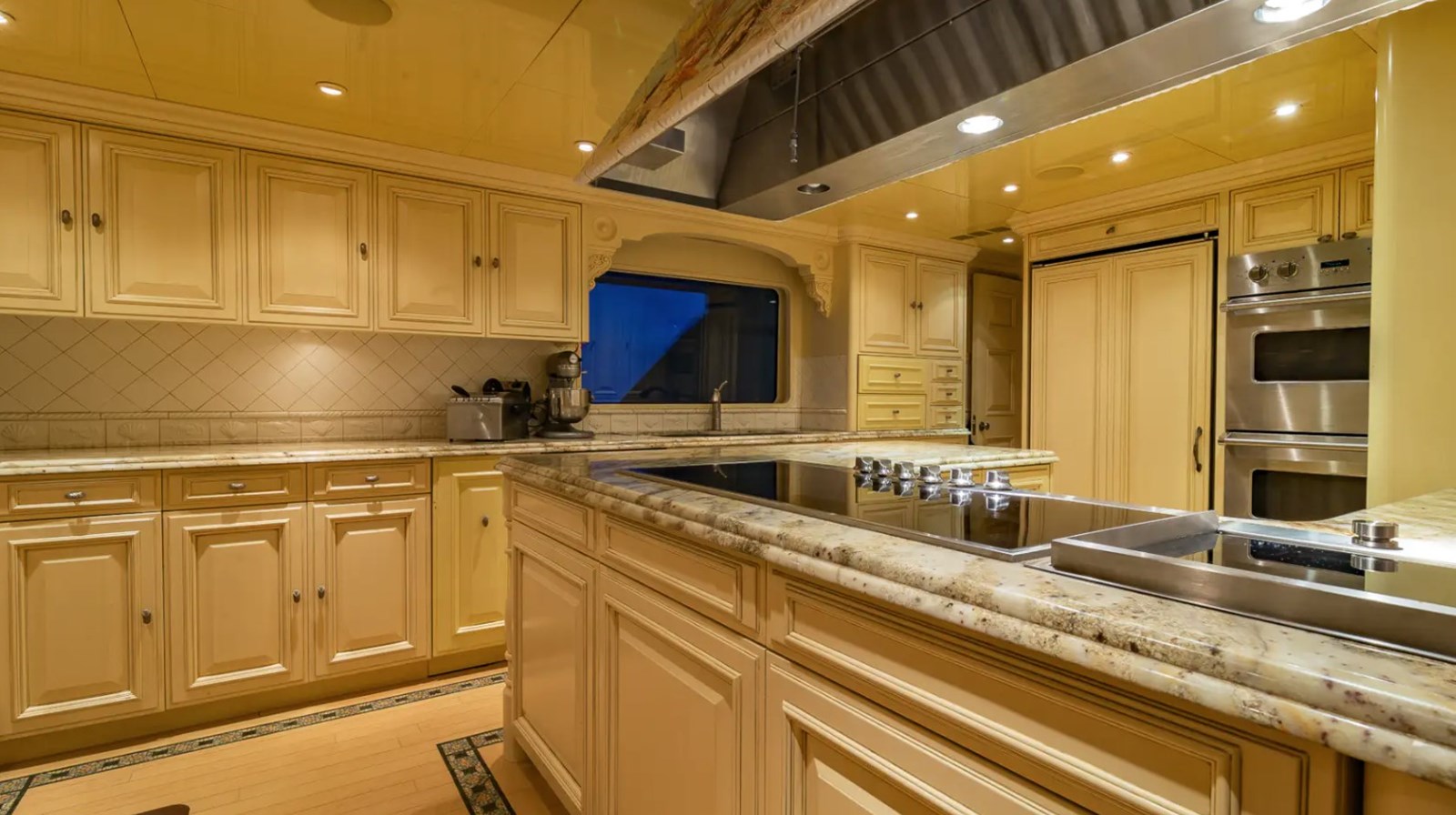 Welcoming up to 10 guests, I LOVE THIS BOAT boats five lusciously appointed staterooms. Her spacious on-deck master suite features a king-size bed, cozy lounge sofa, office and his-and-hers en-suite baths; which are separated by a large walk-in shower with a stunning waterfall feature. Following the spiral stairway to the lower level, you’ll find four additional guest staterooms. These include two queen and two twin staterooms — each with its own en-suite bath, Direct TV and Apple TV. Each stateroom also features Tempur-Pedic mattresses, which offer the best sleep on the water.