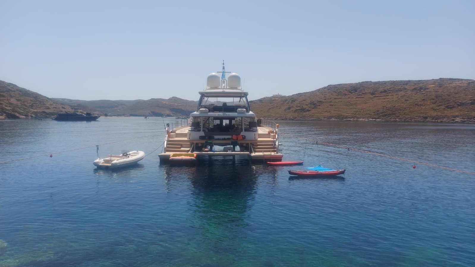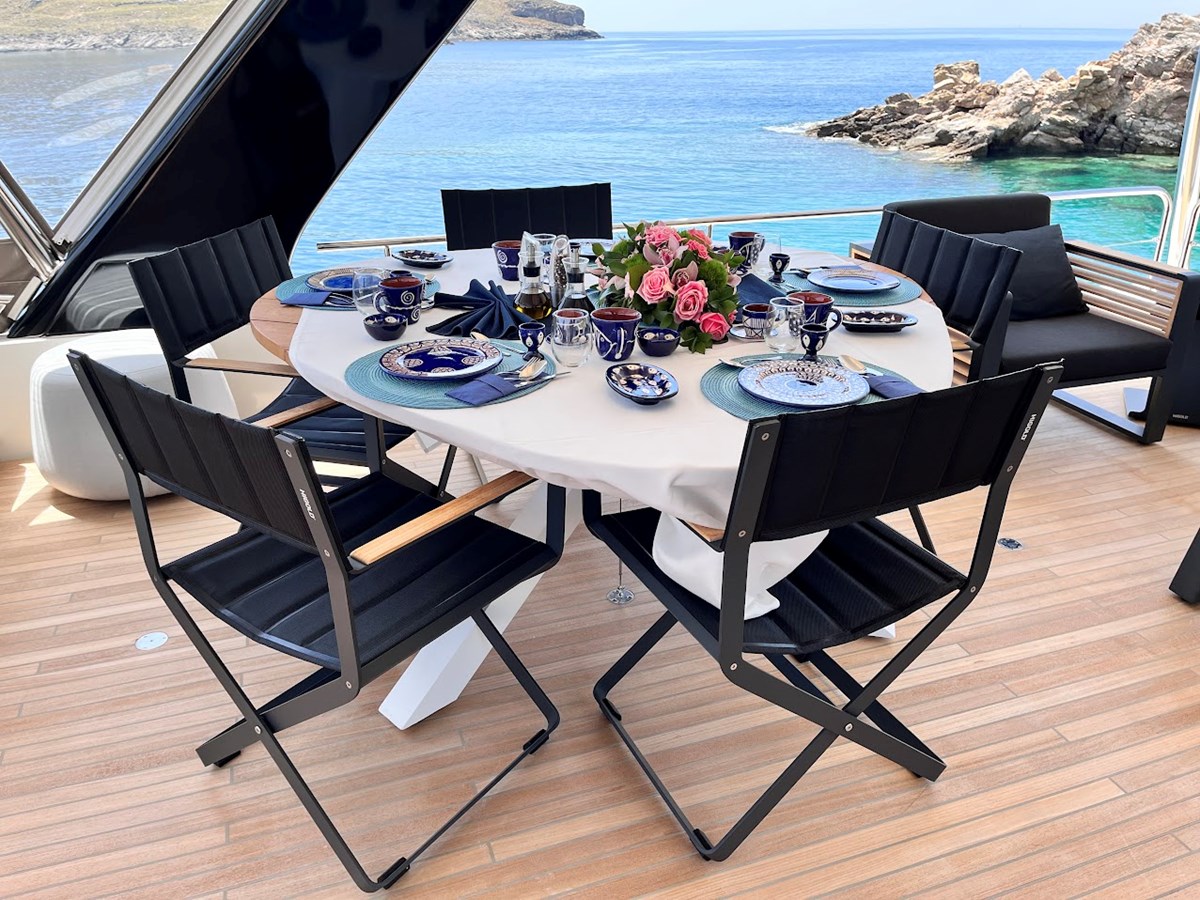 The sundeck can also be shaded and you can just lounge the afternoon away. To the aft of the yacht is her second exterior space which can be used as a formal dining area overlooking the sea.