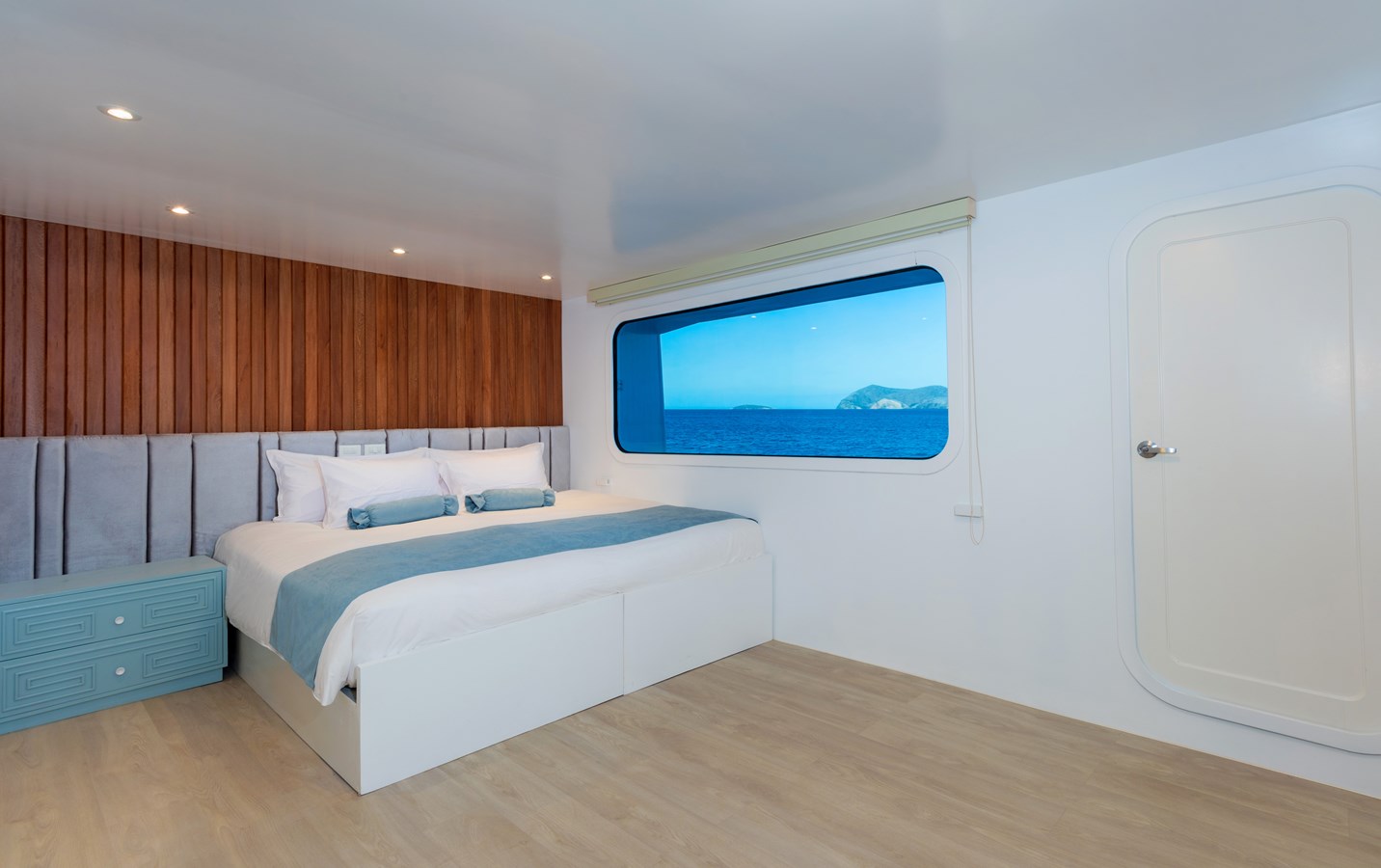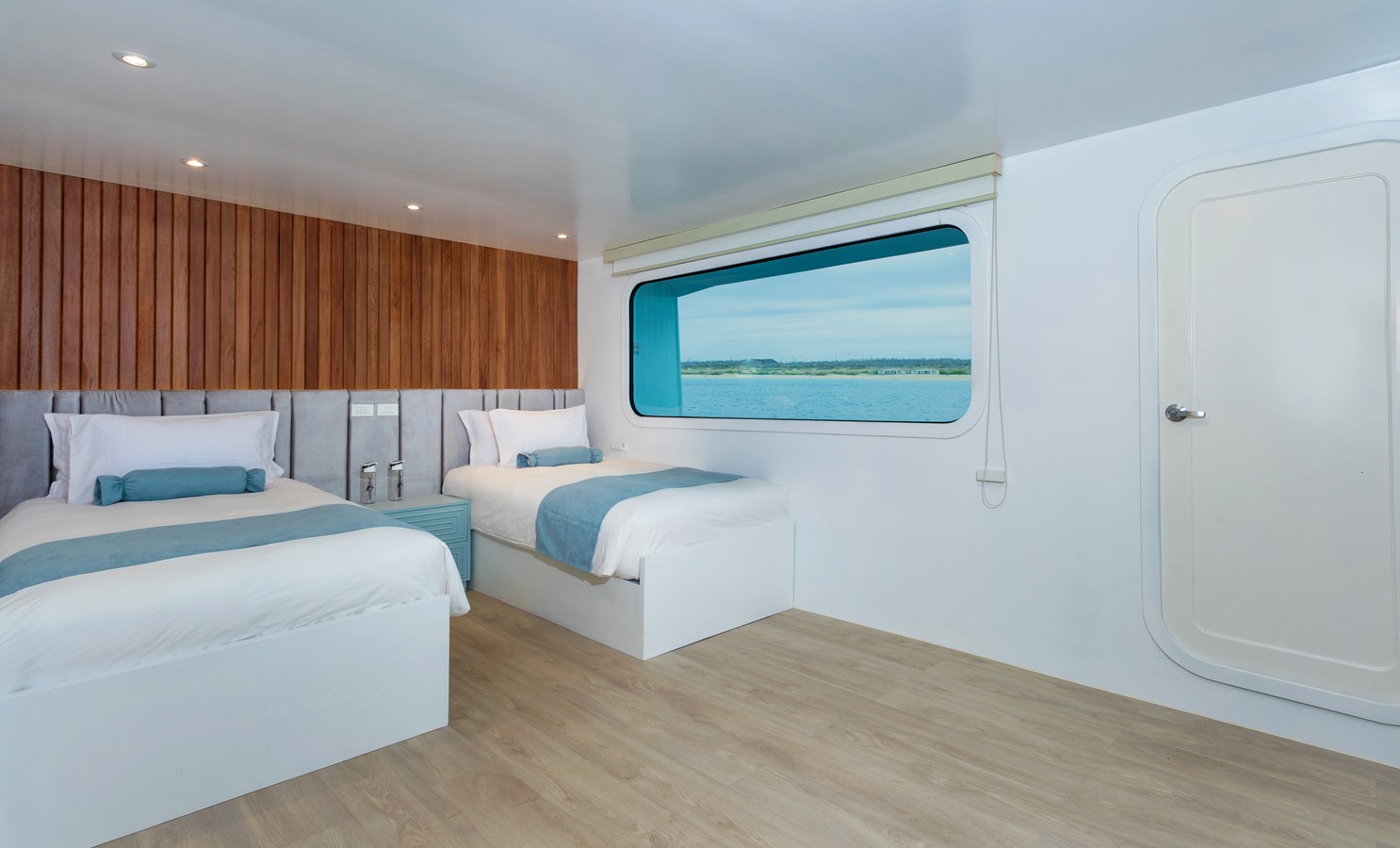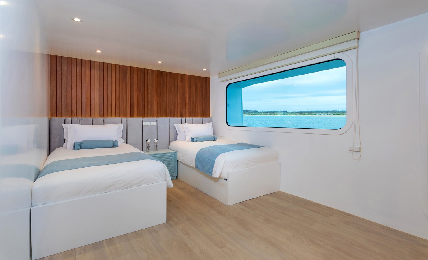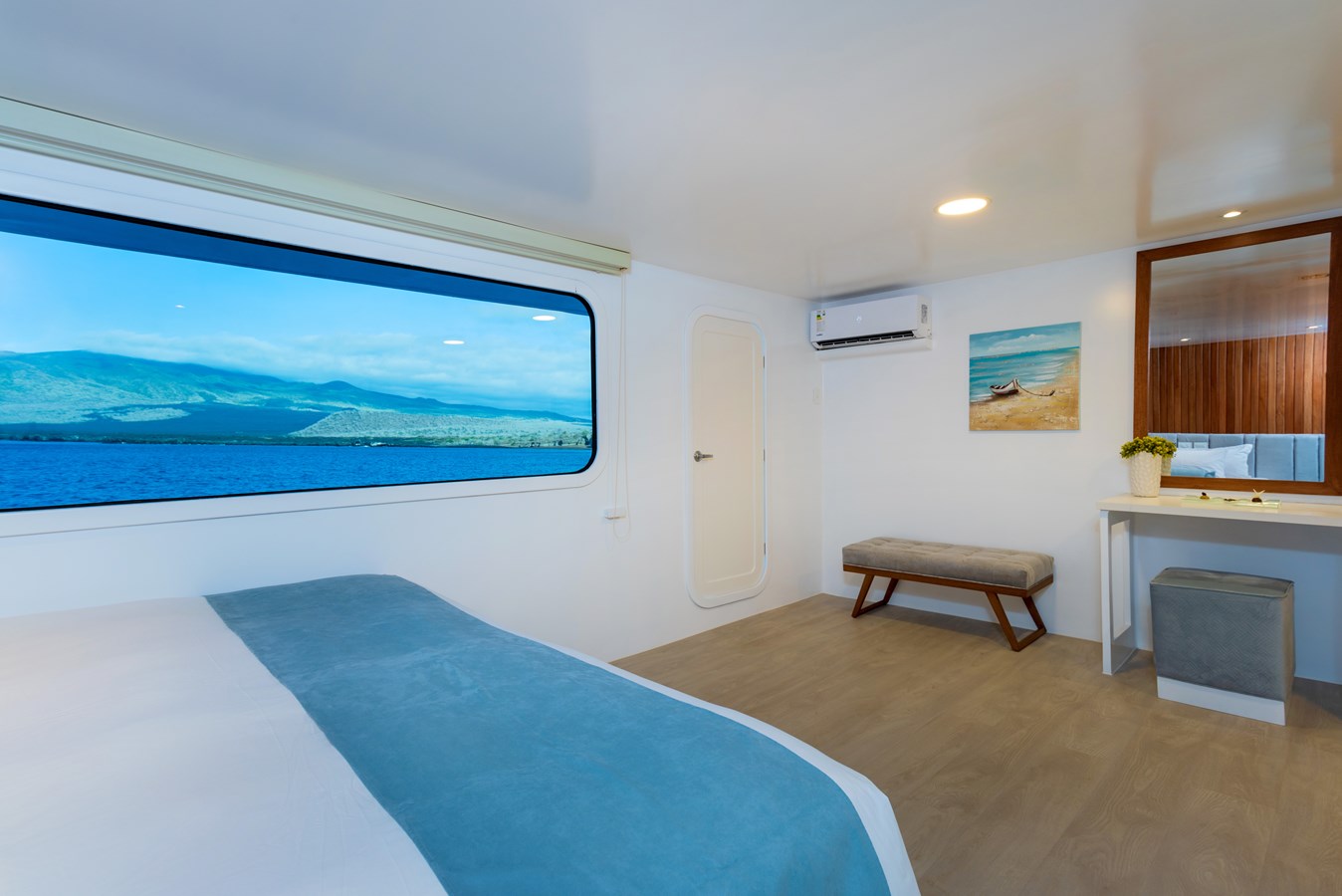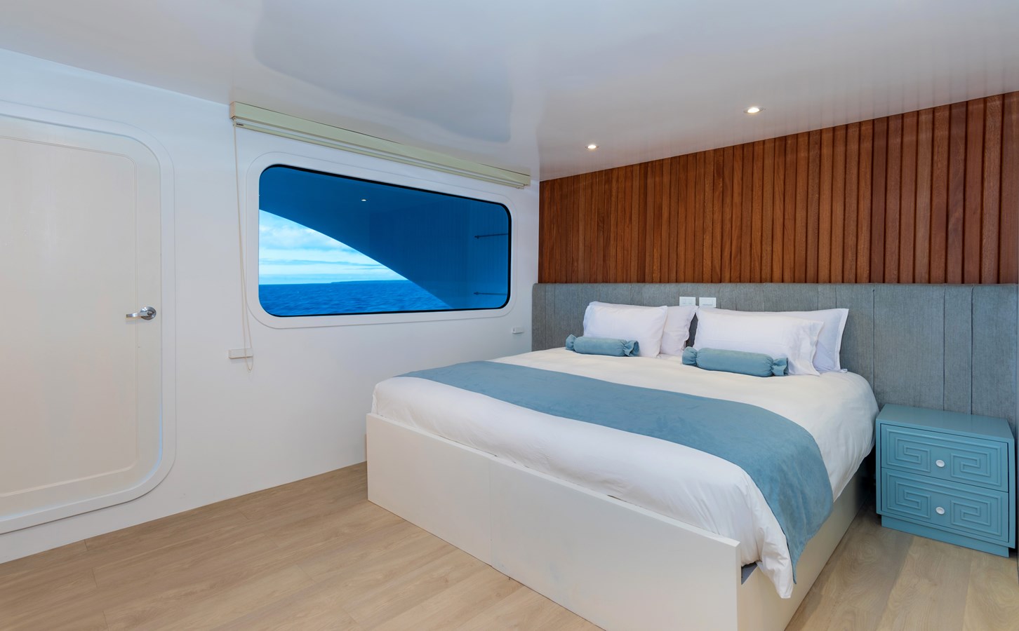 The classic catamaran Ocean Spray offers exceptional performance and comfort for cruising in the Galapagos. Its elegant design includes a spacious shaded sundeck with a Jacuzzi and sun chairs, providing guests with the perfect place to relax while on board. Each of the spacious cabins features a private balcony, enhancing the comfort and luxury of your Galapagos cruise experience. Ocean Spray’s impressive speed, top-notch guides, and well-planned itineraries make it an ideal choice for exploring the Galapagos in style. Kayaks and paddleboards are also available for guests to use, adding to the adventure.