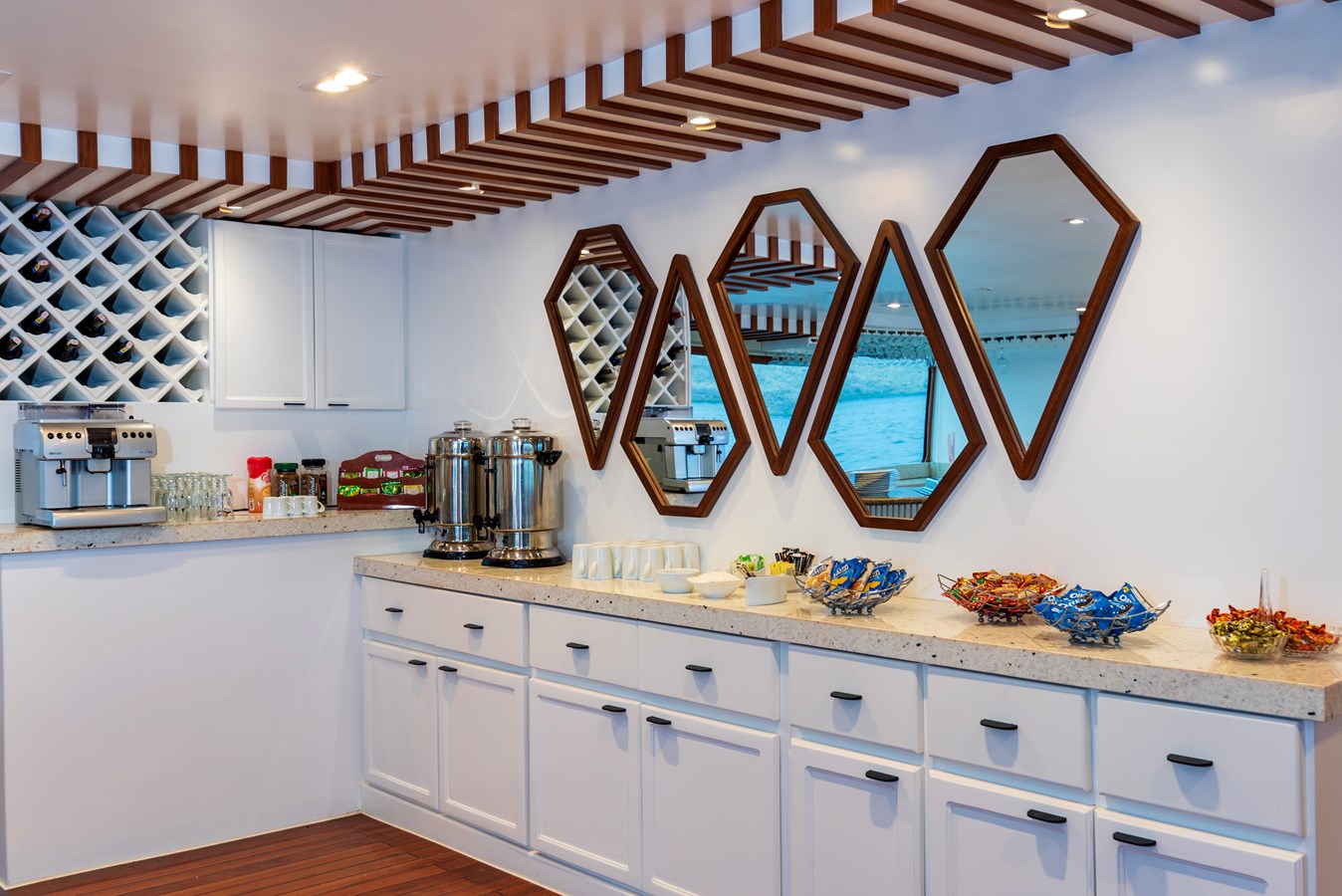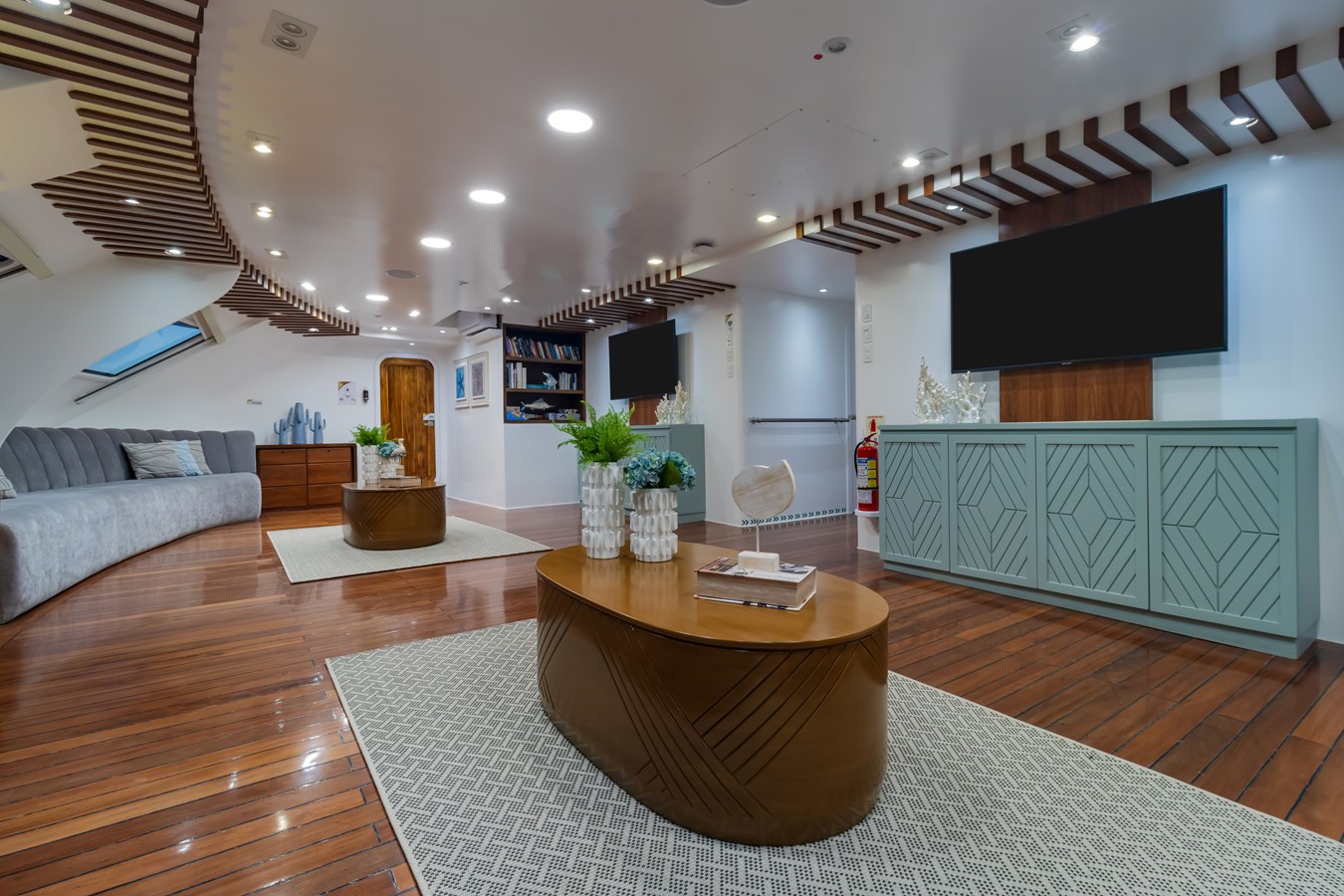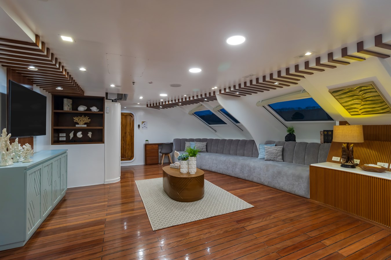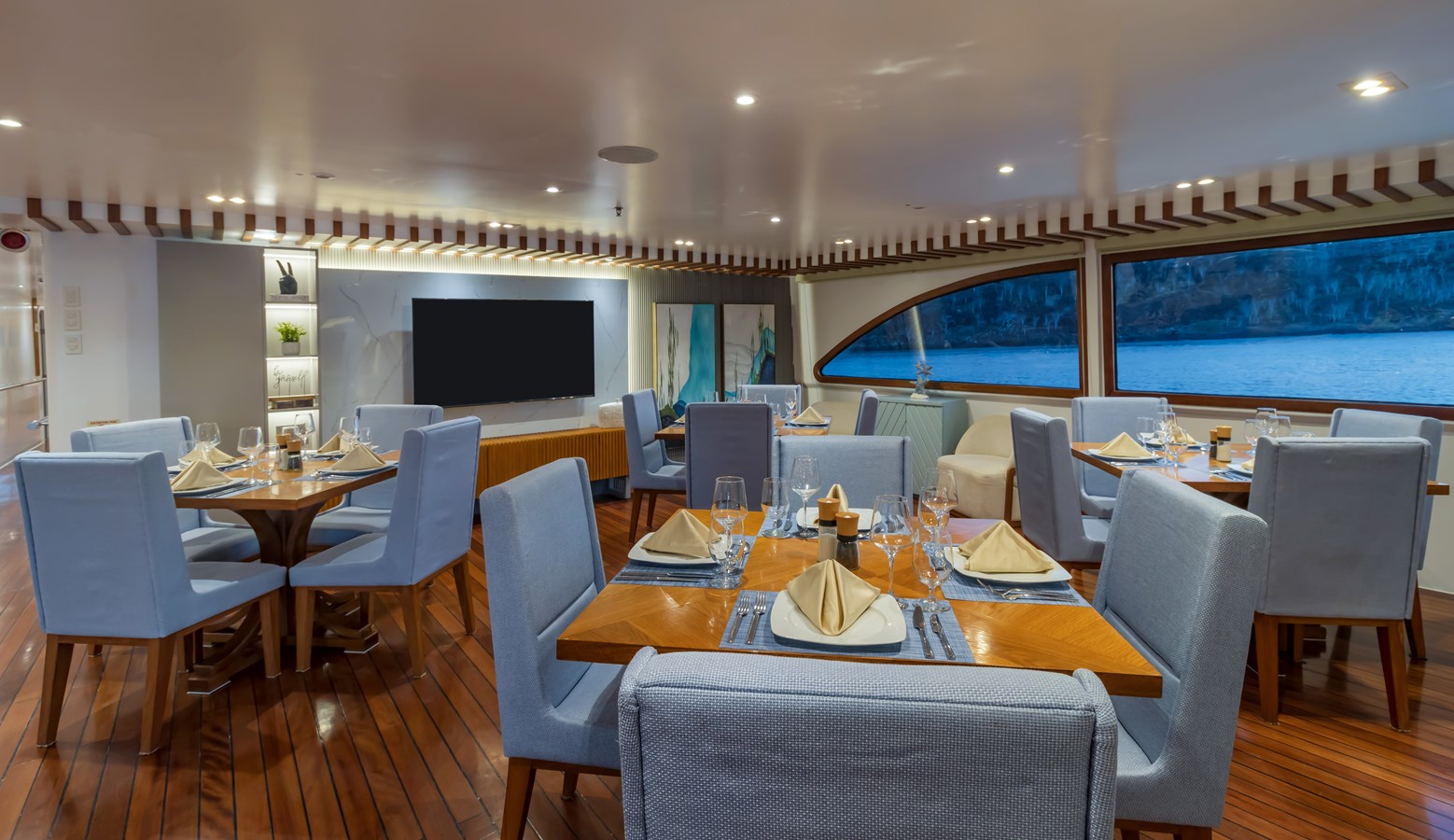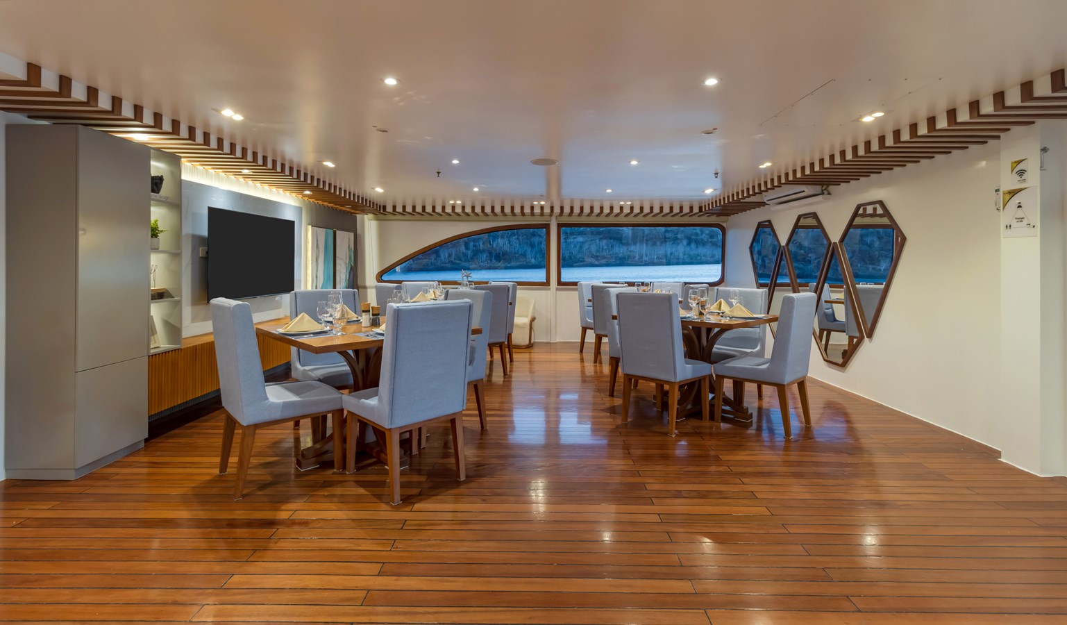 The classic catamaran Ocean Spray offers exceptional performance and comfort for cruising in the Galapagos. Its elegant design includes a spacious shaded sundeck with a Jacuzzi and sun chairs, providing guests with the perfect place to relax while on board. Each of the spacious cabins features a private balcony, enhancing the comfort and luxury of your Galapagos cruise experience. Ocean Spray’s impressive speed, top-notch guides, and well-planned itineraries make it an ideal choice for exploring the Galapagos in style. Kayaks and paddleboards are also available for guests to use, adding to the adventure.