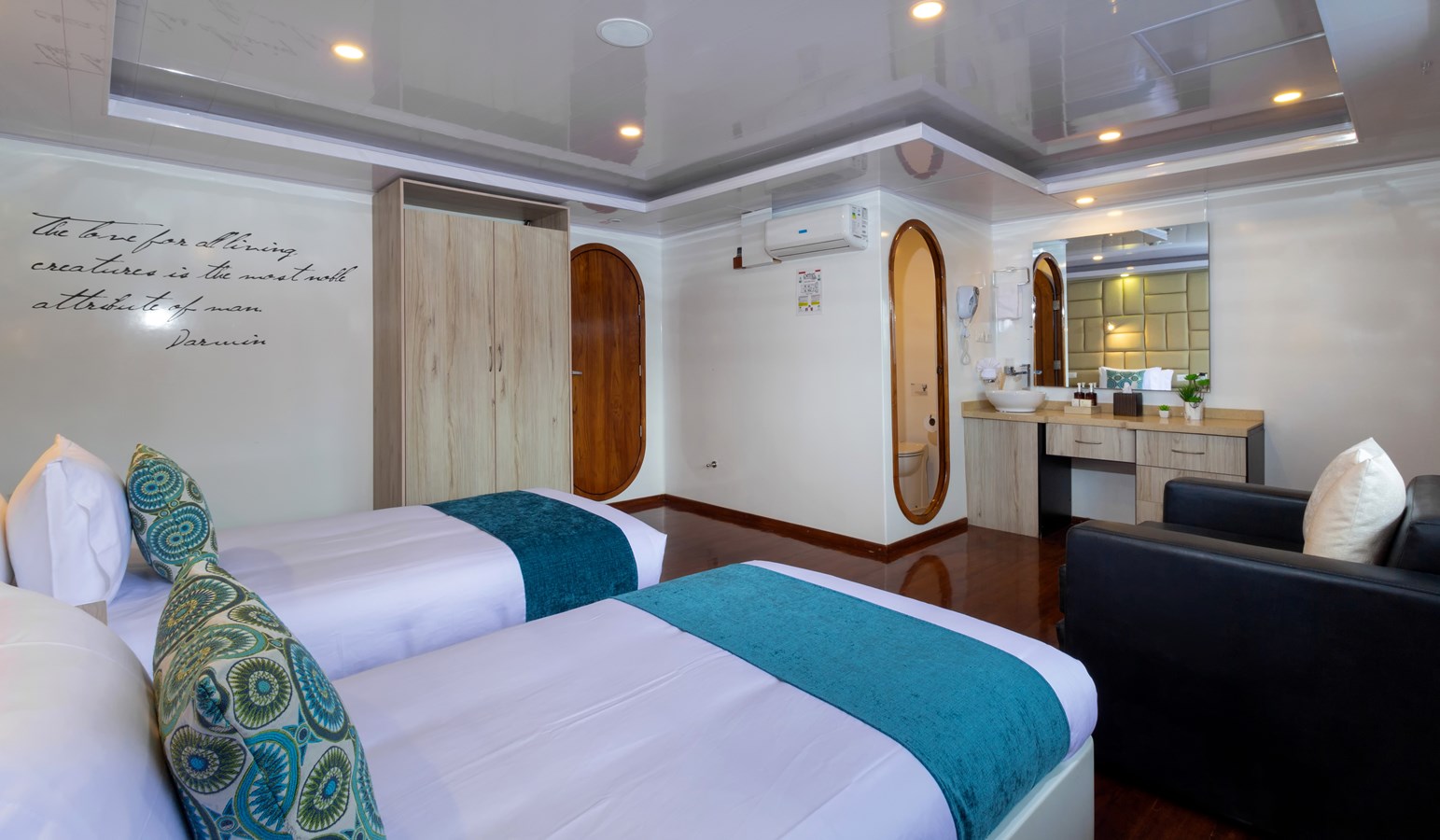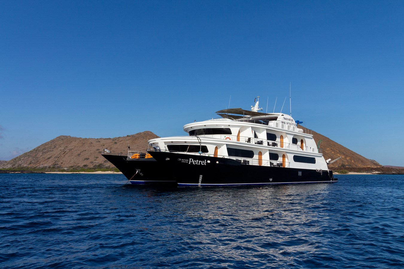 The M/C Petrel effortlessly glides across the sparkling waves of the Galapagos Islands, much like its namesake. This state-of-the-art catamaran, custom-built for the unique sailing conditions of the Galapagos, navigates the archipelago smoothly and quietly. Accommodating up to 16 passengers, the M/C Petrel features spacious social areas and observation decks, allowing guests to relax in comfort and style. The vessel offers 9 generously sized staterooms, each equipped with a private en-suite bathroom and luxurious king-size or twin beds, ensuring that every guest enjoys a memorable experience in one of the world’s most pristine environments.