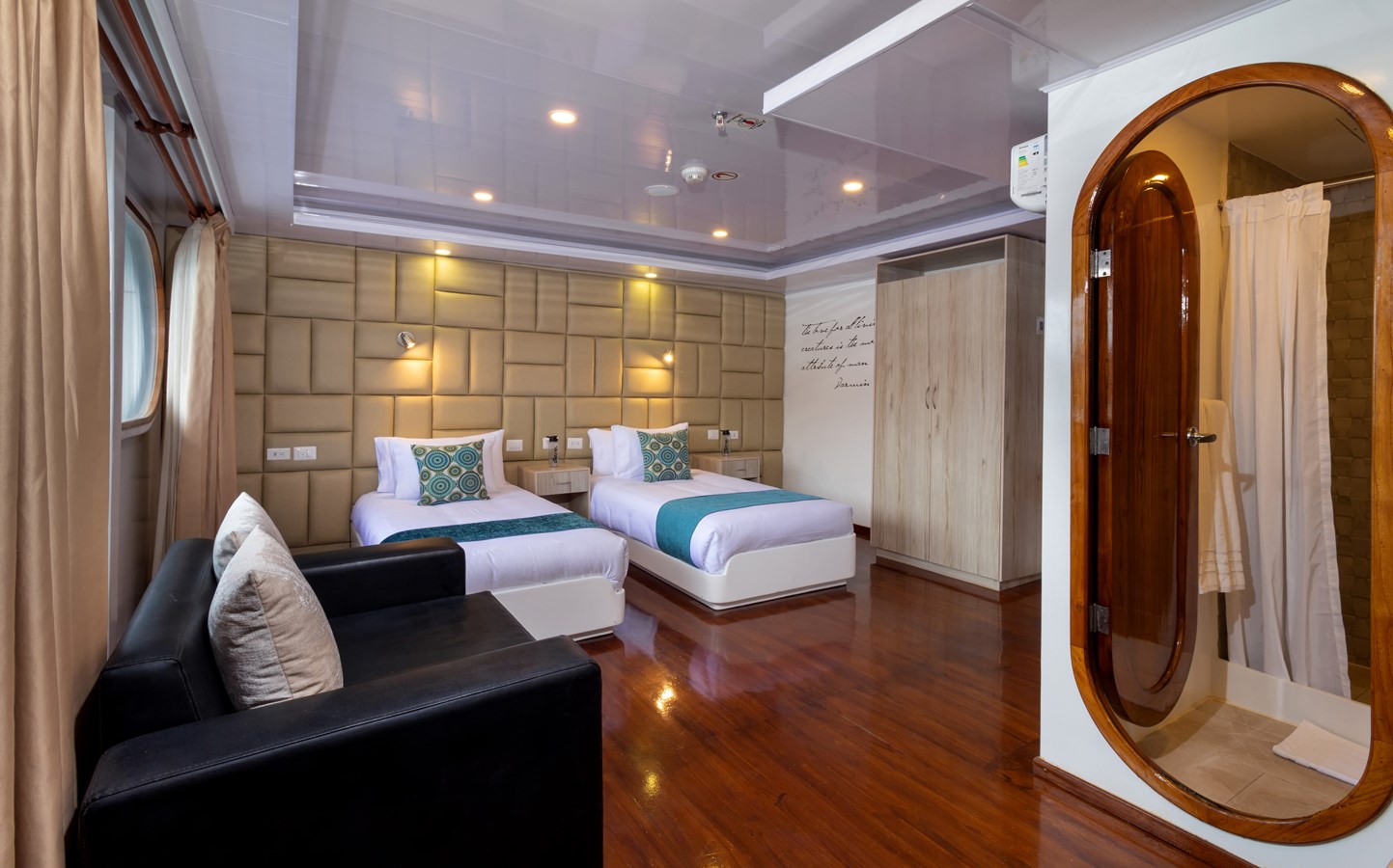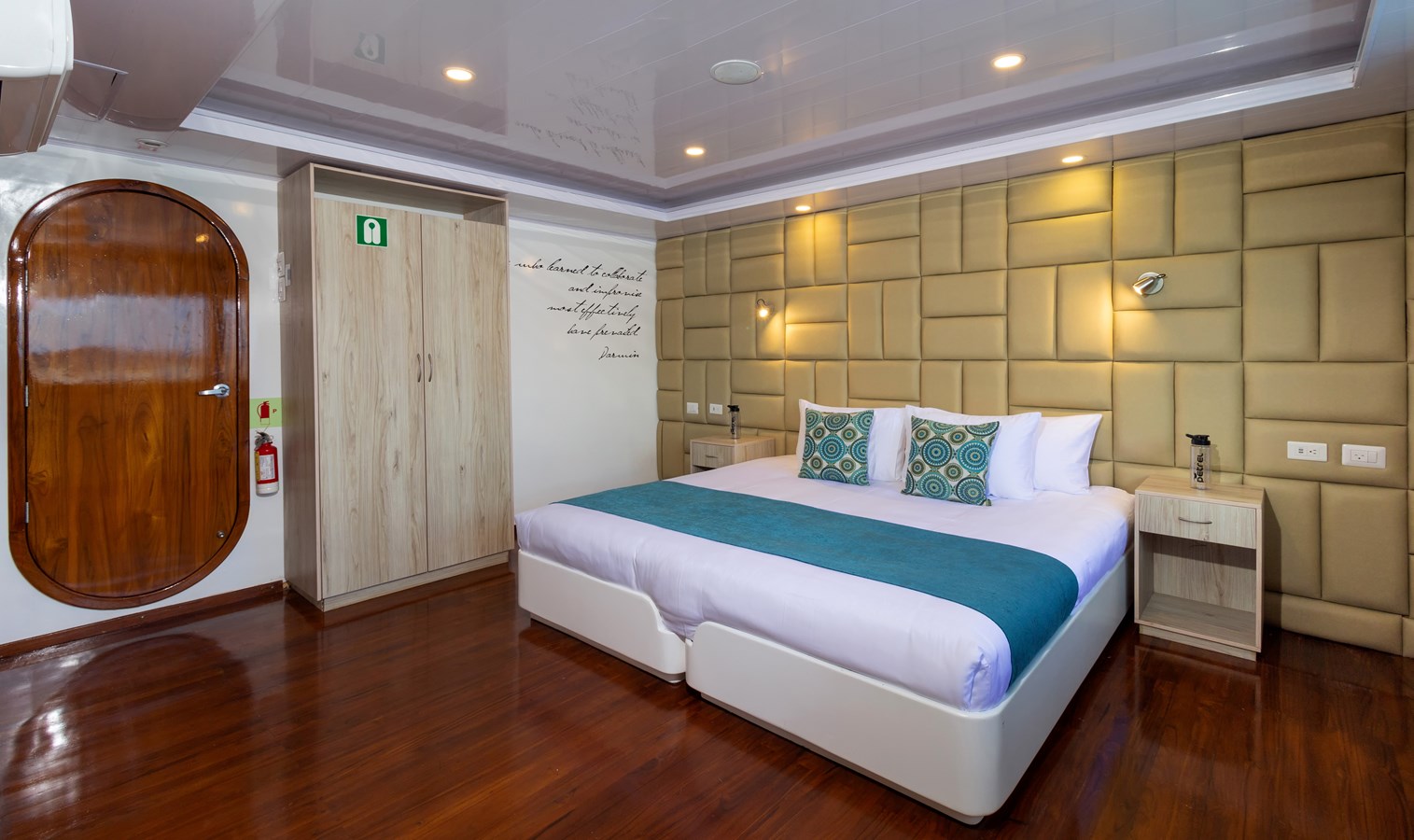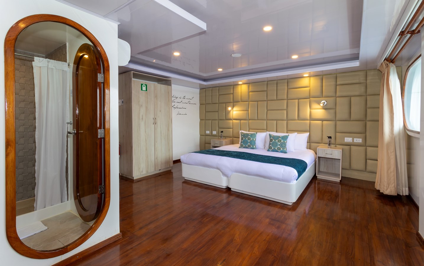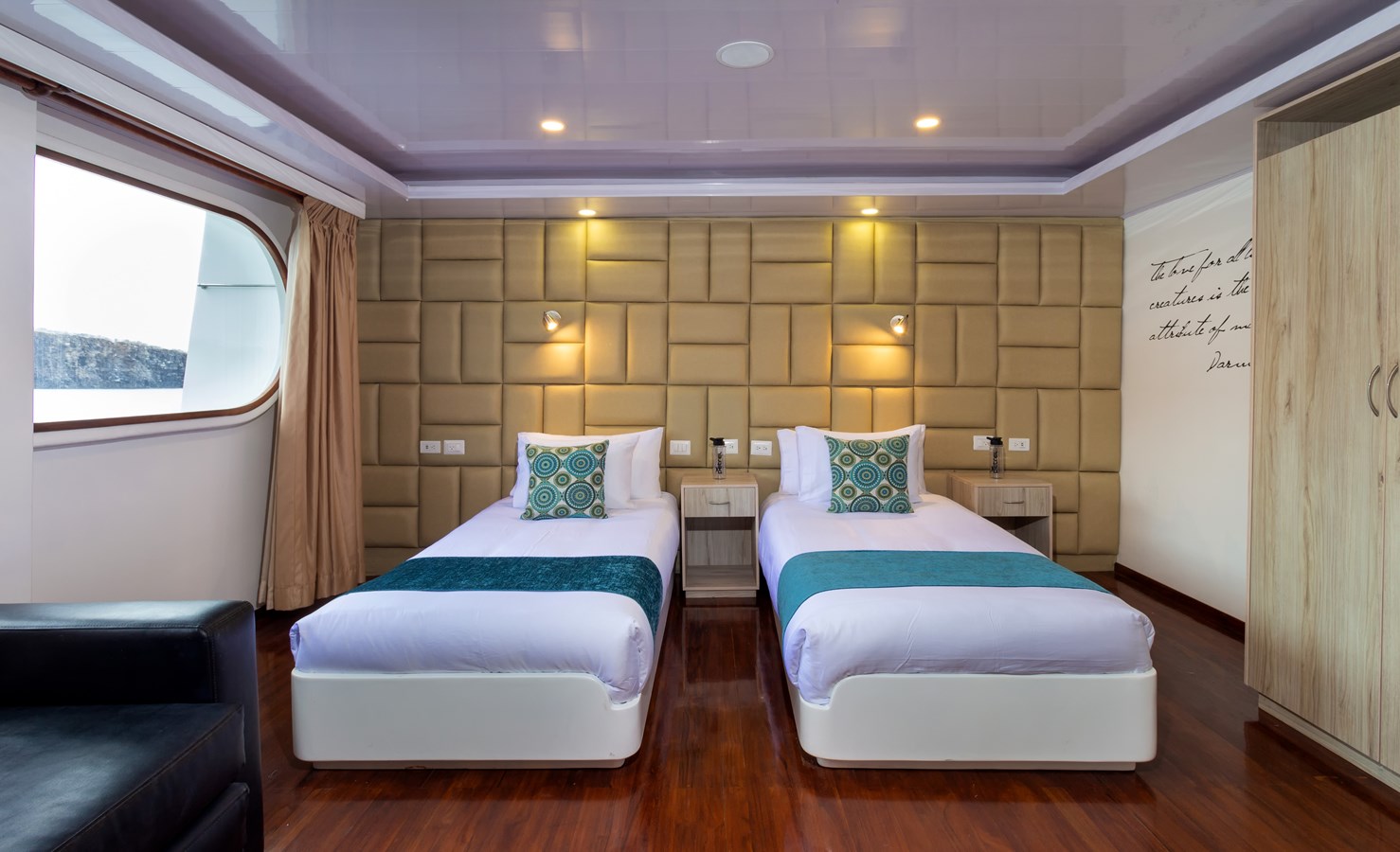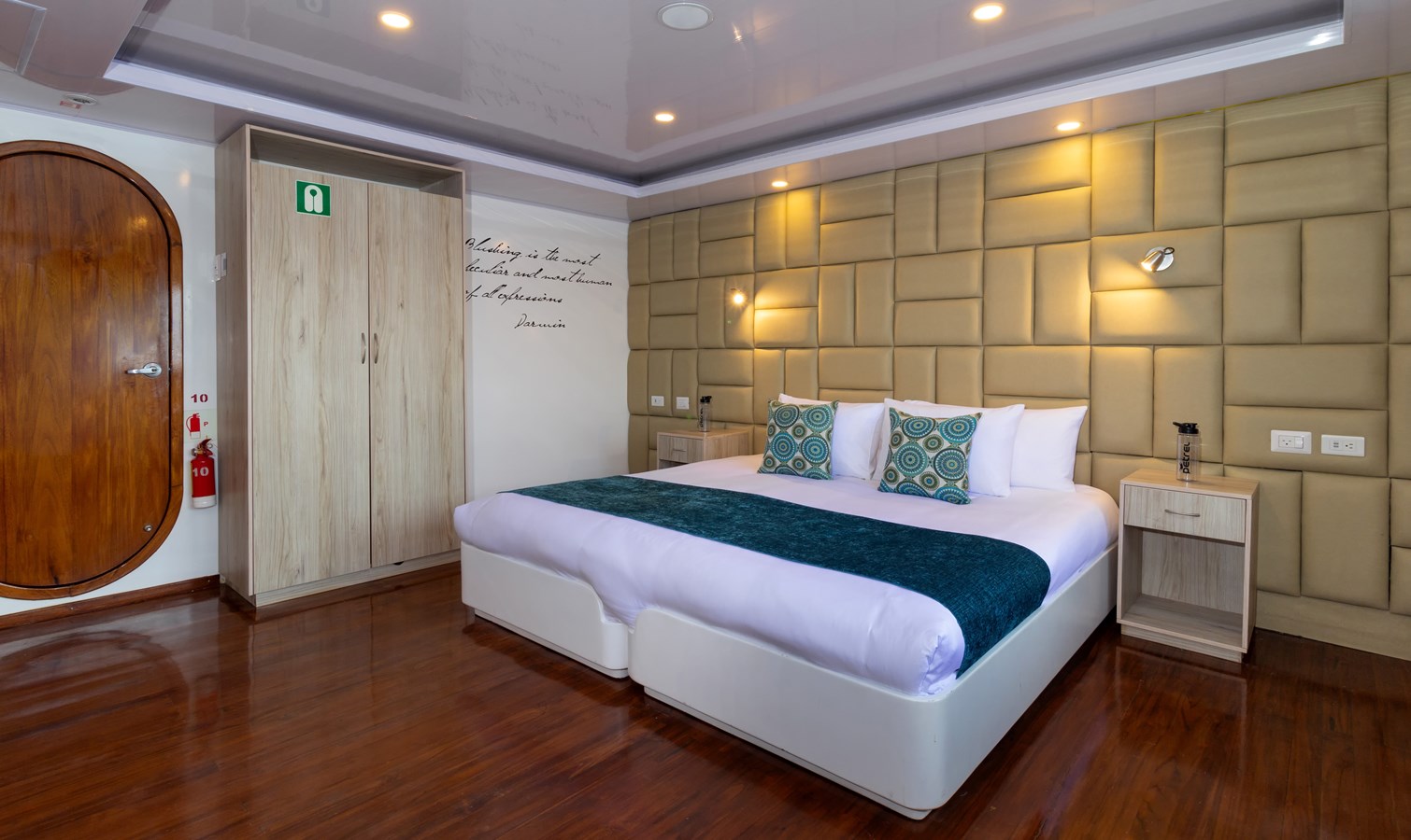 Upper Deck: On the Upper Deck, there are 4 spacious staterooms, each with a private balcony and large windows, as well as a premium single cabin for solo travelers. The bridge of the M/C Petrel is also on this deck, and passengers can visit it and receive an explanation on the cutting-edge technology used for sailing by the Captain or First Officer. There is also a wildlife observation platform where there are comfortable sofas for watching the many wildlife species in the air and in the waters surrounding the catamaran. Lucky passengers may even spot dolphins, rays, sharks, and whales in the crystalline Galapagos waters!