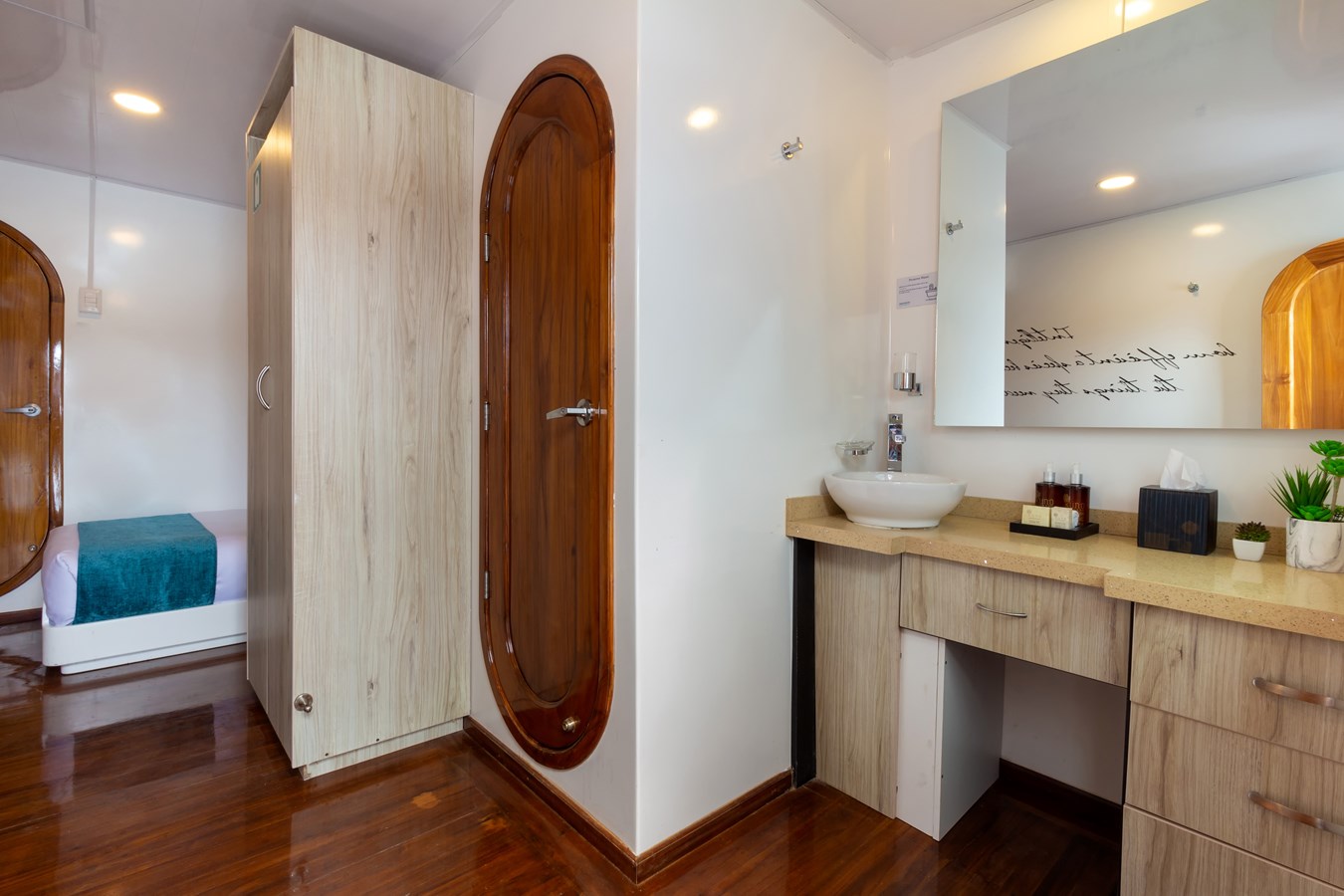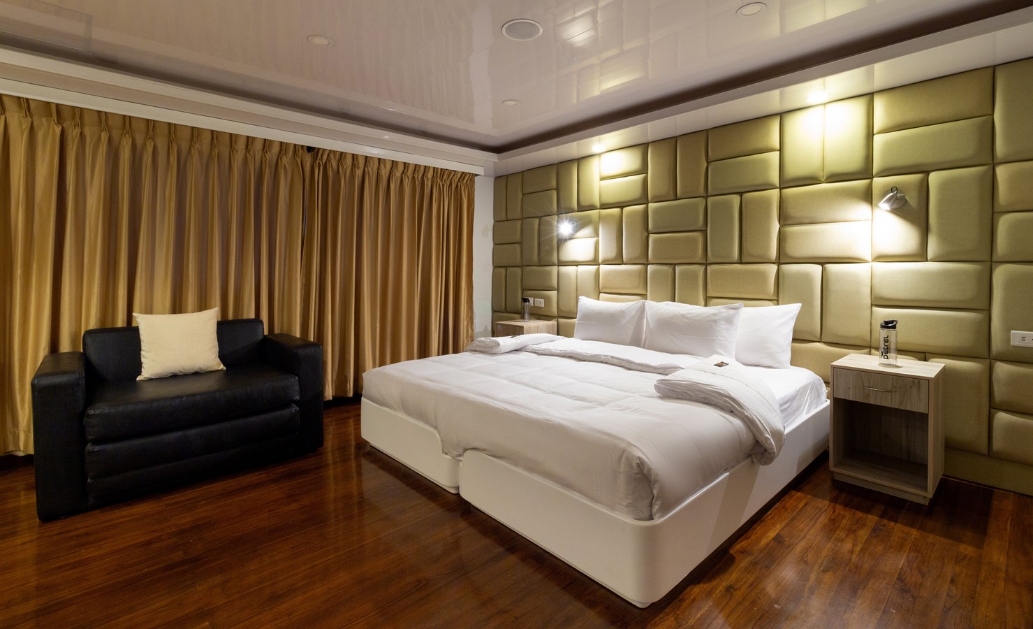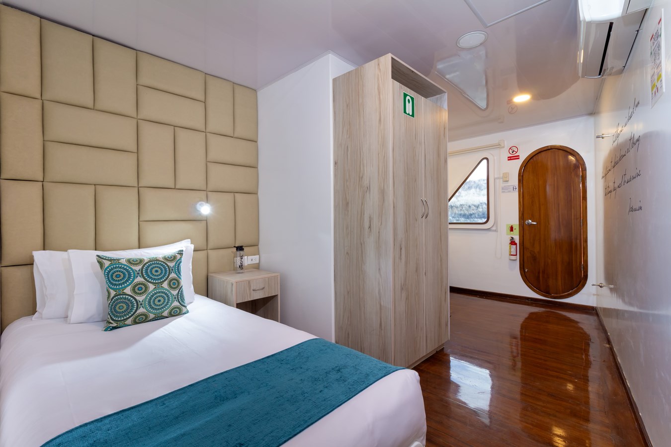 Upper Deck: The Upper Deck features 4 spacious staterooms, each with a private balcony and large windows. There is also a premium single cabin for solo travelers. Passengers can visit the bridge of the M/C Petrel to learn about the advanced sailing technology from the Captain or First Officer. Additionally, the deck includes a wildlife observation platform with comfortable sofas, providing a great spot for viewing the diverse wildlife, including dolphins, rays, sharks, and whales.