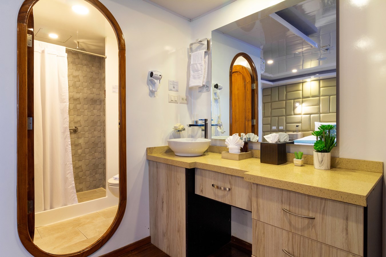 Onboard, expert chefs and a highly skilled kitchen staff create a culinary journey with exquisite international dishes and delectable Ecuadorian specialties for every meal. The service on the M/C Petrel is personalized to meet the diverse tastes and preferences of each guest, showcasing a variety of delicious flavors. Golden Galapagos is known for its tailored cruises, emphasizing the incredible endemic wildlife, breathtaking island landscapes, and vibrant marine life while providing unmatched comfort aboard this luxury catamaran.