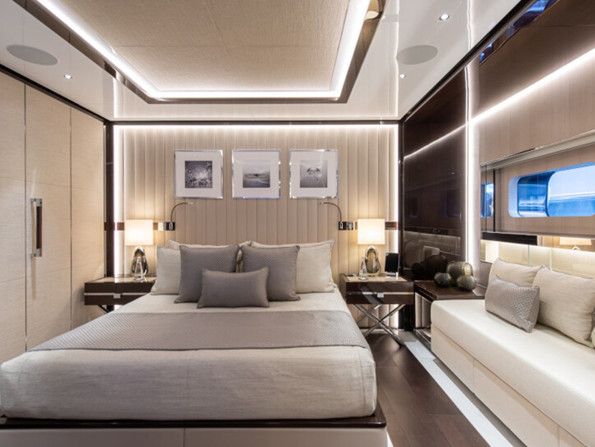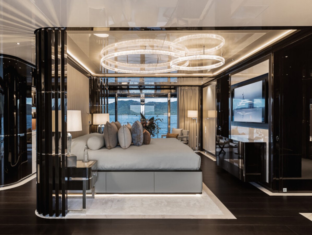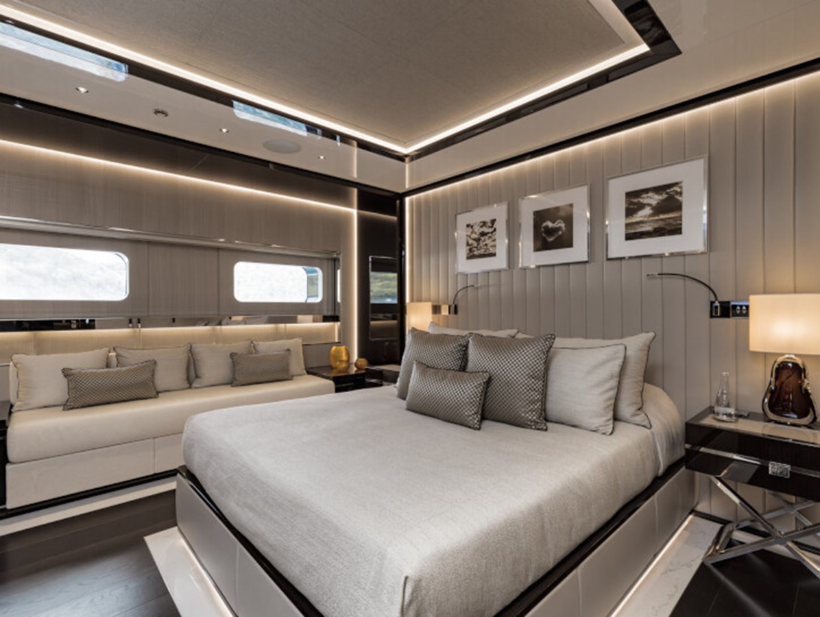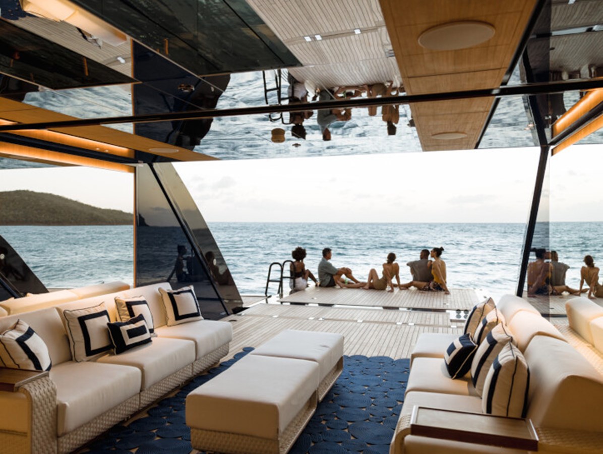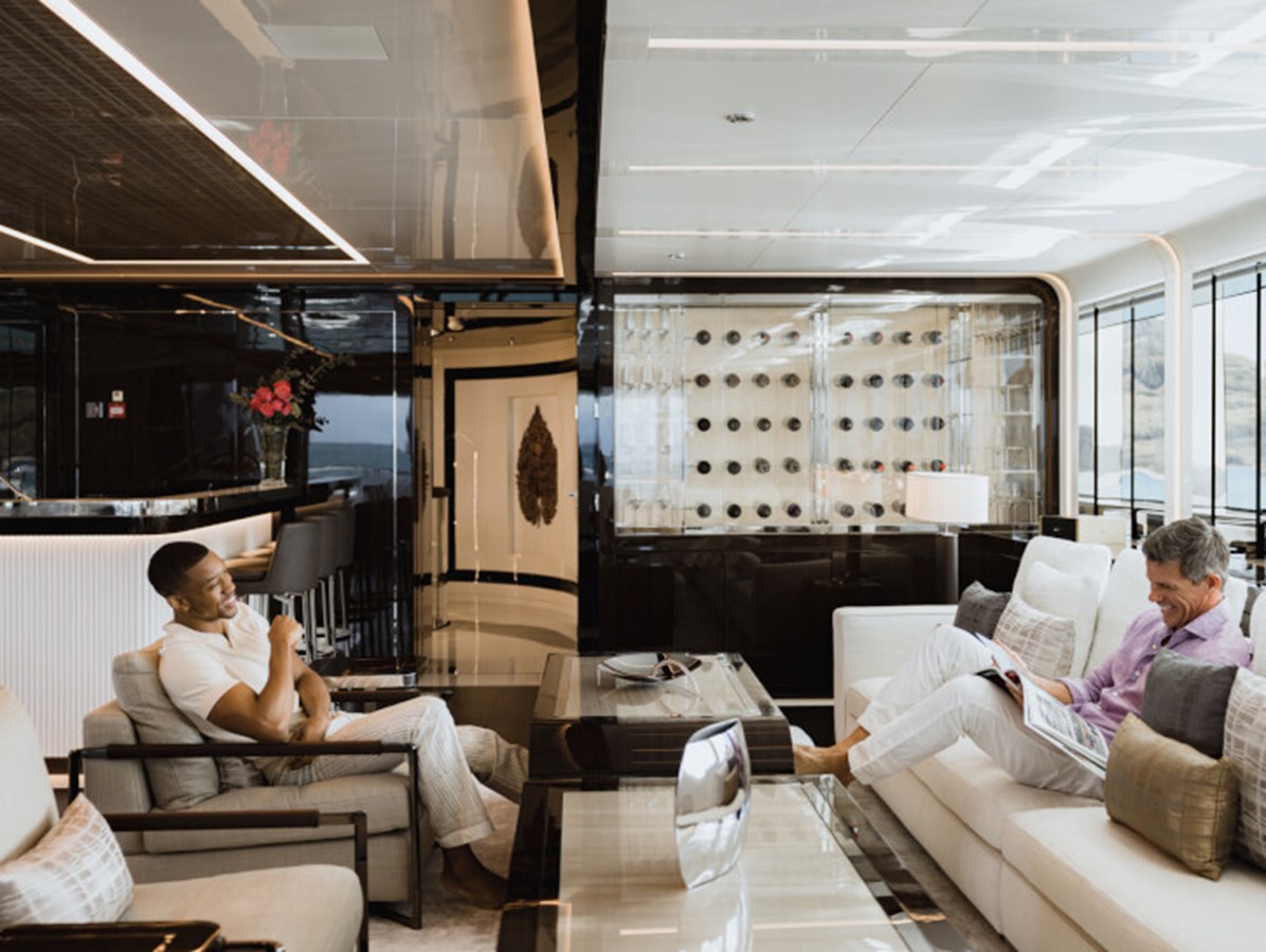 RESILIENCE can accommodate 12 guests across seven cabins, including a full-beam master suite on the main deck with fold-down terraces, his and her bathrooms and an office, which can convert to a single cabin, as required.
