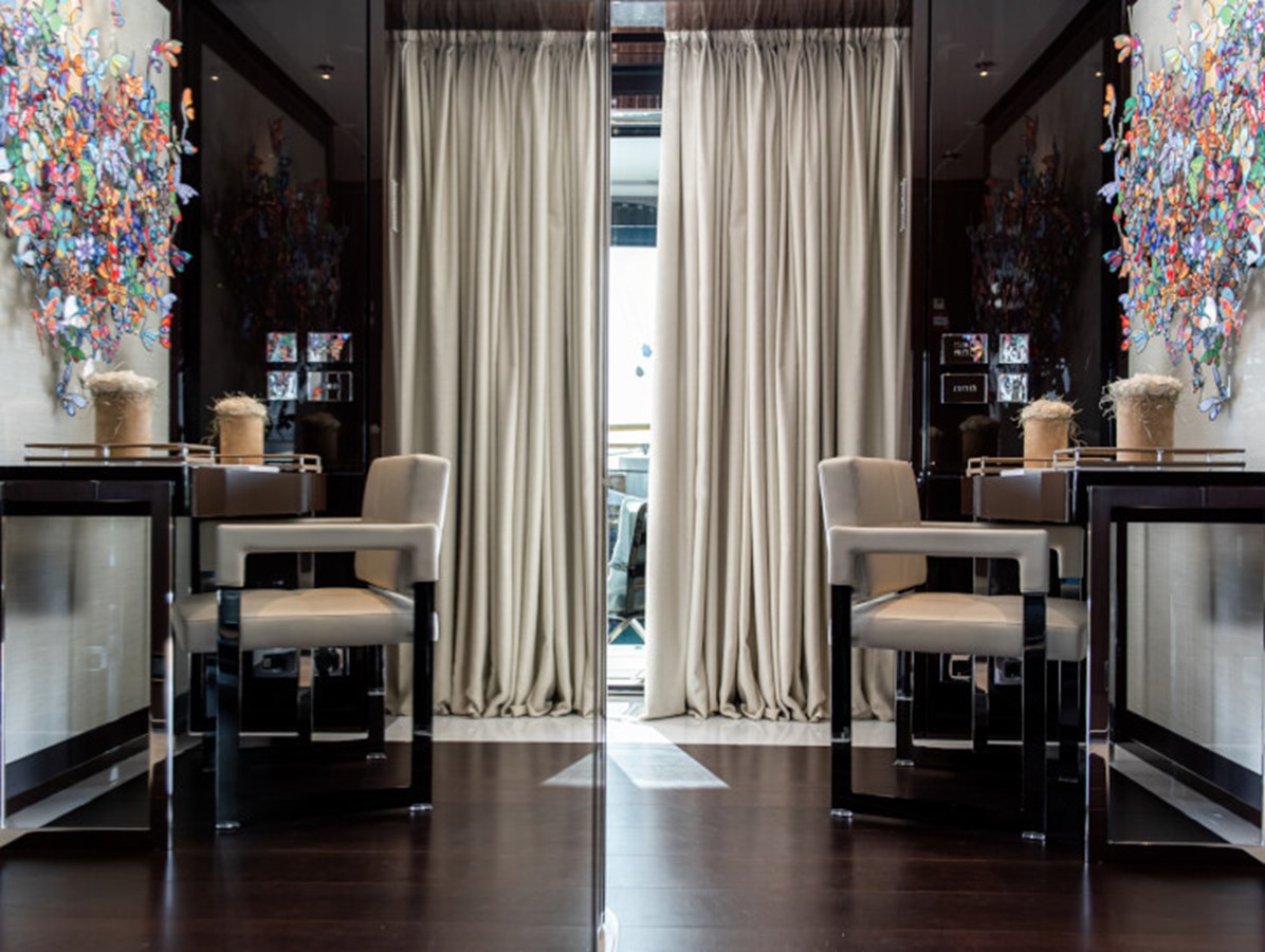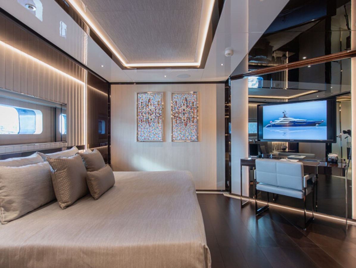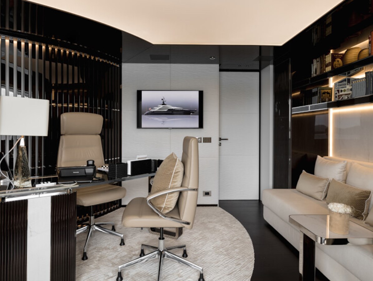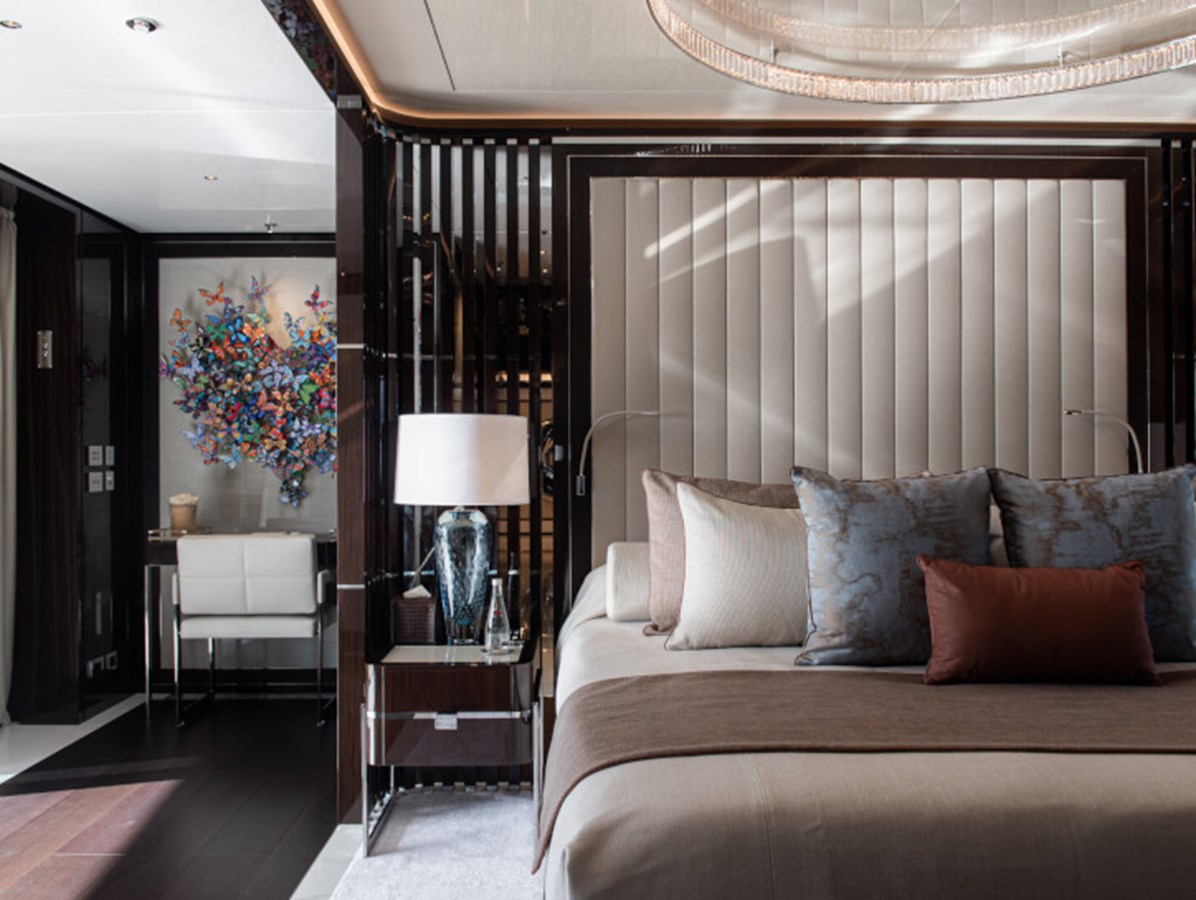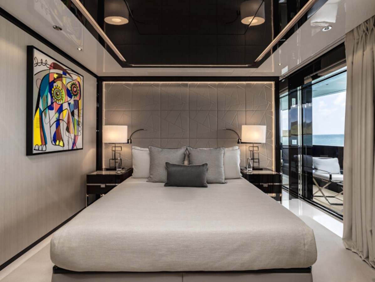 RESILIENCE can accommodate 12 guests across seven cabins, including a full-beam master suite on the main deck with fold-down terraces, his and her bathrooms and an office, which can convert to a single cabin, as required.