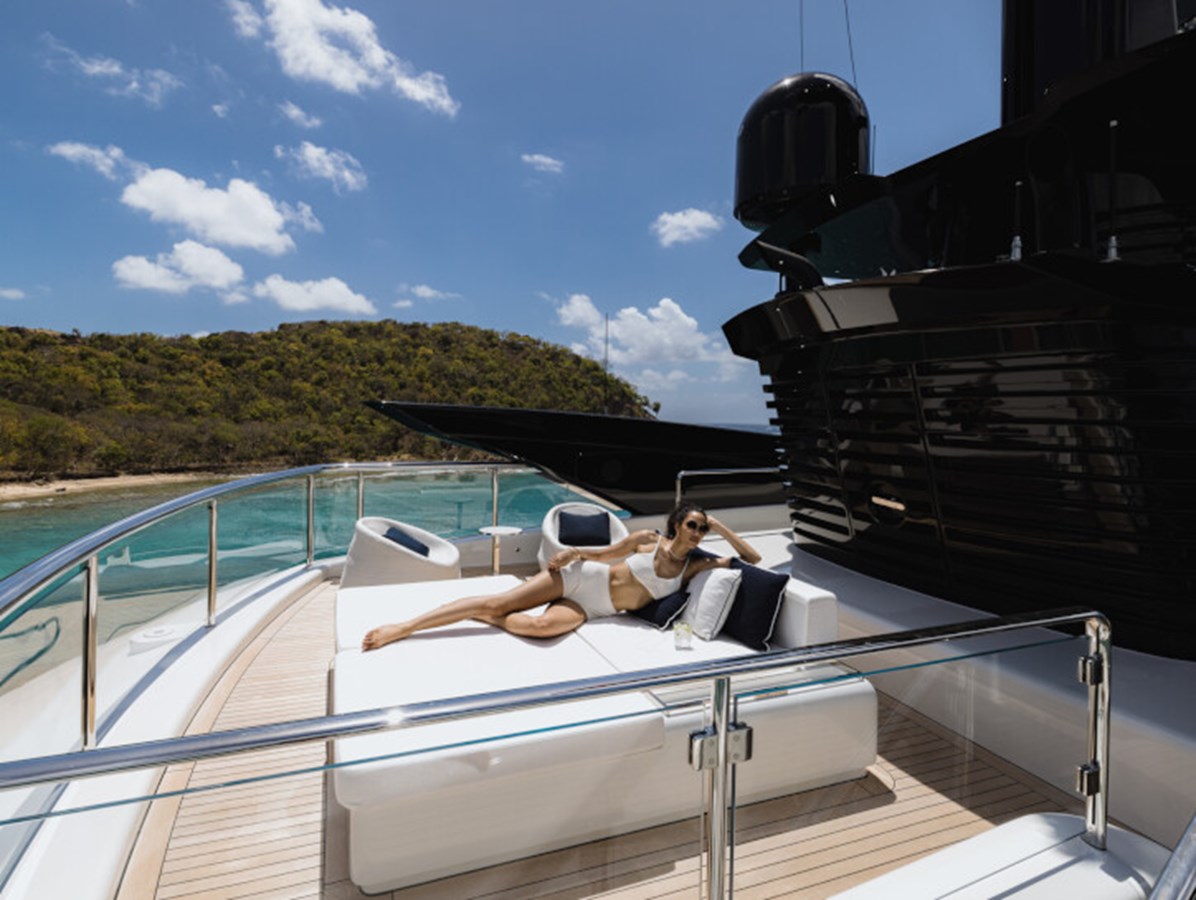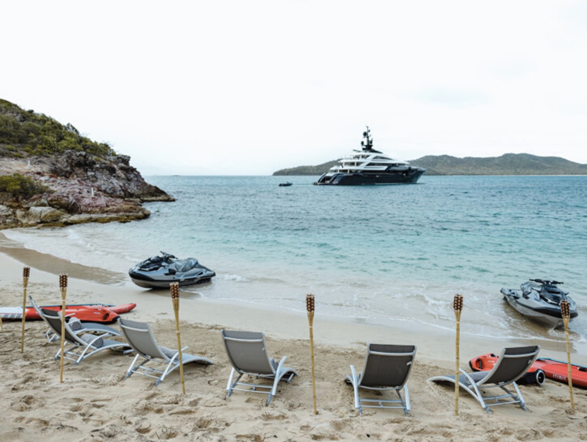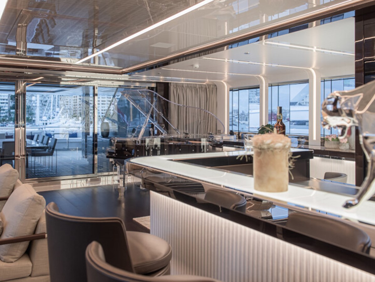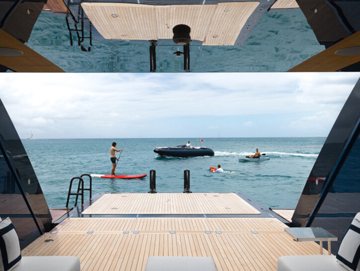 This exquisite yacht, with a classic profile and midnight blue hull, comes with a raft of amenities that will keep even the most demanding of guests satisfied, including a pool and a jacuzzi, a vast beach club and a cinema under the stars.