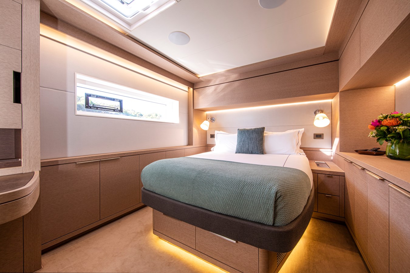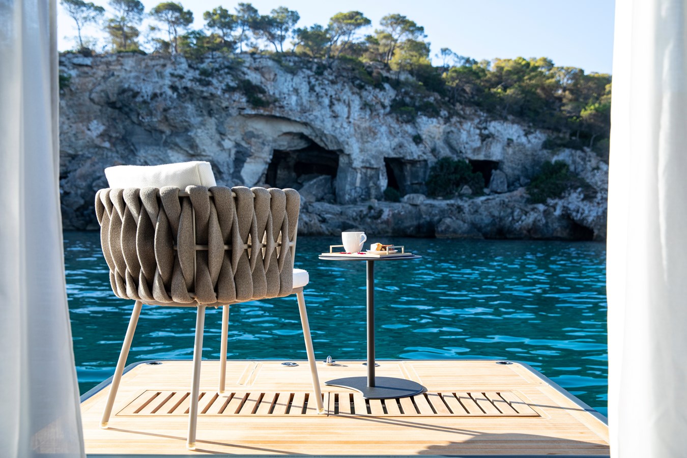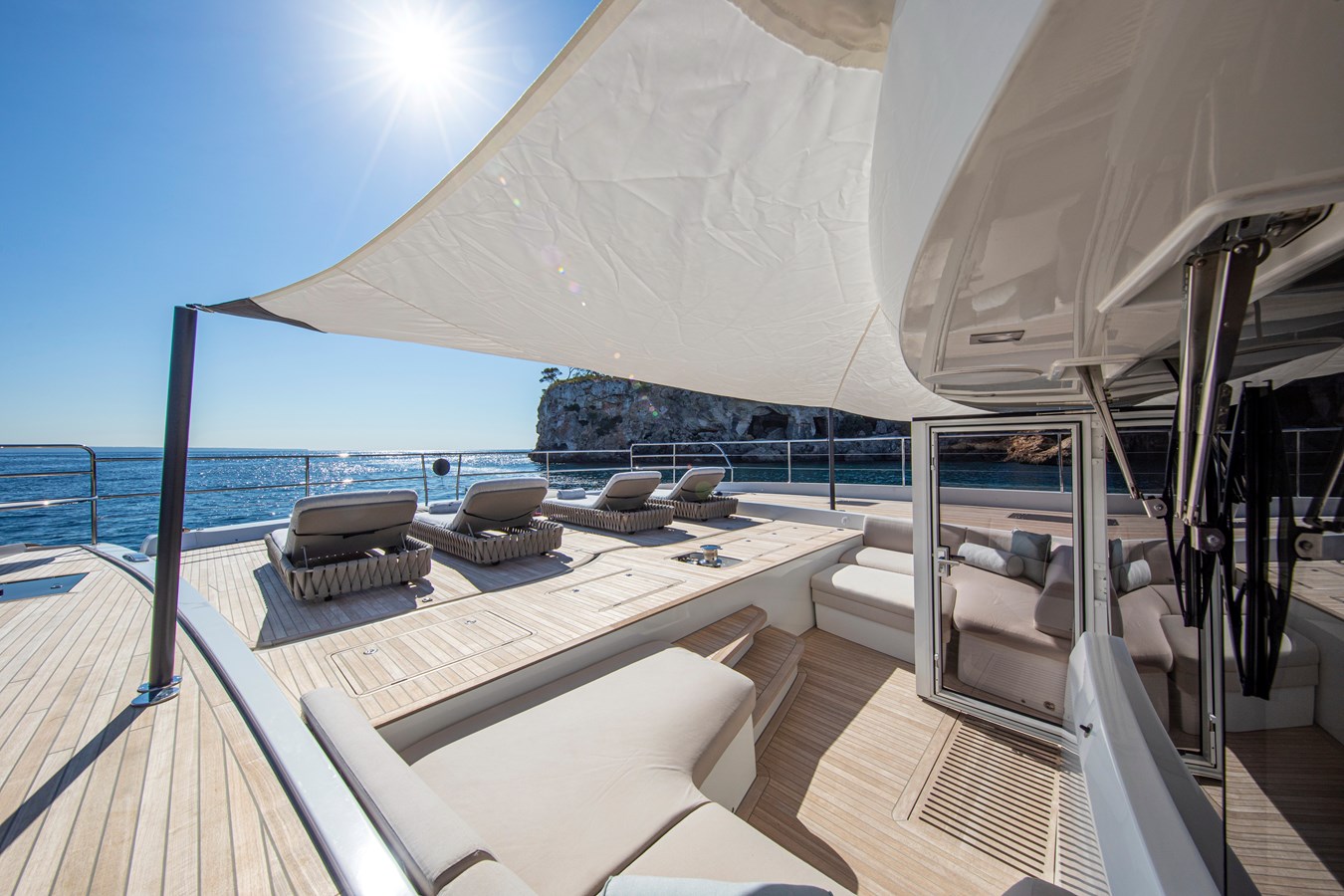 SÁSTA meaning ‘satisfied’ in old Irish answers every need a guest might have. Providing spacious and convivial living areas, enabling free circulation between interior and exterior while also integrating luxurious cabins optimizing comfort and fun at every design aspect. Her champagne-coloured hull during sundawn, makes SÁSTA an unrivalled jewel nicely blending in with the natural environment.