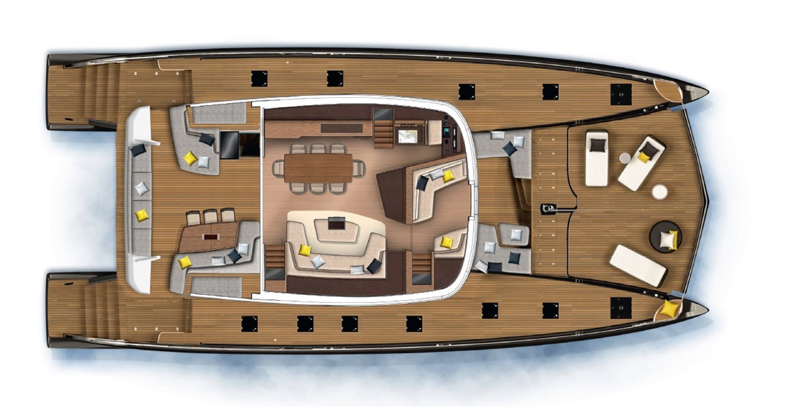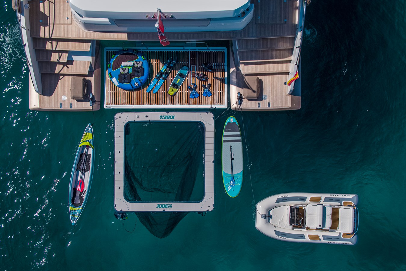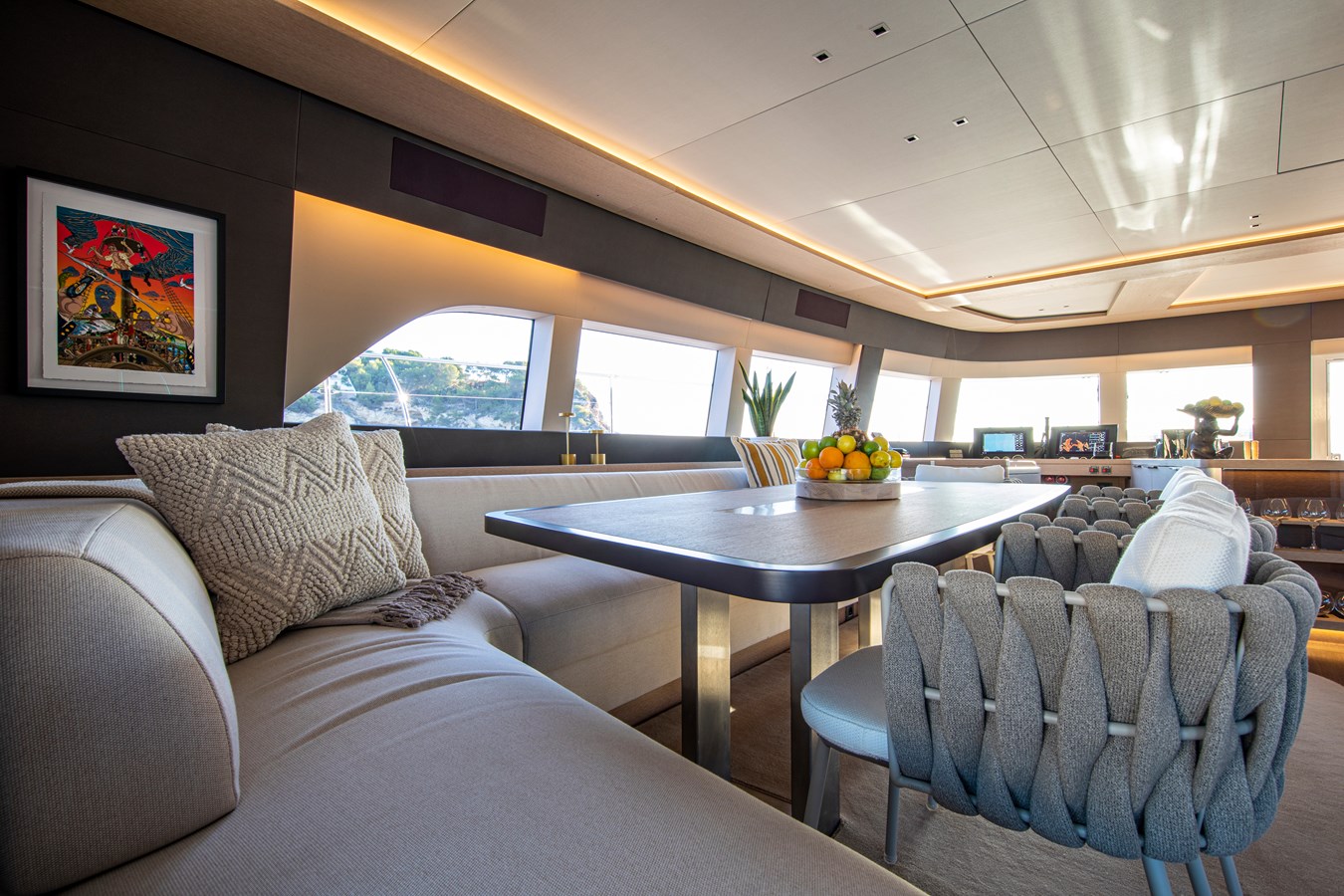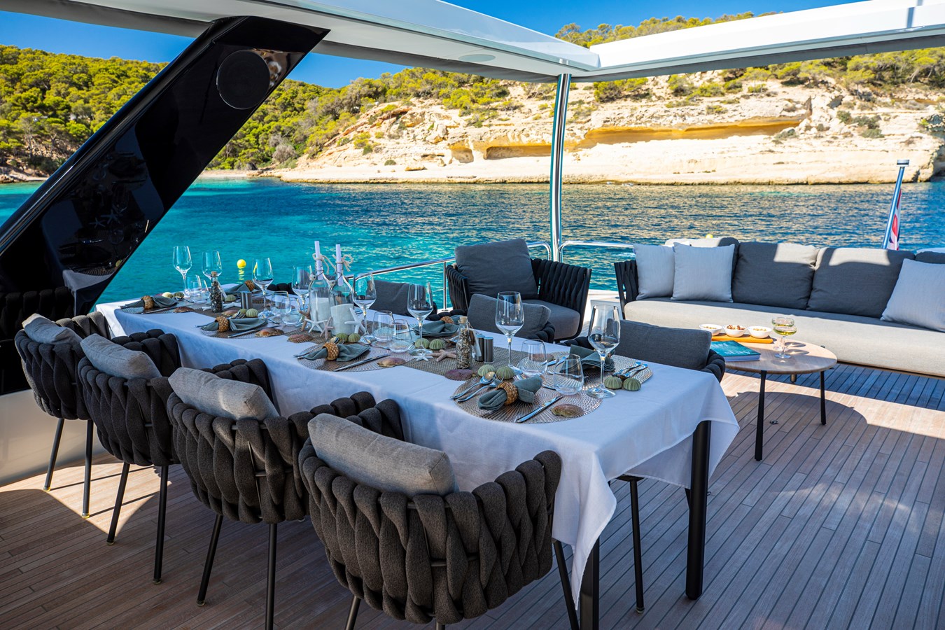 SÁSTA meaning ‘satisfied’ in old Irish answers every need a guest might have. Providing spacious and convivial living areas, enabling free circulation between interior and exterior while also integrating luxurious cabins optimizing comfort and fun at every design aspect. Her champagne-coloured hull during sundawn, makes SÁSTA an unrivalled jewel nicely blending in with the natural environment.