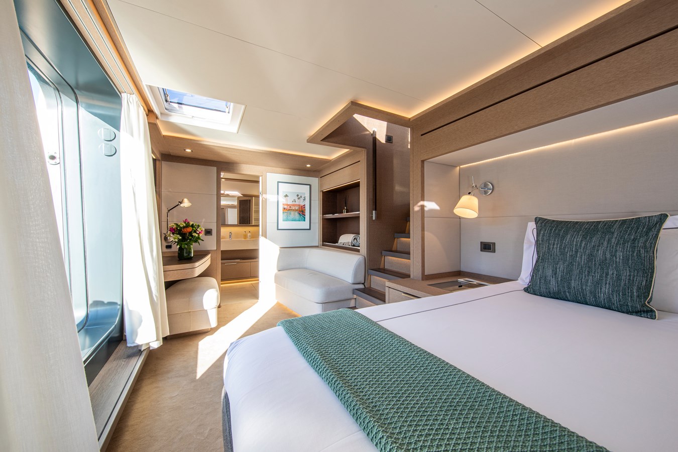 SÁSTA’s motivated and ever-smiling crew, awaits her guests to pamper them completely and make every moment on board a blissful experience. She comfortably welcomes 8 guests in 1 king, 2 queen and 1 twin guest cabins, all with en-suite bathrooms.