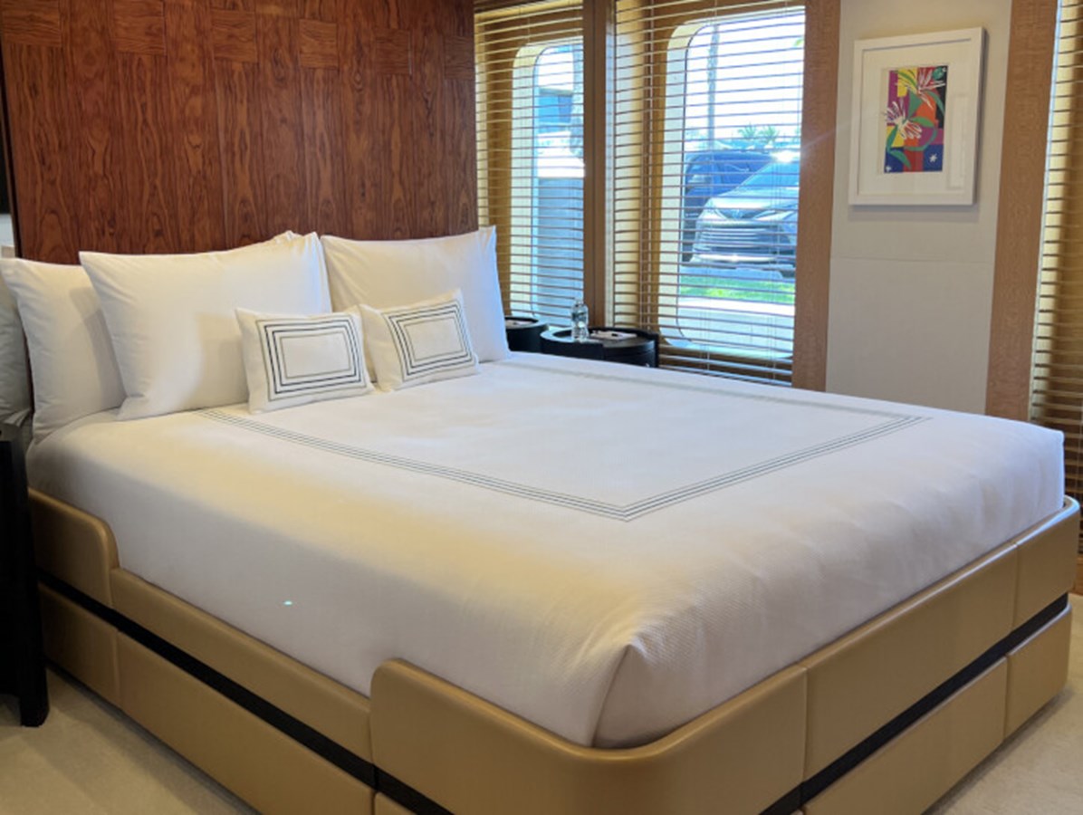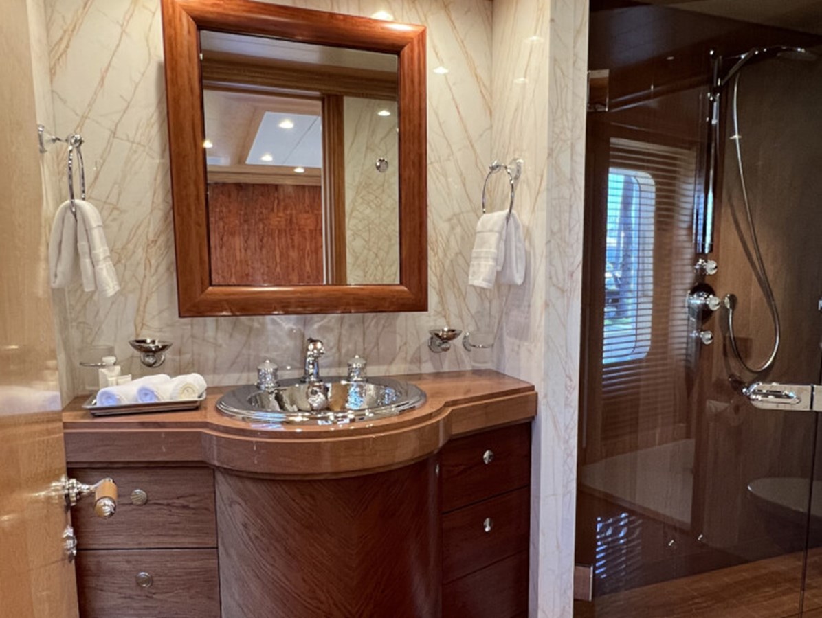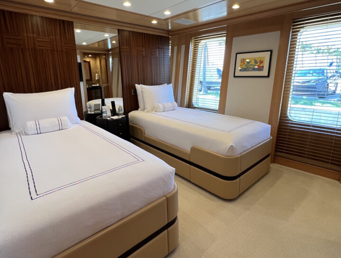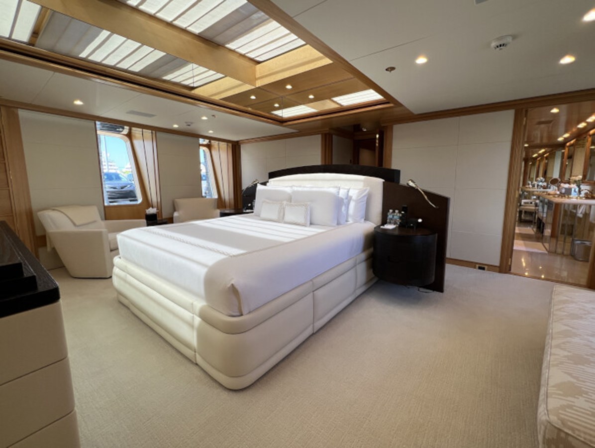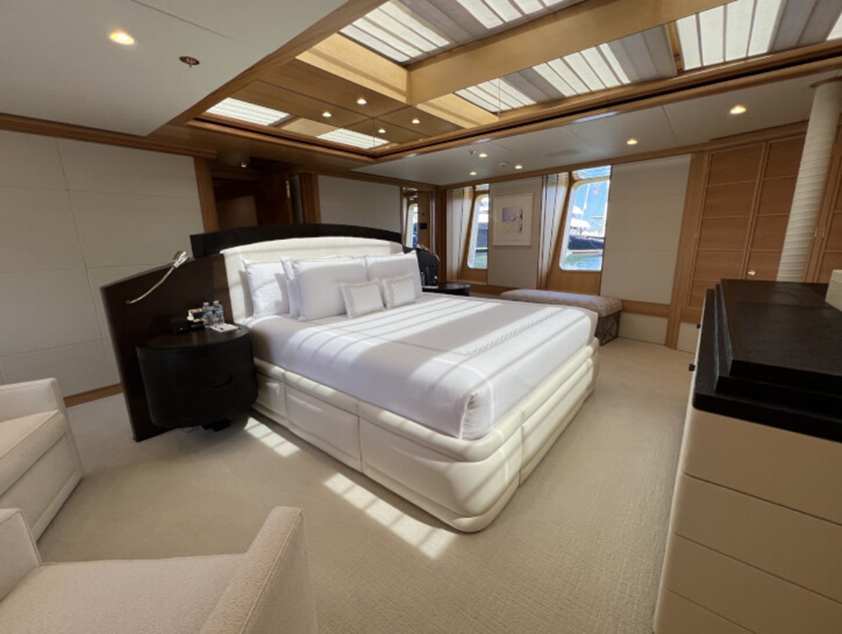 SPORT yacht can accommodate 10 guests across a very charter-friendly five cabins, all on the main deck, including a Master cabin with a King-sized bed, an office and an ornate en suite. There is also a further three double cabins with Queen-sized beds, and one twin.