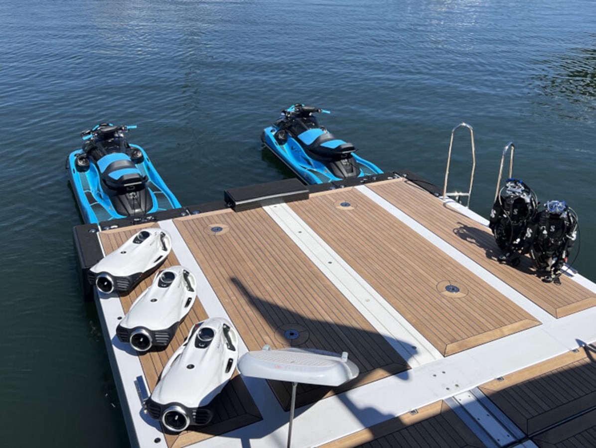 2 x Yamaha Waverunner Jet Ski’s4 x Seabob water scooter1 x eFoil boardPaddle boardsKayaksWater skisWakeboardsInflatablesMasks, snorkels, diving equipment, jackets etc.PowerBlock free weights 2.5 – 90 lbs1 x Peloton Bike1 x Rowing Machine